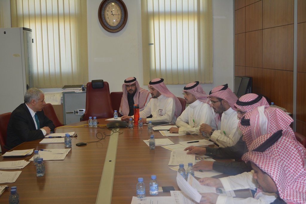 في إطار سعي كلية الصيدلة لتحقيق واستكمال معايير الجودة قد انعقد الإجتماع الأول لمجلس التطوير والجودة بالكلية برئاسة الدكتور أحمد البسام وكيل الكلية للتطوير والجودة وحضور سعادة عميد الكلية الدكتور فهد الصيخان والدكتور أحمد بن إبراهيم فوده وكيل الكلية للشؤون التعليمية والأكاديمية والدكتور عبدالملك بن صالح التميمي رئيس قسم الكيمياء الصيدلية والدكتور خالد بن مفلح الحارثي رئيس قسم علم الأدوية والدكتور عبدالله بن عثمان الثميري رئيس قسم الصيدلة الإكلينيكية والدكتور سعد بن مريع الشهراني رئيس قسم الصيدلانيات والدكتور محمد بن حامد القرني رئيس قسم العقاقير وذلك يوم الأربعاء الموافق 25-3-1439هـ لمناقشة النقاط التالية: