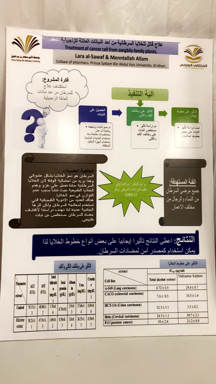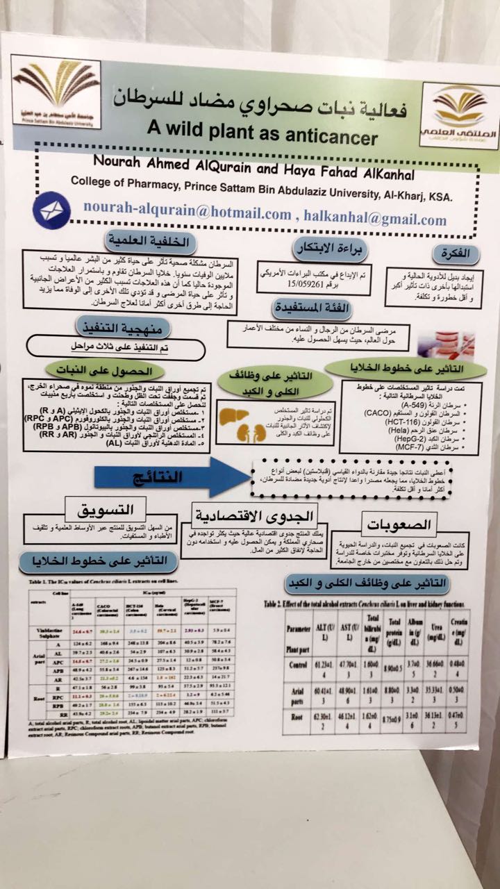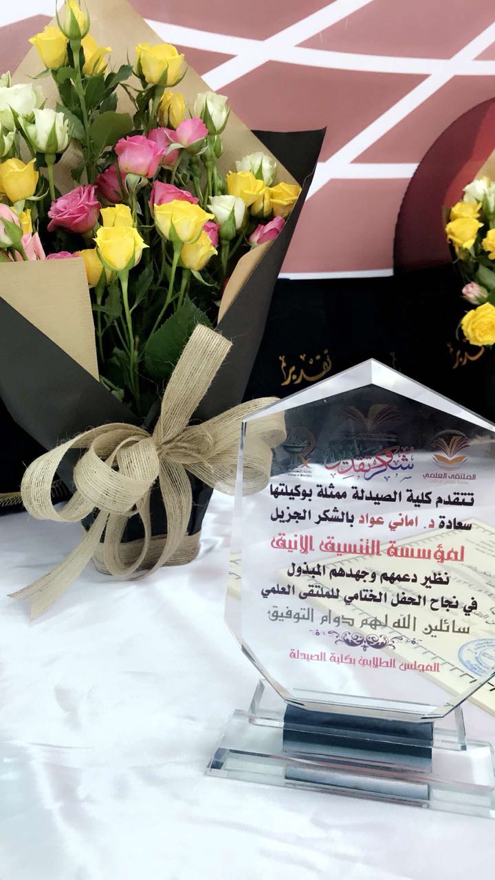 دشن المجلس الطلابي بكلية الصيدلة لشطر الطالبات يوم الأثنين 19/5/1439 هـ ، فعاليات الملتقى العلمي الثاني استعدادا للمشاركة في المؤتمر العلمي الذي تنظمه الجامعة ، وذلك بحضور وكيلة عمادة شؤون الطالبات بالجامعة الدكتورة دلال المطرفي رئيسة اللجنة الاشرافية العليا للملتقى العلمي  ومساعدة عميد الكلية الأستاذة الدكتورة أماني عواد ، ومنسوبات الكلية من أعضاء هيئة تدريس وموظفات وطالبات وبرعاية ومشاركة  مجتمعية  من كلا من مؤسسة التنسيق الأنيق وليزتلي للحلويات والمعجنات. ويعد الملتقى العلمي لطالبات الكلية محضن لإبداعاتهن بغرض تحفيزهن وتنمية روح التنافس الشريف بينهن . وأفُتِتحَ الملتقى التحضيري بآيات من القرآن الكريم ثم كلمة مساعدة عميد الكلية أ.د. اماني عواد  حيث رحبت فيها بضيوف الملتقى من عمادة شؤون الطالبات بالجامعة وشكرت الطالبات على المشاركة في مثل هذه المنافسات التي تنمي روح المعرفة والعلم لديهن " ثم تم استعراض فيلم مرئي عن أعمال المؤتمر العلمي بكلية الصيدلة أقسام الطالبات منذ انطلاقه والمراحل التي مربها حتى إعلان أسماء الفائزات بالملتقى حيث تمركزت مشاركة الطالبات في ثلاث محاور هي محور الأبحاث العلمية براءة الإبتكار،وأخيرا ريادة الأعمال ،ثم قامت الطالبات المشاركات بالشرح الموجز عن مشاركاتهن، وفي نهاية الحفل شكرت وكيلة عمادة شؤون الطالبات بالجامعة الدكتورة دلال المطرفي اللجنة المنظمة للمؤتمربالكلية وحثت الطالبات على المشاركة المستقبلية بطريقة مميزة تليق بهن كطالبات كلية صحية ثم قامت الدكتورة دلال المطرفي بتوزيع الشهادات على الطالبات الفائزات والمشاركات في الملتقى والسادة الرعاة.