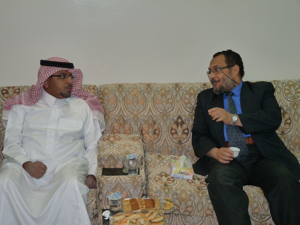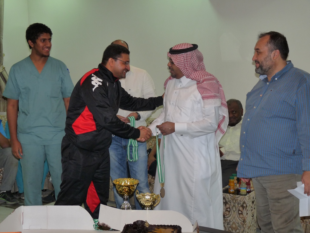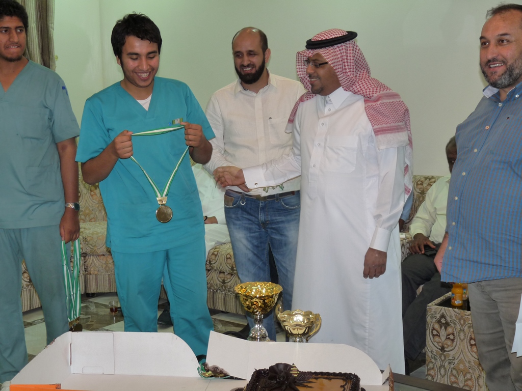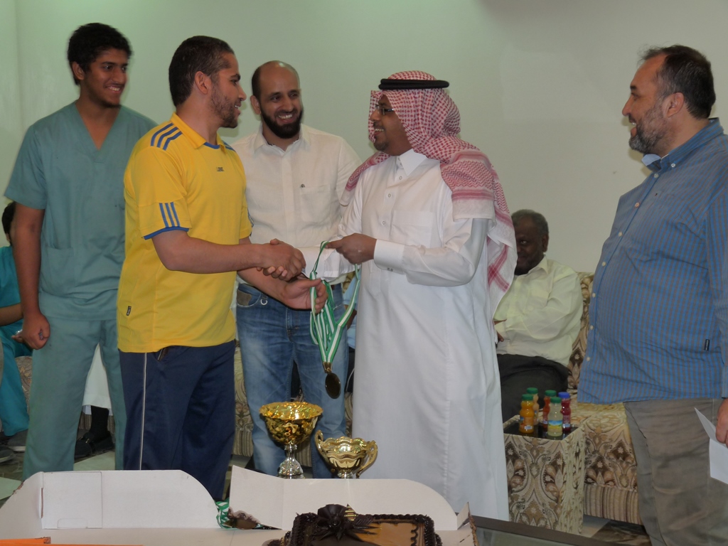 ألتقى عميد كلية الصيدلة الأستاذ الدكتور خالد بن محمد الخرفي يوم الأربعاء 9/6/1435هـ مع أعضاء هيئة التدريس وطلاب وإداري الكلية في استراحة روابي النجدية -العفجة بالخرج، وقد ألقى الدكتور/ مؤيد حسين الخطايبة محاضرة آلية رفع المعدل التراكمي للطالب: بين الواقع والمأمول والتي من خلالها قد بين الدكتور الخطايبة الأسس والمعايير لذلك بالإضافة إلى شروح مفصلة لبعض حالات الطلبة المتعثرين، مشدداً على عدم وقوف الطالب طويلا عند المأمول واتخاذ الخطوة الجريئة لجعل المأمول واقعاً - على هامش اللقاء المفتوح مع الطلبة، وعمل دوري لكرة القدم وقد منح عميد الكلية ميداليات وكأس للفريق الأول والثاني الفائزين بدوري كرة القدم، وبعد ذلك تبادل أعضاء هيئة التدريس الأنشطة ثم العشاء.