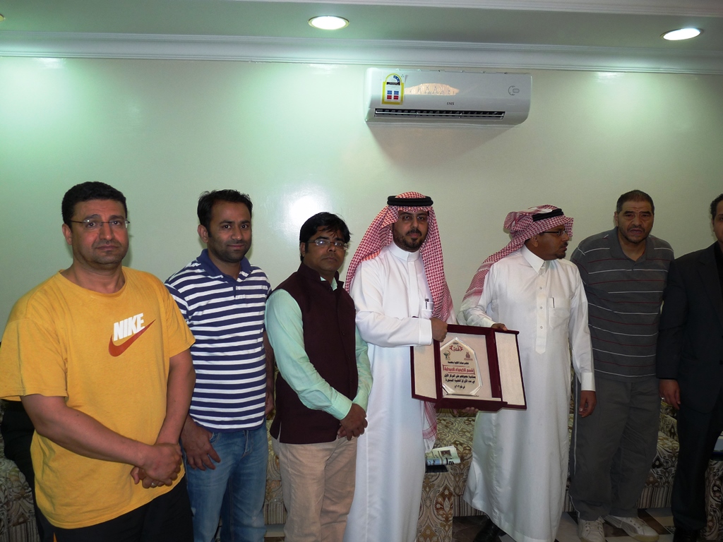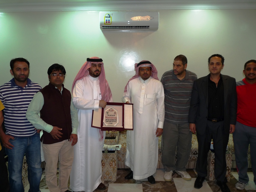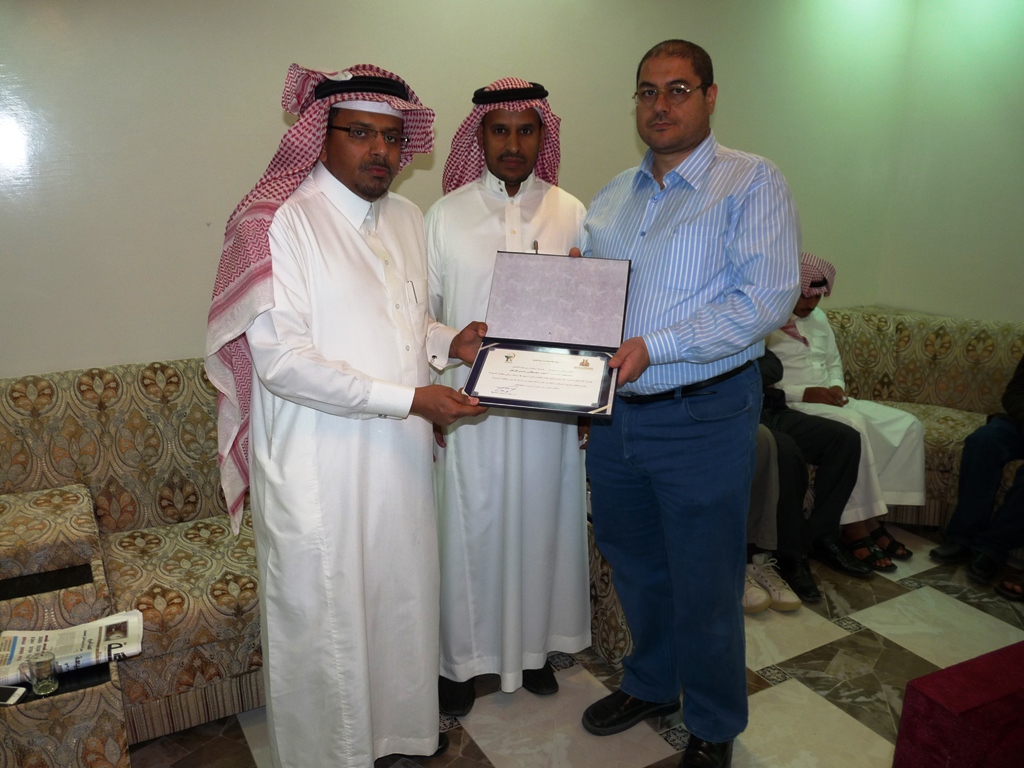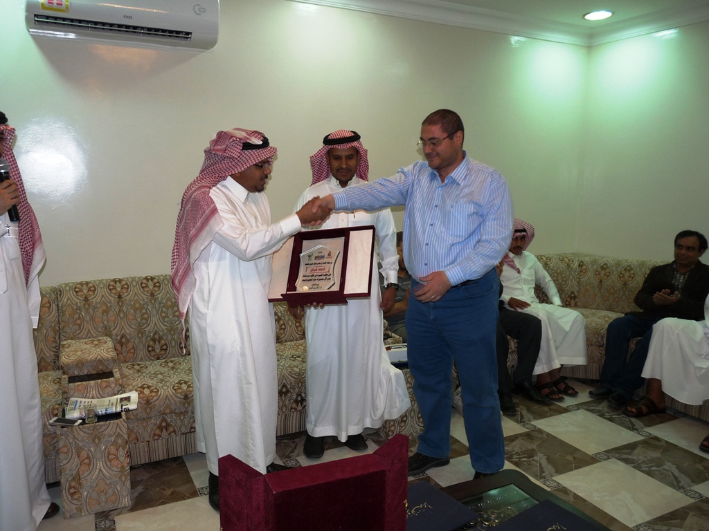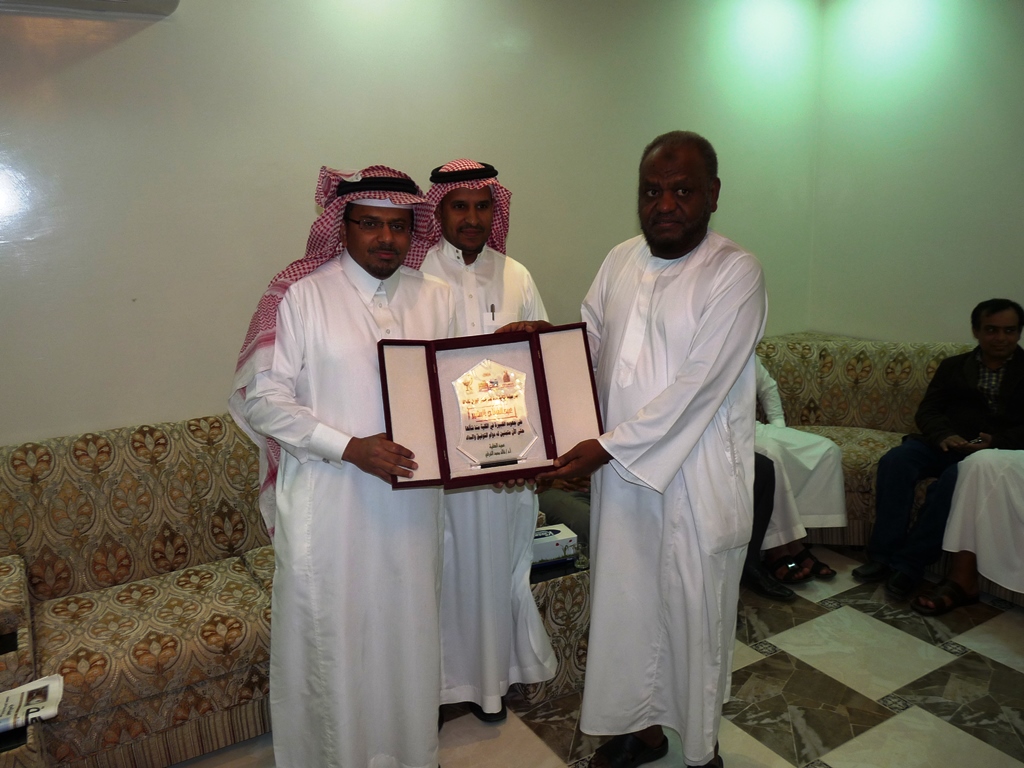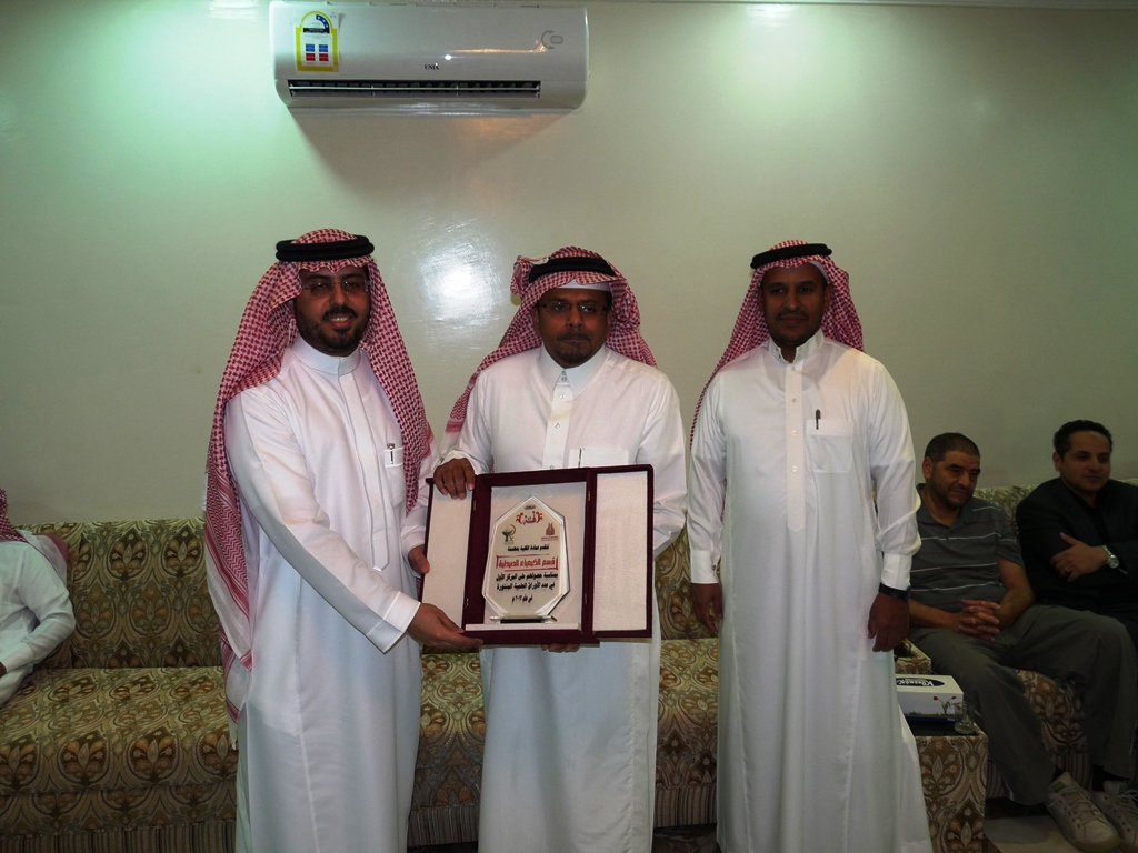 ألتقى عميد كلية الصيدلة الأستاذ الدكتور خالد بن محمد الخرفي يوم الأربعاء 4/5/1435هـ مع أعضاء هيئة التدريس بالكلية وبحضور رئيس قسم الكيمياء الصيدلية الدكتور عبدالملك بن صالح التميمي ومدير إدارة الكلية الأستاذ ناصر بن عبدالله الموسى وبعض موظفي الكلية، وقد ألقى عميد الكلية بكلمة تحية لأعضاء هيئة التدريس وتعاونهم ومجهوداتهم وإسهاماتهم في ازدهار ورقي الكلية، ثم توزيع دروع وشهادات شكر وتقدير لكلا من أ. د. جمال عبدالحكيم سليمان لحصوله على براءة اختراع و المحاضر عبدالفتاح محمد بشير على مجهوداته واسهاماته للكلية و الباحث أحمد مصطفى حسن فرغل لمجهوداته واسهاماته منذ بداية الكلية الموظف ناصر بن عجب القريني بحصوله على الموظف المثالي بالكليةوحصول قسم الكيمياء الصيدلية على درع المركز الأول في عدد الأوراق العلمية المنشورةوقد تسلم الدرع رئيس قسم الكيمياء الصيدلية الدكتور عبدالملك بن صالح التميمي ، وبعد ذلك تبادل أعضاء هيئة التدريس الأنشطة ثم العشاء باستراحة روابي النجدية بالعفجة بالخرج.