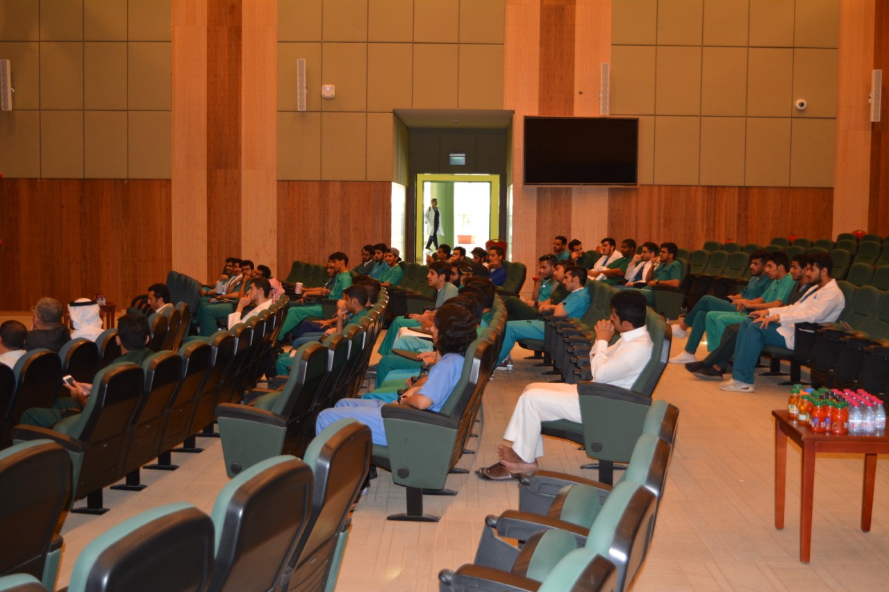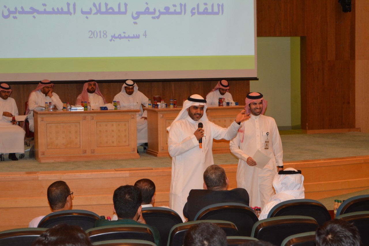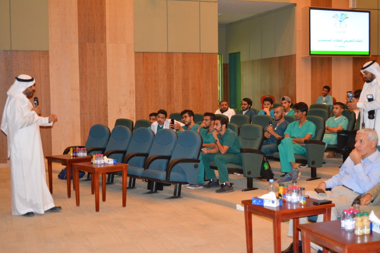 وخلال بداية اللقاء رحب سعادة عميد الكلية بالطلاب المستجدين ثم تحدث عن رؤية ورسالة أهداف الكلية كما حثهم على التحصيل العلمي والاجتهاد والمثابرة في طلب العلم والالتزام والتقيد بحضور المحاضرات بالزي الرسمي المحدد من بداية العام الدراسي متمنياً لهم التوفيق والنجاح وتحقيق أمنياتهم.