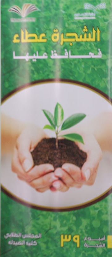 شارك المجلس الطلابي بكلية الصيدلة في فعالية أسبوع الشجرة يوم الأربعاء 15/5/1437هـ الموافق 24/2/2016م الساعة الحادية عشر والنصف صباحاً حيث ألقى المحاضر عثمان علي عثمان المكي نبذة عن نباتات المملكة العربية السعودية وطريقة زراعتها والفوائد والمركبات الطبية المستخلصة منها وفي نهاية الفعالية قدم المحاضر وصايا عن الحفاظ على الشجرة وحمايتها من الاحتطاب الجائر وذلك ماله من تأثيرات وخيمة على الطبيعة والتوازن البيئي وذلك بإشراف منسق الكلية الدكتور منشاوي عزمي