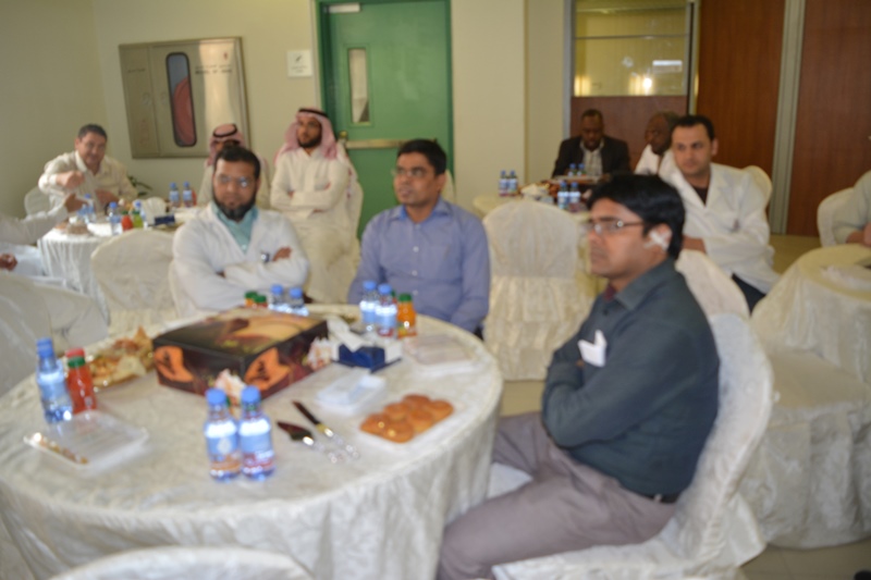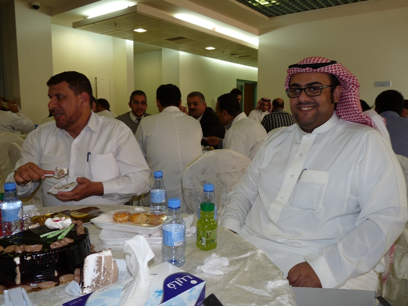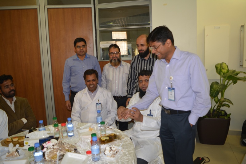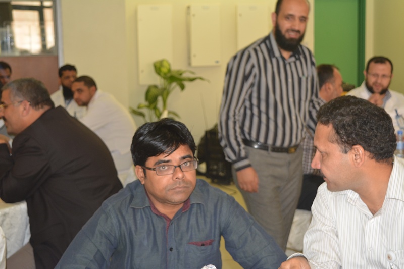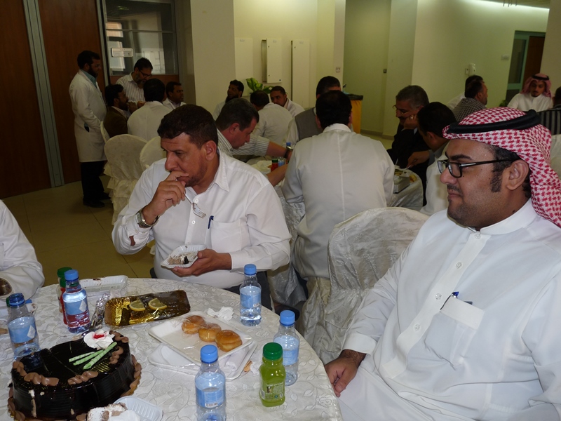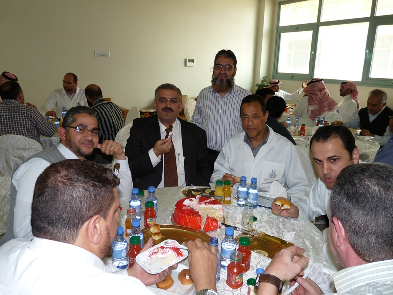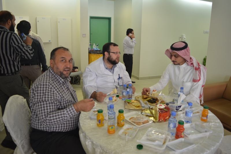 أقام الدكتور تاجدار حسين خان احتفالاً بمناسبة حصوله على درجة أستاذ مشارك في كلية الصيدلة وذلك يوم الأربعاء 22/4/1436هـ الموافق 11/2/2015م الساعة الواحدة والنصف ظهراً، وبحضور كلا من سعادة الأستاذ الدكتور عميد الكلية وسعادة الدكتور وكيل الكلية للتطوير والجودة وسعادة الدكتور وكيل الكلية للشؤون التعليمية ومنسوبي الكلية من أعضاء هيئة التدريس والموظفين واستهل الاحتفال بكلمة من سعادة الدكتور تاجدار حسين خان رحب بالحضور مبدياً سعادته بالحاضرين بمشاركتهم اياه سعادته بالترقية وتمنى التوفيق لزملاءه مزيد من التقدم بعد ذلك ألقى سعادة عميد الكلية كلمة تهنئة ودوام التوفيق والتقدم له كما حث أعضاء هيئة التدريس بالاستمرار والعمل الدائم للحصول على أعلى الدرجات العلمية لتقدم الكلية ورفعة جامعة سلمان بن عبدالعزيز كم ألقي كلا من سعادة الدكتور وكيل الكلية للتطوير والجودة وسعادة الدكتور وكيل الكلية للشؤون التعليمية بالتهنئة والتوفيق والتقدم الدائم للدكتور تاجدار وذلك لرفعة العملية التعليمية، كما ألقى نيابة عن مشرف قسم علم الأدوية د. مؤيد حسين الخطايبة كلمة تهنئة من القسم لسعادته ودوام التقدم والتوفيق ثم هنأ الجميع الدكتور تاجدار بحصوله على درجة أستاذ مشارك وتمنوا له دوام التقدم.