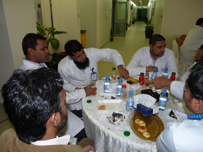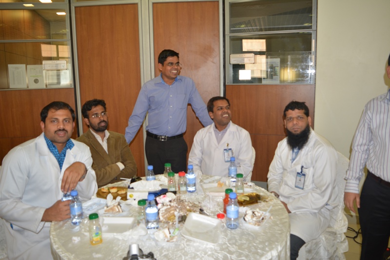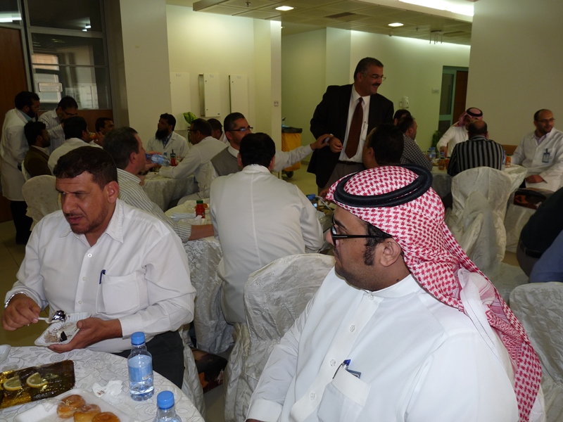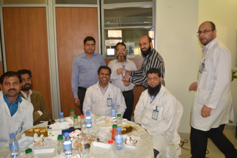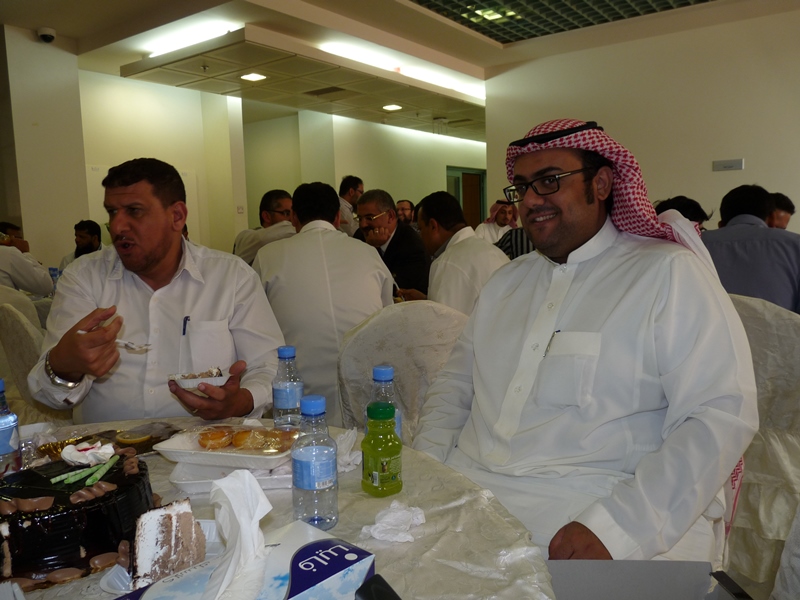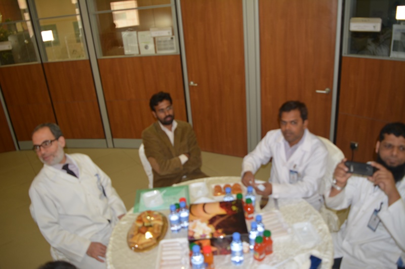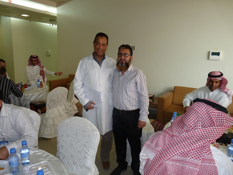 أقام الدكتور تاجدار حسين خان احتفالاً بمناسبة حصوله على درجة أستاذ مشارك في كلية الصيدلة وذلك يوم الأربعاء 22/4/1436هـ الموافق 11/2/2015م الساعة الواحدة والنصف ظهراً، وبحضور كلا من سعادة الأستاذ الدكتور عميد الكلية وسعادة الدكتور وكيل الكلية للتطوير والجودة وسعادة الدكتور وكيل الكلية للشؤون التعليمية ومنسوبي الكلية من أعضاء هيئة التدريس والموظفين واستهل الاحتفال بكلمة من سعادة الدكتور تاجدار حسين خان رحب بالحضور مبدياً سعادته بالحاضرين بمشاركتهم اياه سعادته بالترقية وتمنى التوفيق لزملاءه مزيد من التقدم بعد ذلك ألقى سعادة عميد الكلية كلمة تهنئة ودوام التوفيق والتقدم له كما حث أعضاء هيئة التدريس بالاستمرار والعمل الدائم للحصول على أعلى الدرجات العلمية لتقدم الكلية ورفعة جامعة سلمان بن عبدالعزيز كم ألقي كلا من سعادة الدكتور وكيل الكلية للتطوير والجودة وسعادة الدكتور وكيل الكلية للشؤون التعليمية بالتهنئة والتوفيق والتقدم الدائم للدكتور تاجدار وذلك لرفعة العملية التعليمية، كما ألقى نيابة عن مشرف قسم علم الأدوية د. مؤيد حسين الخطايبة كلمة تهنئة من القسم لسعادته ودوام التقدم والتوفيق ثم هنأ الجميع الدكتور تاجدار بحصوله على درجة أستاذ مشارك وتمنوا له دوام التقدم.