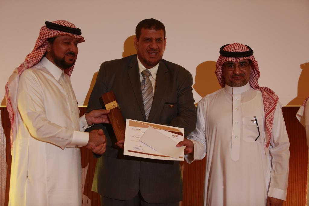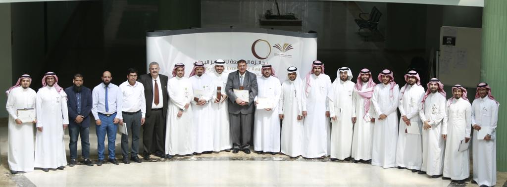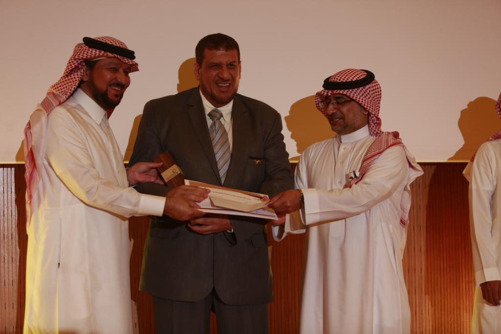 برعاية معالي مدير جامعة الأمير سطام بن عبد العزيز سعادة الأستاذ الدكتور عبد العزيز بن عبد الله الحامد نظمت عمادة البحث العلمي حفل تسليم جائزة الجامعة للتميز البحثي في يوم الاثنين 3/8/1440 هـ الموافق 8/4/2019 م بمسرح كلية العلوم الطبية التطبيقية، حيث احتفلت أمس كلية الصيدلة بفوزها بالمركز الأول في التميز البحثي وفوز قسم العقاقير بجائزة أفضل قسم في العلوم الصحية على مستوي الجامعة وفوز الأستاذ الدكتور ماجد سعد عبد القادر من قسم العقاقير بكلية الصيدلة بجائزة أفضل باحث في مجال العلوم الصحية على مستوي الجامعة.سلم سعادة الأستاذ الدكتور عبد العزيز بن عبد الله الحامد مدير الجامعة جائزة أفضل كلية في التميز البحثي لسعادة الدكتور أحمد بن سليمان العليوي عميد كلية الصيدلة، وسلم ايضاً جائزة أفضل قسم في العلوم الصحية لقسم العقاقير ممثلا في سعادة الدكتور محمد بن حامد القرني رئيس قسم العقاقير، وأيضا تسلم سعادة الأستاذ الدكتور ماجد سعد عبد القادر من قسم العقاقير جائزة أفضل باحث في مجال العلوم الصحية على مستوي الجامعة من سعادة مدير الجامعة. وبذلك تكون كلية الصيدلة قد تميزت من بين قريناتها في الكليات الصحية في مجال التميز البحثي.