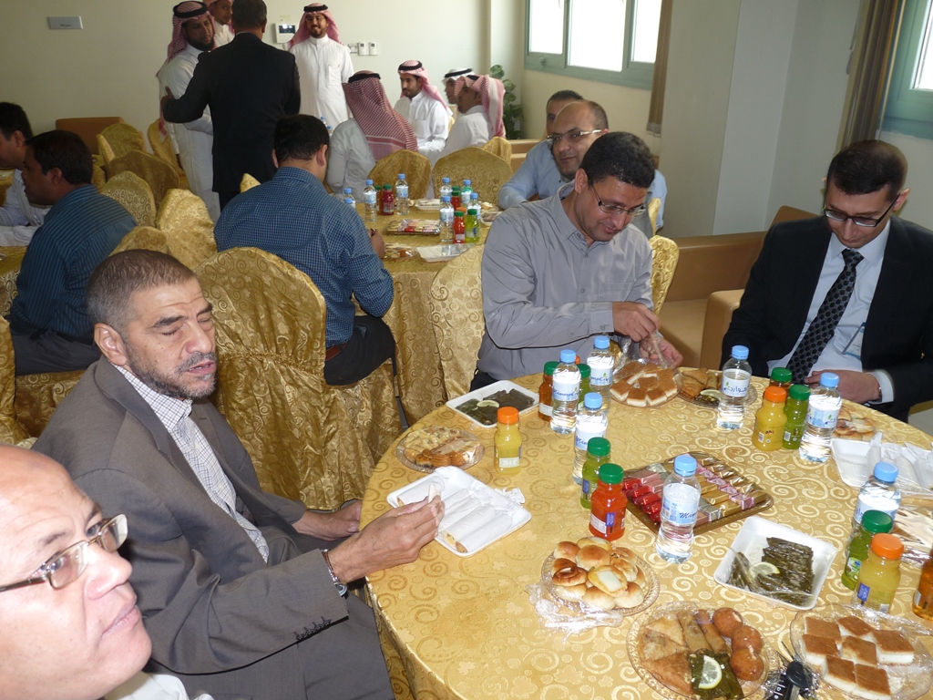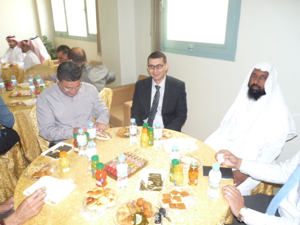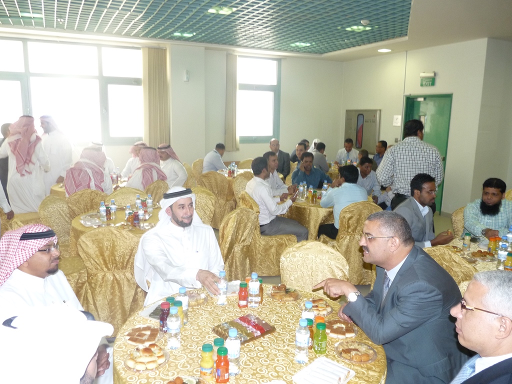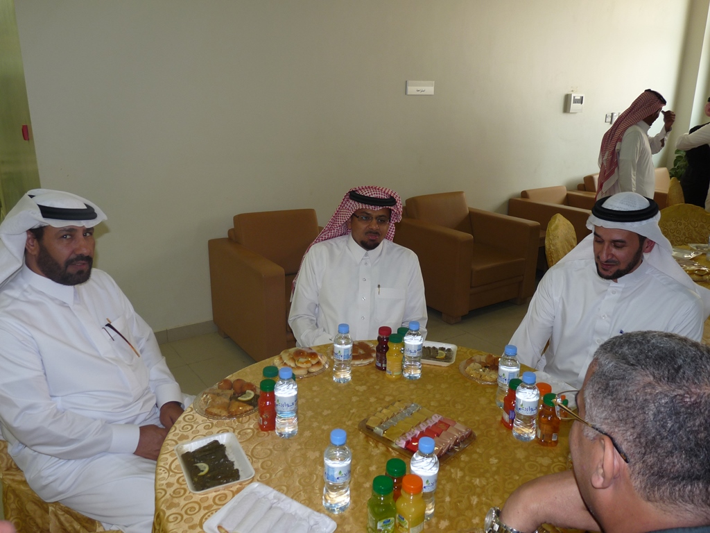 تحت رعاية عميد الكلية الأستاذ الدكتور/ خالد بن محمد الخرفي أقيمت حفل بعودة أعضاء هيئة التدريس بالكلية وبداية العام الجامعي 1436/1437 يوم الأحد الساعة الحادية عشر صباحا وبحضور وكيلا الكلية الدكتور/ عبدالله القحطاني والدكتور فهد بن إبراهيم الصيخان  وكذلك منسوبي الكلية من أعضاء هيئة التدريس وموظفي الكلية، وقد ألقى عميد الكلية كلمة ترحيب بمناسبة بداية العام الجامعي 1436/1437هـ.