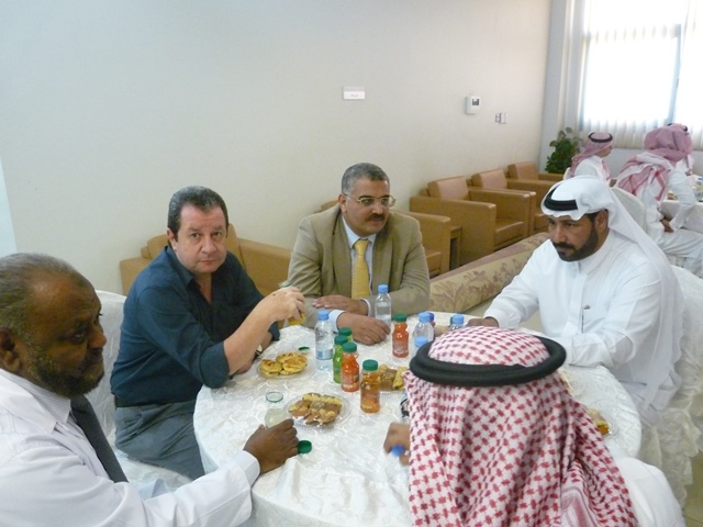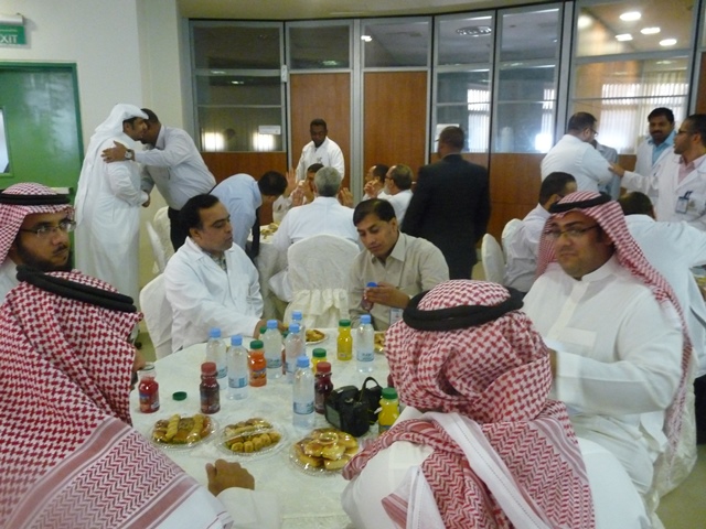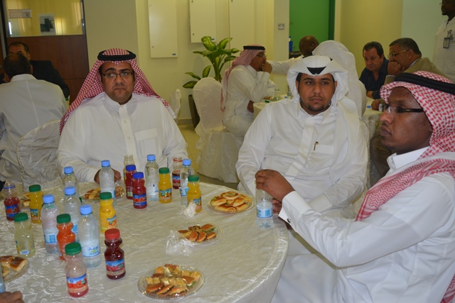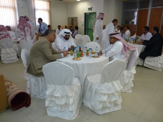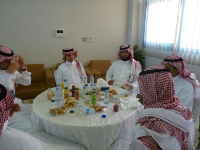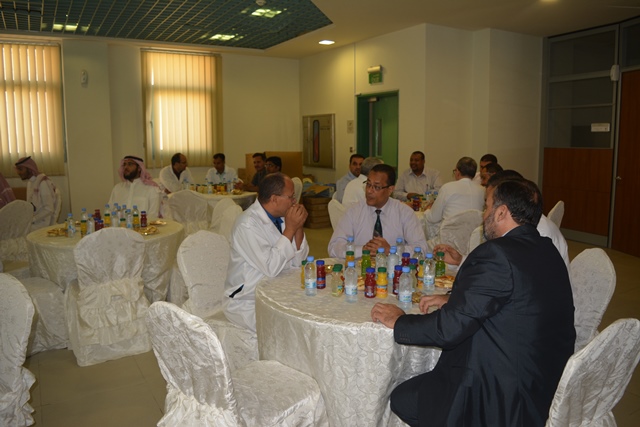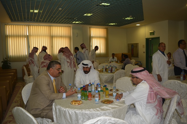 تحت رعاية عميد الكلية الأستاذ الدكتور/ خالد بن محمد الخرفي أقيمت حفل معايدة بالكلية بحضور وكيل الكلية الدكتور/ عبدالله بن علي القحطاني ومدير إدارة الكلية الأستاذ/ناصر بن عبدالله الموسى وكذلك منسوبي الكلية من أعضاء هيئة التدريس وموظفي الكلية، وقد ألقى عميد الكلية كلمة ترحيب وتهنئة بعيد الأضحى المبارك أعاده الله علينا باليمن والخير والبركات وذلك للعام الجامعي 1435/1436هـ.