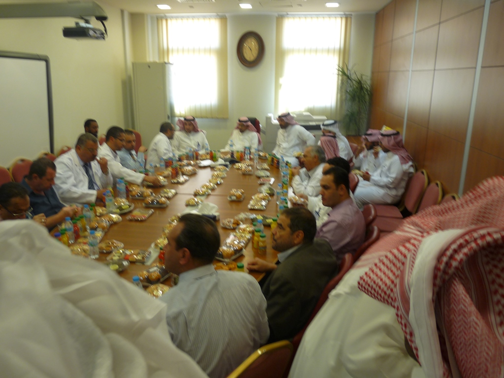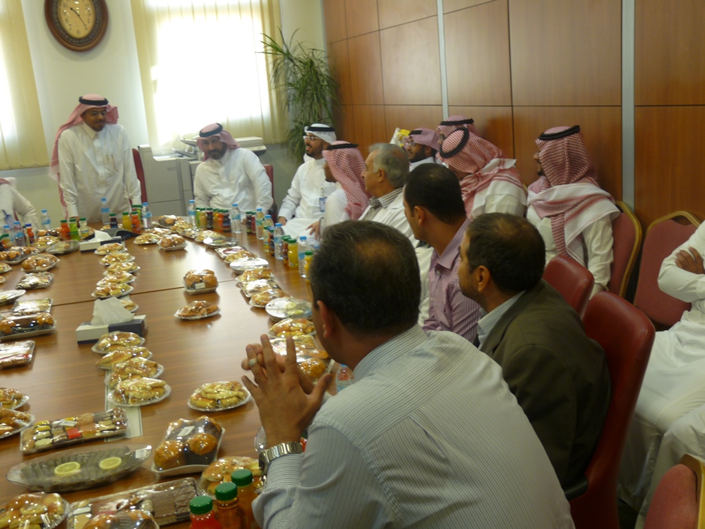 تحت رعاية عميد الكلية الدكتور/ خالد بن محمد الخرفي أقيمت حفل معايدة بالكلية بحضور وكيلا الكلية الدكتور/ عبدالله القحطاني والدكتور/ فهد الصيخان وكذلك منسوبي الكلية من أعضاء هيئة التدريس وموظفي الكلية، وقد ألقى عميد الكلية كلمة ترحيب وتهنئة بعيد الأضحى المبارك أعاده الله علينا باليمن والخير والبركات وذلك للعام الجامعي 1434/1435هـ.