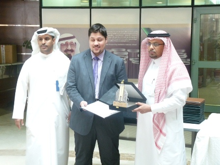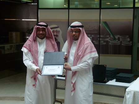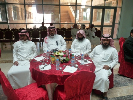 تحت رعاية عميد الكلية الأستاذ الدكتور خالد بن محمد الخرفي وبحضور وكيل الكلية للتطوير والجودة الدكتور عبدالله بن علي القحطاني ورئيس قسم الكيمياء الصيدلية الدكتور عبدالملك بن صالح التميمي وبعض أعضاء هيئة التدريس وموظفي الكلية، أقامت الكلية حفل توديع وتكريم خريجي الدفعة الأولى من طلاب الكلية يوم الأربعاء 13/8/1435هـ الموافق 11/6/2014م الساعة الثانية ظهراً ببهو مبنى الكلية، حيث بدأ الحفل بآيات من الذكر الحكيم تلاها الموظف سلطان بن عبدالله العجلان ثم تخلل برنامج الحفل كلمة سعادة العميد بالترحيب بالطلاب وأولياء الأمور والحضور من أعضاء هيئة التدريس والموظفين والتأكيد على ضرورة التواصل بين الكلية والخريجين وشكر لأعضاء هيئة التدريس بما قدموه من جهد وعطاء للطلبة وجهد موظفي الكلية بما وفروا أي احتياجات تعليمية يطلبوها الطلبة ثم أعقب ذلك كلمة الخريجين ممثلة في الخريج سعد الدوسري حيث ذكر جودة التعليم بالكلية شكر للقائمين على الكلية وشكر لأعضاء هيئة التدريس ونصيحة الزملاء الخريجين بالاستفادة بما درسوا لخدمة بلدهم وأنفسهم ثم تلى ذلك توزيع الشهادات والدروع على الطلاب المتميزين وبعد انتهاء الحفل تناول الجميع وجبة الغذاء المعدة من قبل الكلية لهذا الحدث.