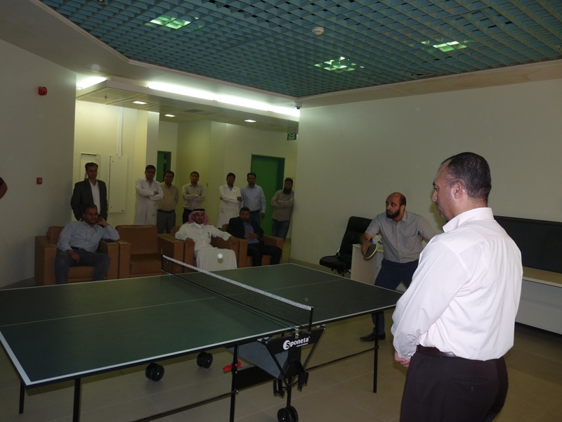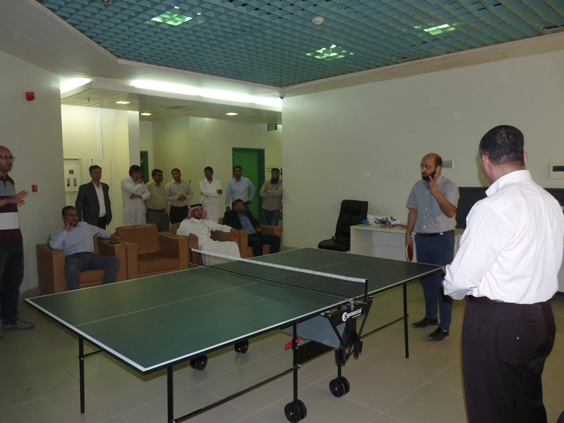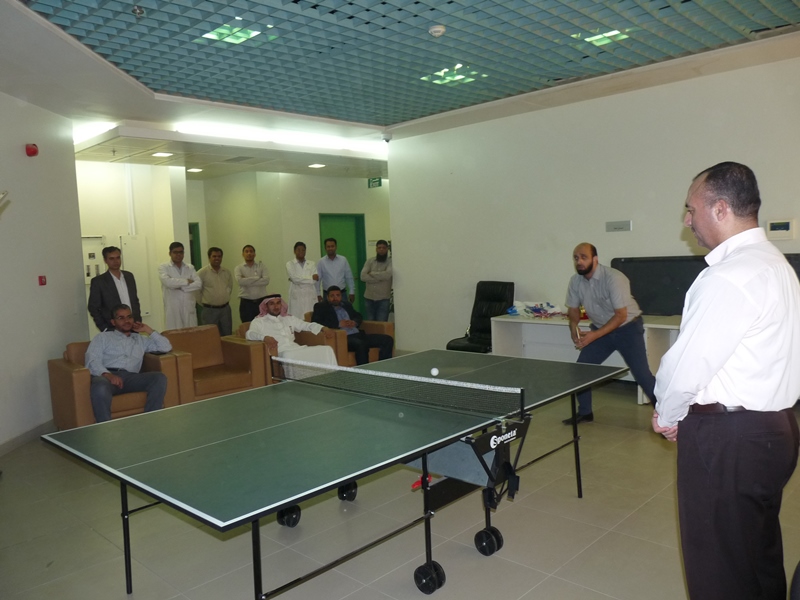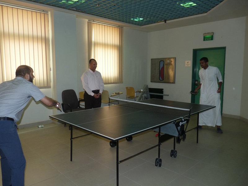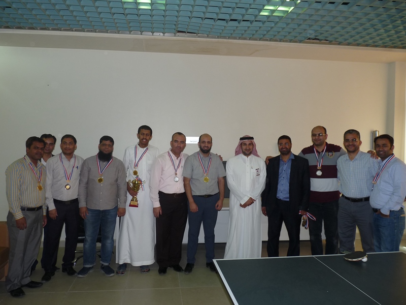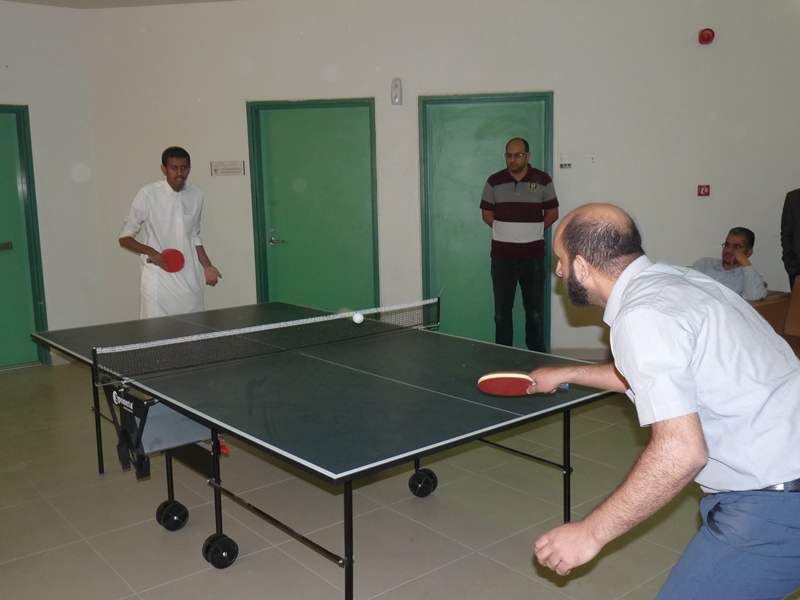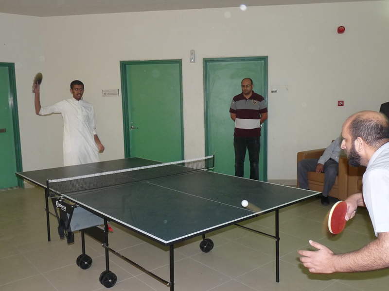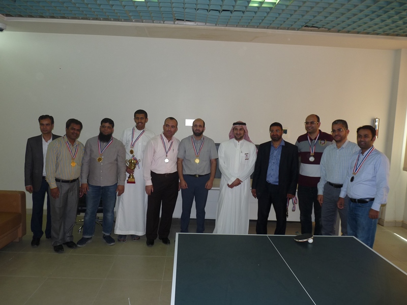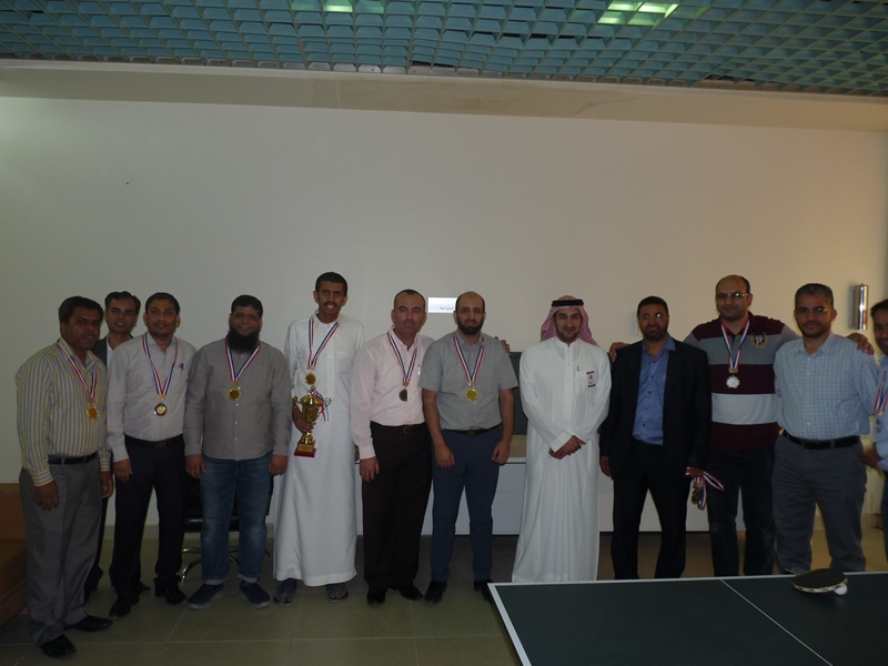تحت رعاية سعادة عميد الكلية الدكتور فهد بن ابراهيم الصيخان  اقيمت المباراة الختامية لنهائى كأس سعادة عميد الكلية لتنس الطاولة  الأول يوم الأربعاء 5/9/1438هـ الموافق 31/5/2017م،  بين كل من الطالب منصور اليحيى والدكتور ماجد غنائى حيث فاز الطالب منصور اليحيى بالبطولة بمجموع  أشواط  2-1 وحصل على كأس البطولة وفى نهاية اللقاء تفضل سعادة العميد الدكتور فهد بن ابراهيم الصيخان وكرم الفائزين بالمراكز الأولى فى البطولة وذلك بحضور مشرف الأنشطة الطلابية الدكتور منشاوى عزمى محمد وعدد من أعضاء هيئة التدريس وفاز بالكأس والميدالية الذهبية للمركز الأول الطالب منصور اليحى وحصل على المركز الثانى والميدالية الفضية الطالب مسفر العجمى و الميدالية البرونزية والمركز الثالث  للطالب عمر المهنا وفى بطولة أعضاء هيئة التدريس فاز الدكتور ماجد غنائى بالمركز الأول وحصل على الميدالية الذهبية وحصل الدكتور خليل يوسف أبو جحيشه على المركز الثاني والميدالية الفضية وحصل الدكتور محمد نظم على المركز الثالث والميدالية البرونزية وفى بطولة الزوجى حصل الثنائى الدكتور محمد نظم والمحاضر انظار الحق على المركز الأول والميدالية الذهبية وحصل الثنائي المحاضر نهاد جاسر والمحاضر عبدالصمد صلاح الدين على المركز الثانى والميدالية الفضية وفى النهاية هنأ سعادة العميد الدكتور فهد بن ابراهيم الصيخان  الحضور بمناسبة حلول  الشهر الكريم وتمنى لهم صوما مقبولا وعملا يقربهم الى الله سبحانه وتعالى.