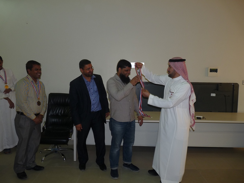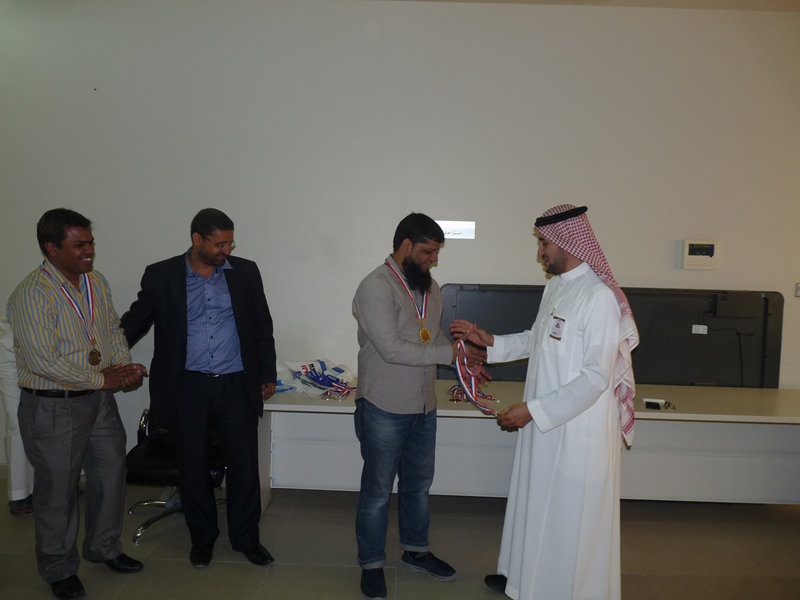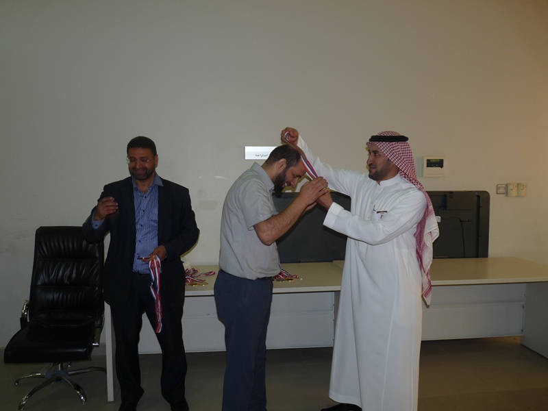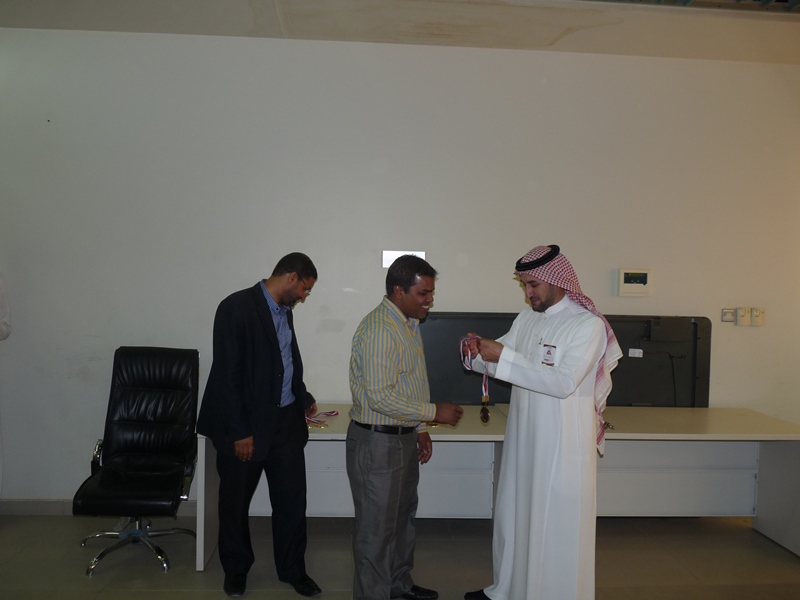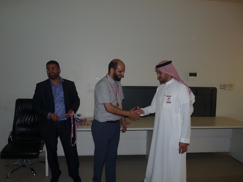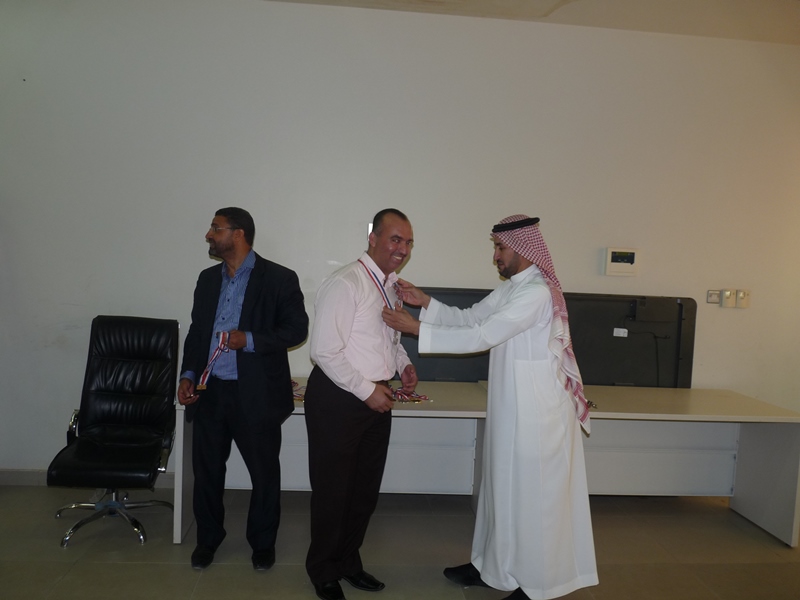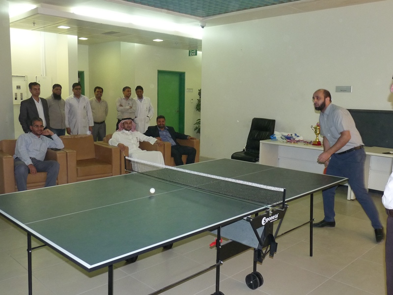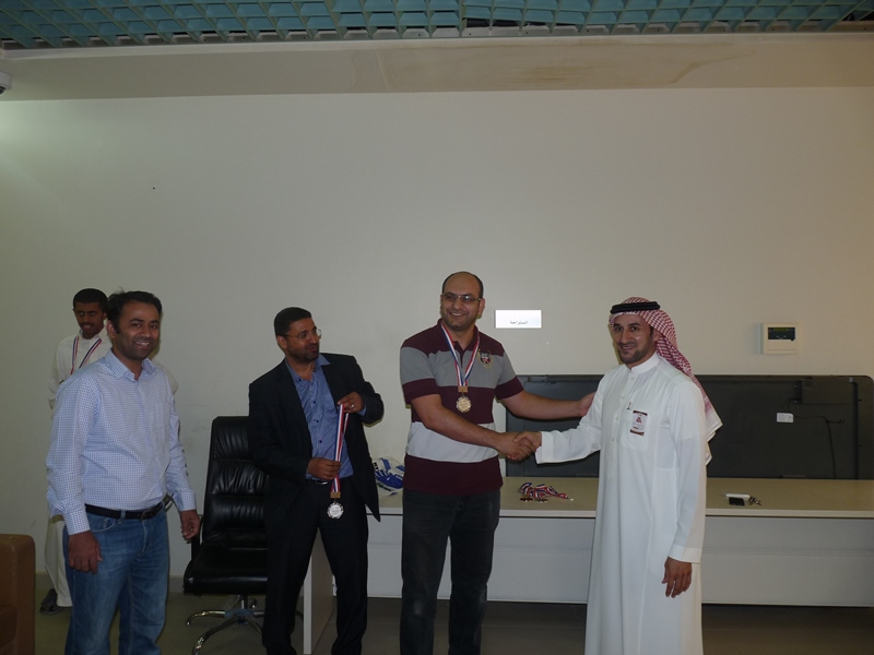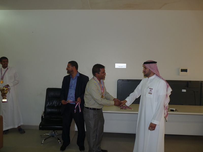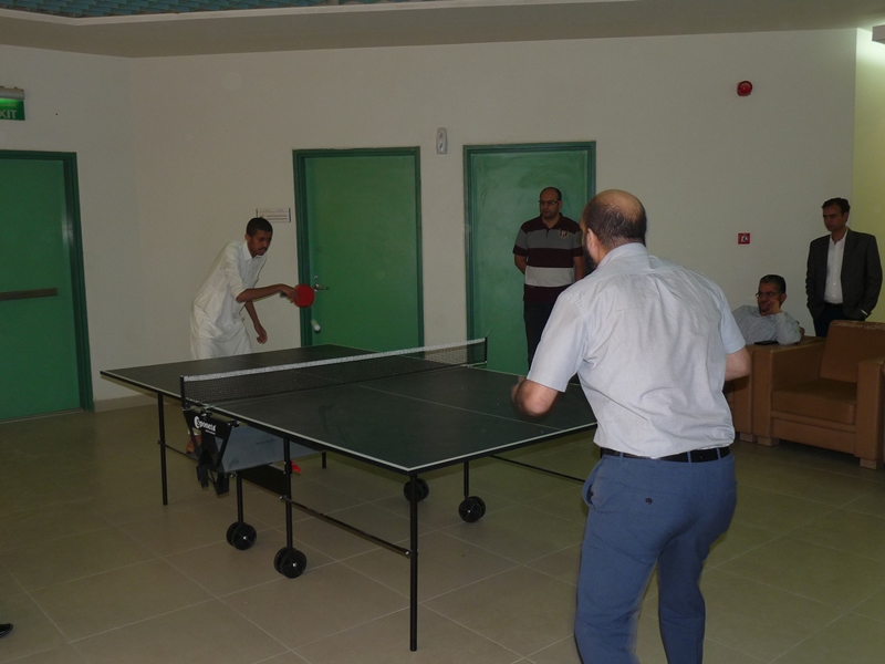 تحت رعاية سعادة عميد الكلية الدكتور فهد بن ابراهيم الصيخان  اقيمت المباراة الختامية لنهائى كأس سعادة عميد الكلية لتنس الطاولة  الأول يوم الأربعاء 5/9/1438هـ الموافق 31/5/2017م،  بين كل من الطالب منصور اليحيى والدكتور ماجد غنائى حيث فاز الطالب منصور اليحيى بالبطولة بمجموع  أشواط  2-1 وحصل على كأس البطولة وفى نهاية اللقاء تفضل سعادة العميد الدكتور فهد بن ابراهيم الصيخان وكرم الفائزين بالمراكز الأولى فى البطولة وذلك بحضور مشرف الأنشطة الطلابية الدكتور منشاوى عزمى محمد وعدد من أعضاء هيئة التدريس وفاز بالكأس والميدالية الذهبية للمركز الأول الطالب منصور اليحى وحصل على المركز الثانى والميدالية الفضية الطالب مسفر العجمى و الميدالية البرونزية والمركز الثالث  للطالب عمر المهنا وفى بطولة أعضاء هيئة التدريس فاز الدكتور ماجد غنائى بالمركز الأول وحصل على الميدالية الذهبية وحصل الدكتور خليل يوسف أبو جحيشه على المركز الثاني والميدالية الفضية وحصل الدكتور محمد نظم على المركز الثالث والميدالية البرونزية وفى بطولة الزوجى حصل الثنائى الدكتور محمد نظم والمحاضر انظار الحق على المركز الأول والميدالية الذهبية وحصل الثنائي المحاضر نهاد جاسر والمحاضر عبدالصمد صلاح الدين على المركز الثانى والميدالية الفضية وفى النهاية هنأ سعادة العميد الدكتور فهد بن ابراهيم الصيخان  الحضور بمناسبة حلول  الشهر الكريم وتمنى لهم صوما مقبولا وعملا يقربهم الى الله سبحانه وتعالى.