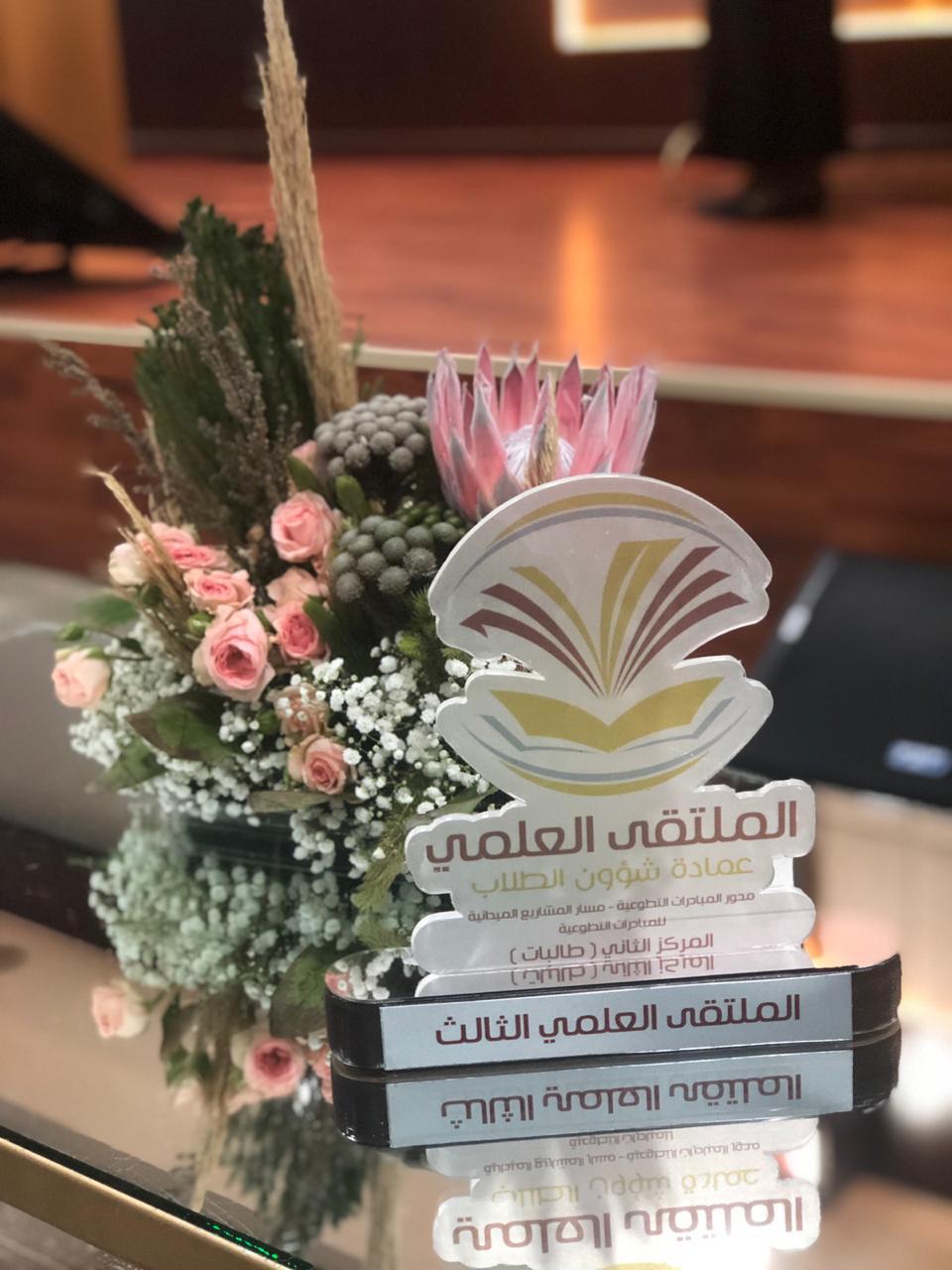 حققت كلية الصيدلة - قسم الطالبات مراكز متقدمة في الحفل الختامي للملتقى العلمي الثالث الذي نظمته عمادة شؤون الطلاب وذلك يوم الخميس الموافق 28/7/1440هـ في مسرح مبنى كلية العلوم والدارسات الإنسانية والذي كان بحضور وكيلة الجامعة لشؤون الطالبات،الدكتورة/ بشرى بنت أحمد الحماد وعميدات الكليات ووكيلتاها، وعدد من أعضاء هيئة التدريس، وطالبات الجامعة، حيث حققت الطالبة أسيل بنت سعد العتيبي المركز الأول في مسار الابتكارات والاختراعات بتطبيق الصيدلية التثقيفية وحققت الطالبات: (العنود المطيران، شروق العويس، شيخه ال زيد) المركز الثاني في مسار المبادرات التطوعية الميدانيةTechno Drug Director وذلك على مستوى جامعة الأمير سطام بفروعها وتتقدم كلية الصيدلة بأسماء آيات التهاني والتبريكات  للطالبات وللدكتورة / حنان بنت عبد الله البلوي بدعمها المتواصل للطالبات وتشجيعهن للمشاركة في مثل هذه الملتقيات التي تصقل وتعزز من مهارة الطالبة وتسخير كافات الإمكانات لنجاحها وكذلك للدكتورة / رنا الصفار منسقة الملتقى العلمي الثالث وفريقها من أعضاء اللجنة الداخلية بكلية الصيدلة المساهمين في صناعة هذا الفوز والنجاح بتهيئة الطالبات عبر دورات تدريبية طيلة فترة الإعداد للملتقى شملت جميع مسارات الملتقى والتي نفذها نخبة من الخبراء ذوي الاختصاص والكفاءة.