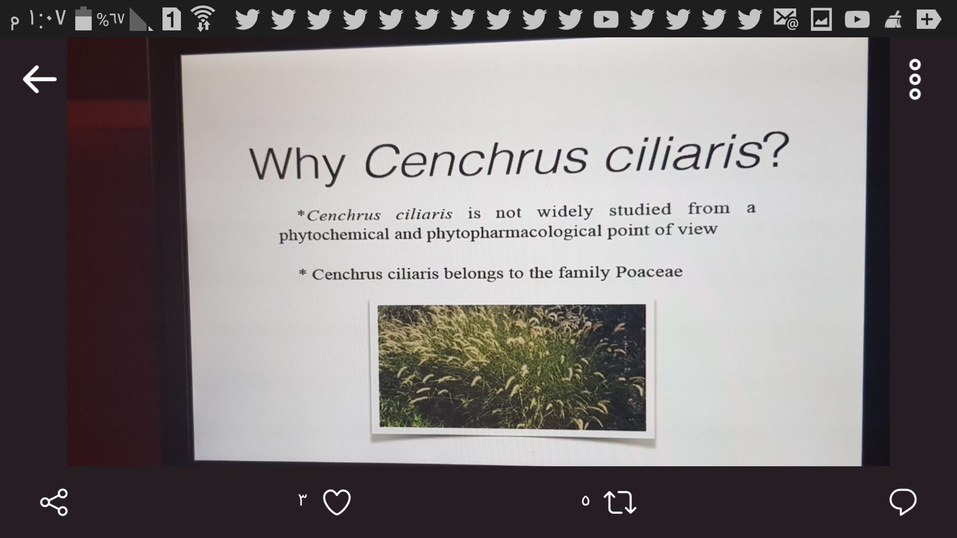 كما قامت كل من الطالبات ( أمل صفحي– شيخة المقرن ) بتقديم ورقة عمل بعنوان " التأثير المضاد لقرحة المعدة والقولون التقرحي لنبات الجعضيض" بالإضافة الى مشاركة كلا من الطالبات لارا الصواف – منة الله علام – بشاير الدوسري – في الجمعة – بسمة حريمل - هياء الكنهل– نورة القرين بملصقات علمية حيث كان الملصق الأول بعنوان "تأثير نبات السبط المهدب المضاد لسرطان" والملصق العلمي الثاني بعنوان " تأثير نبات البابونج كخافض لضغط " والملصق العلمي الثالث بعنوان علاج قاتل للخلايا السرطانية من احد نباتات العائلة الزنجبيلية والرابع كان بعنوان "تأثير نبات الكالوتروبيس على التهاب القولون التقرحي "،الجدير ذكره أن كلية الصيدلة شطر الطالبات تحرص دائما على المشاركة المجتمعية لإيمانها المطلق في أهمية تبادل الخبرات والنقاش العلمي الذي يتولد من هذه المشاركات والتي يساهم بشكل فعال في تطوير مهارات كل العاملين في المجال الأكاديمي