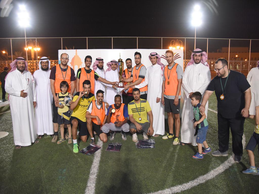 وبعد انتهاء المباراة توج عميد شؤون الطلاب الدكتور ثلاب بن عبدالله الشكرة كلية الصيدلة بطلا للدورة بتسليمها الكأس والميداليات الذهبية .