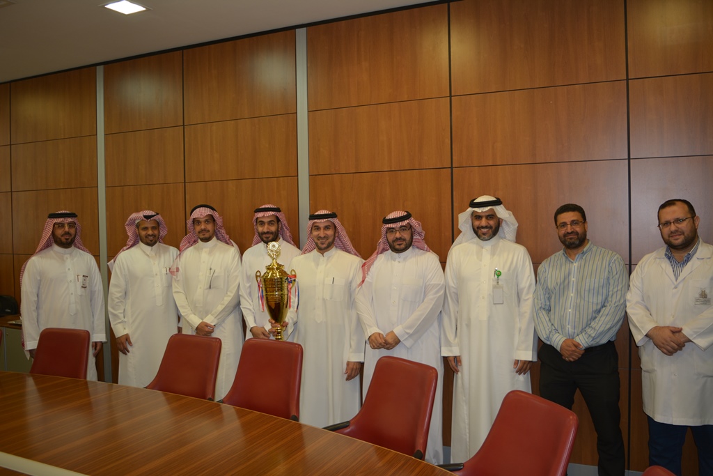 وقد استقبل سعادة الدكتور فهد بن ابراهيم الصيخان عميد الكلية وكل من الدكتور احمد بن ابراهيم فودة وكيل الكلية للشؤون الأكاديمية والتعليمية والدكتور احمد البسام وكيل الكلية للتطوير والجودة الفريق الفائز بالبطولة .