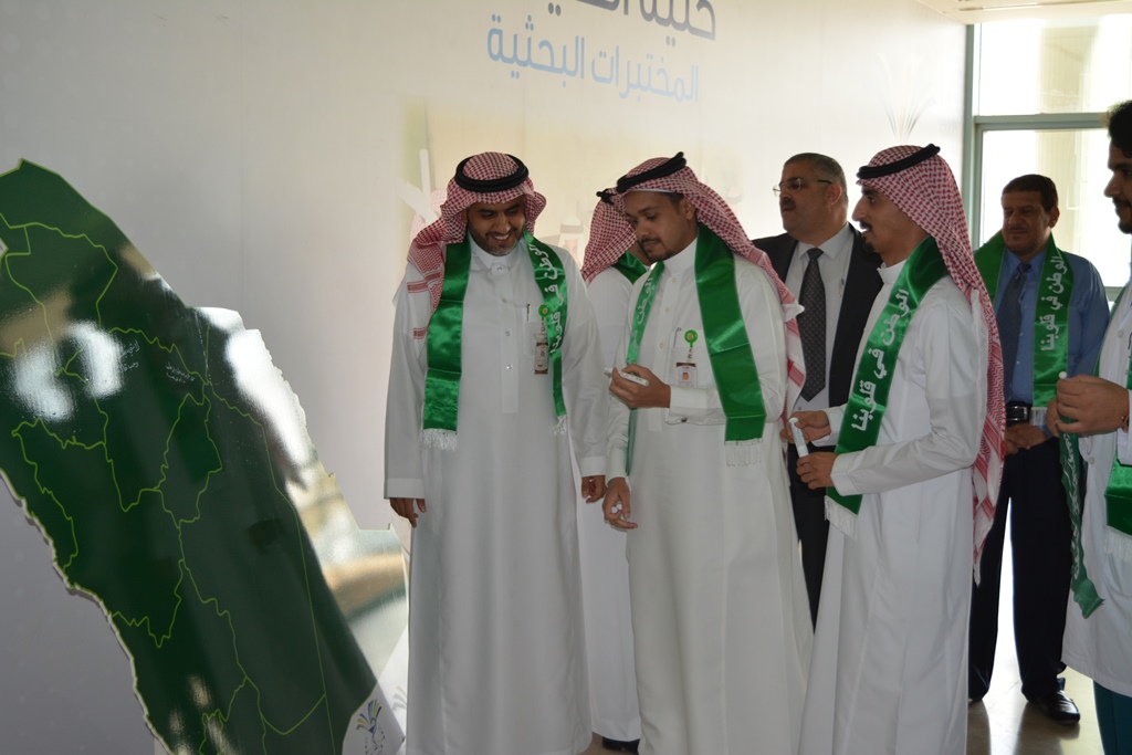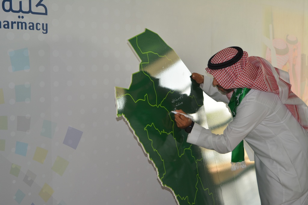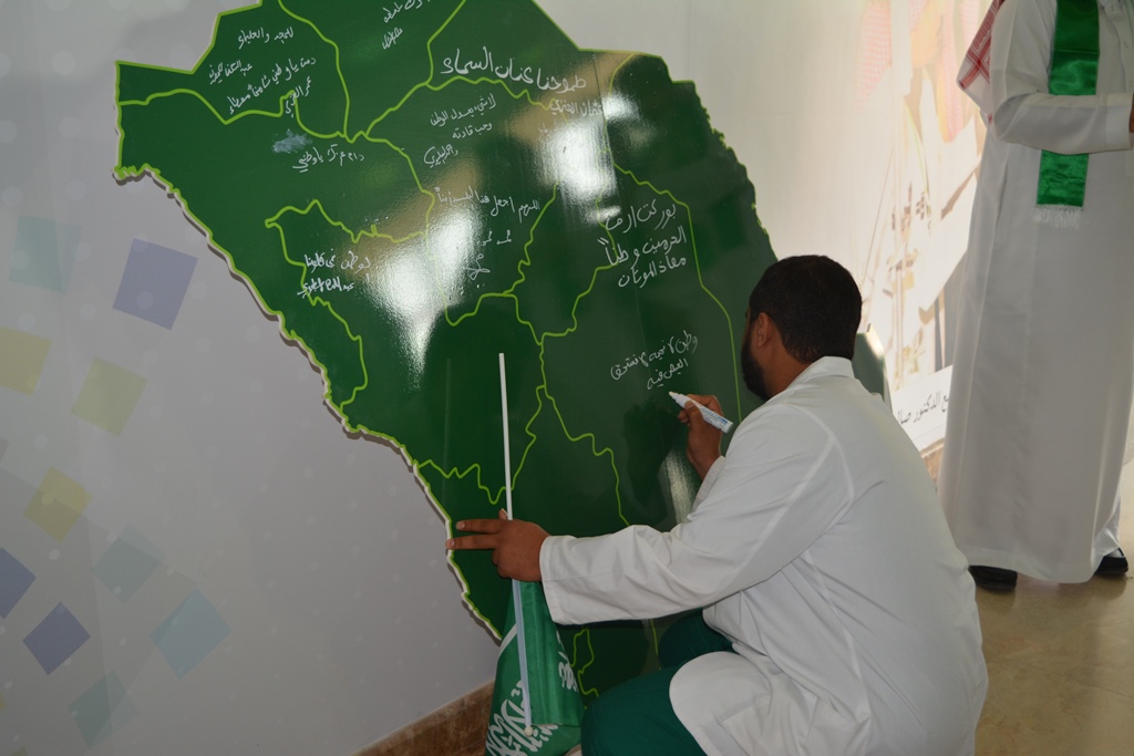 بعد ذلك وفي مظهر اعتزاز وفخر وانتماء وحب للوطن والقيادة الحكيمة جسد الحاضرين حب الوطن والإنتماء له عبر لوحه حملت خريطة المملكة العربية السعودية فاضت المشاعر الوطنية فيها من خلال كتاباتهم التعبيرية للوطن , بعد ذلك التقطت الصور التذكارية بهذا المناسبة.