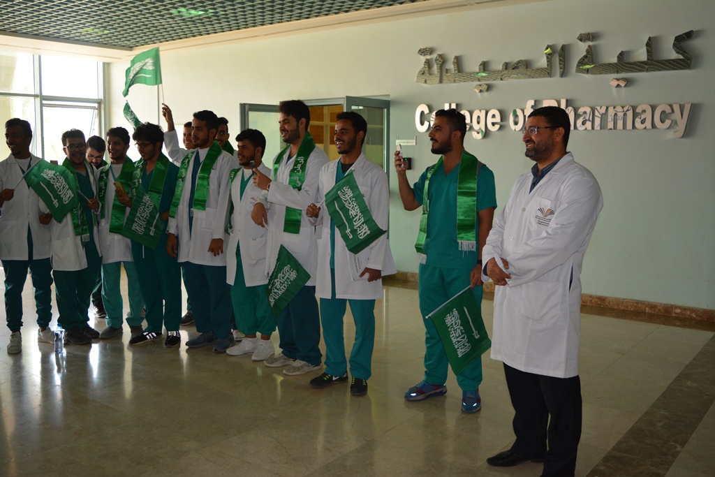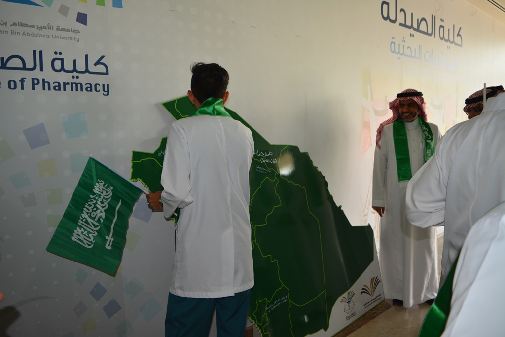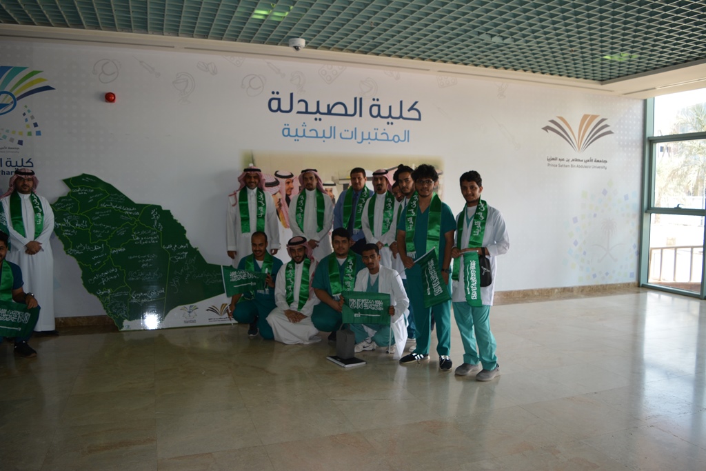 كتبه – عبدالعزيز القرناس / في يوم وطني امتزجت فيه مشاعر الحب والولاء لوطن الخير والعطاء , أقامت كلية الصيدلة بجامعة الأمير سطام بن عبدالعزيز بالخرج ممثلة بالنشاط الطلابي إحتفالها الخاص بذكرى اليوم الوطني الـ 88 للمملكة العربية السعودية بحضور سعادة عميد الكلية الدكتور أحمد بن سليمان العليوي وسعادة وكيل الكلية للشؤون التعليمية والأكاديمية الدكتور أحمد بن إبراهيم فودة والمشرف على الأنشطة الطلابية الدكتور منشاوي عزمي وأعضاء هيئة التدريس وطلاب الكلية.