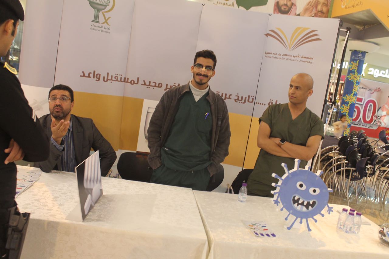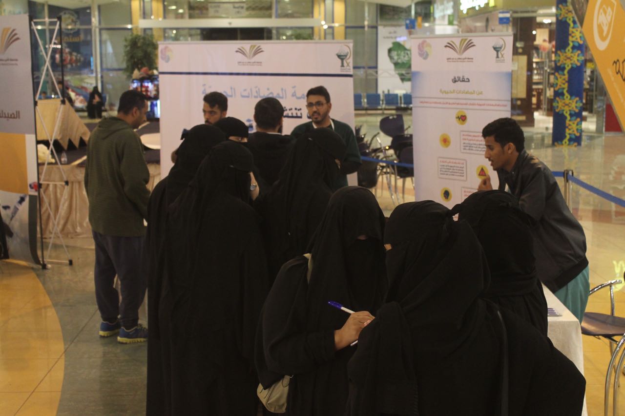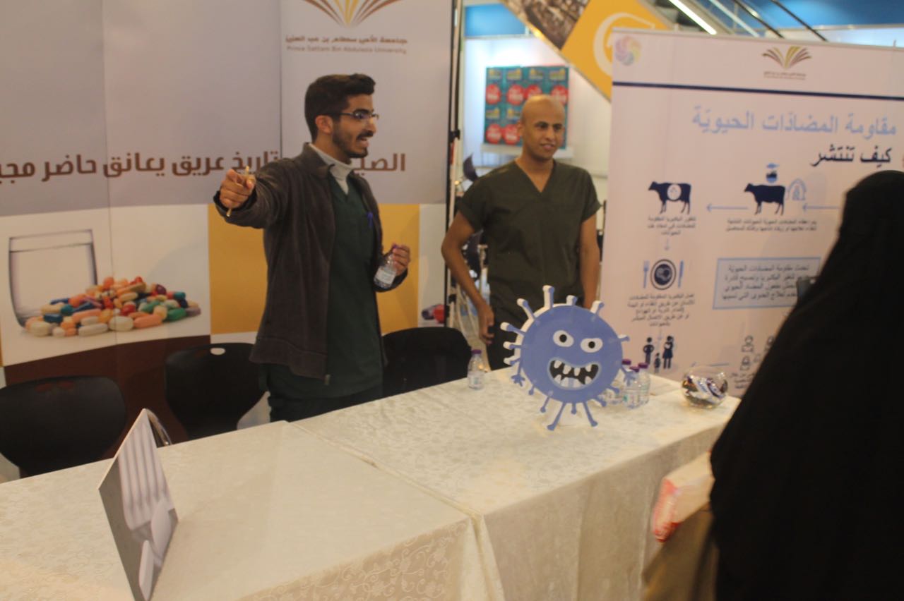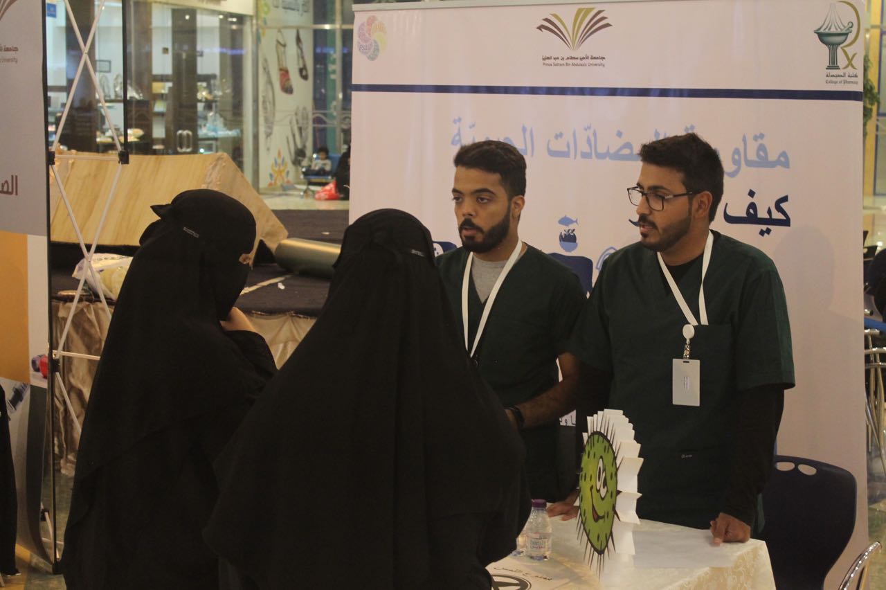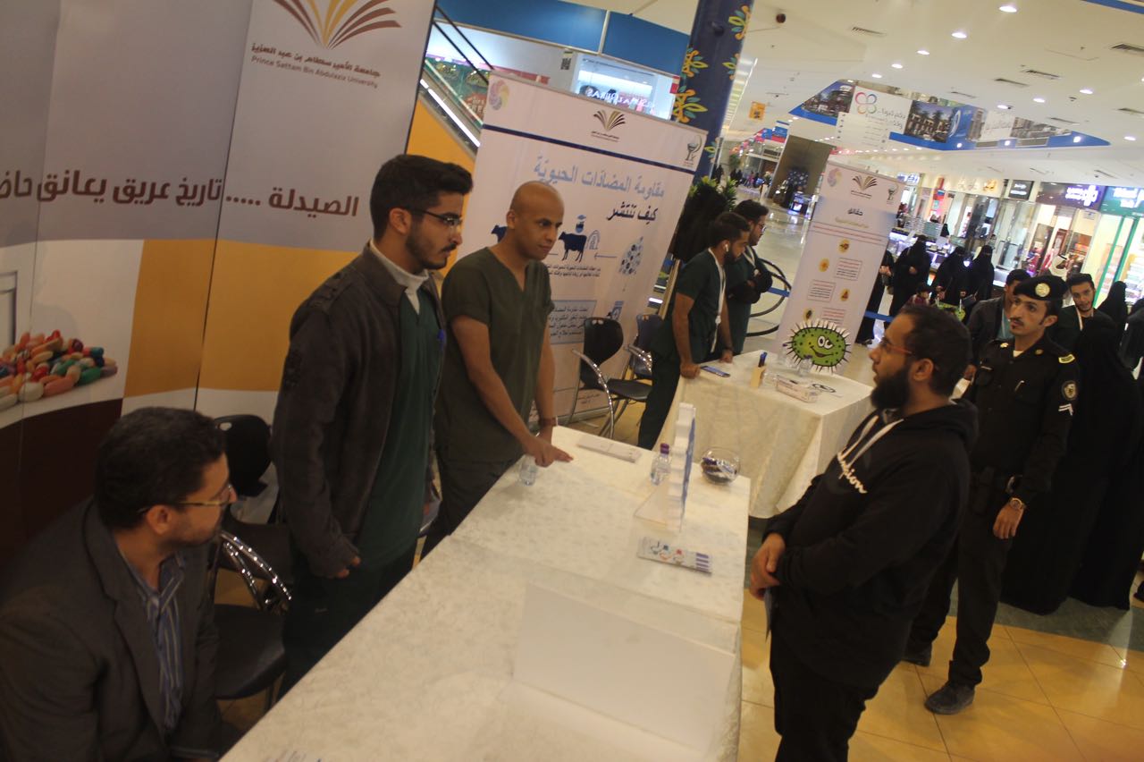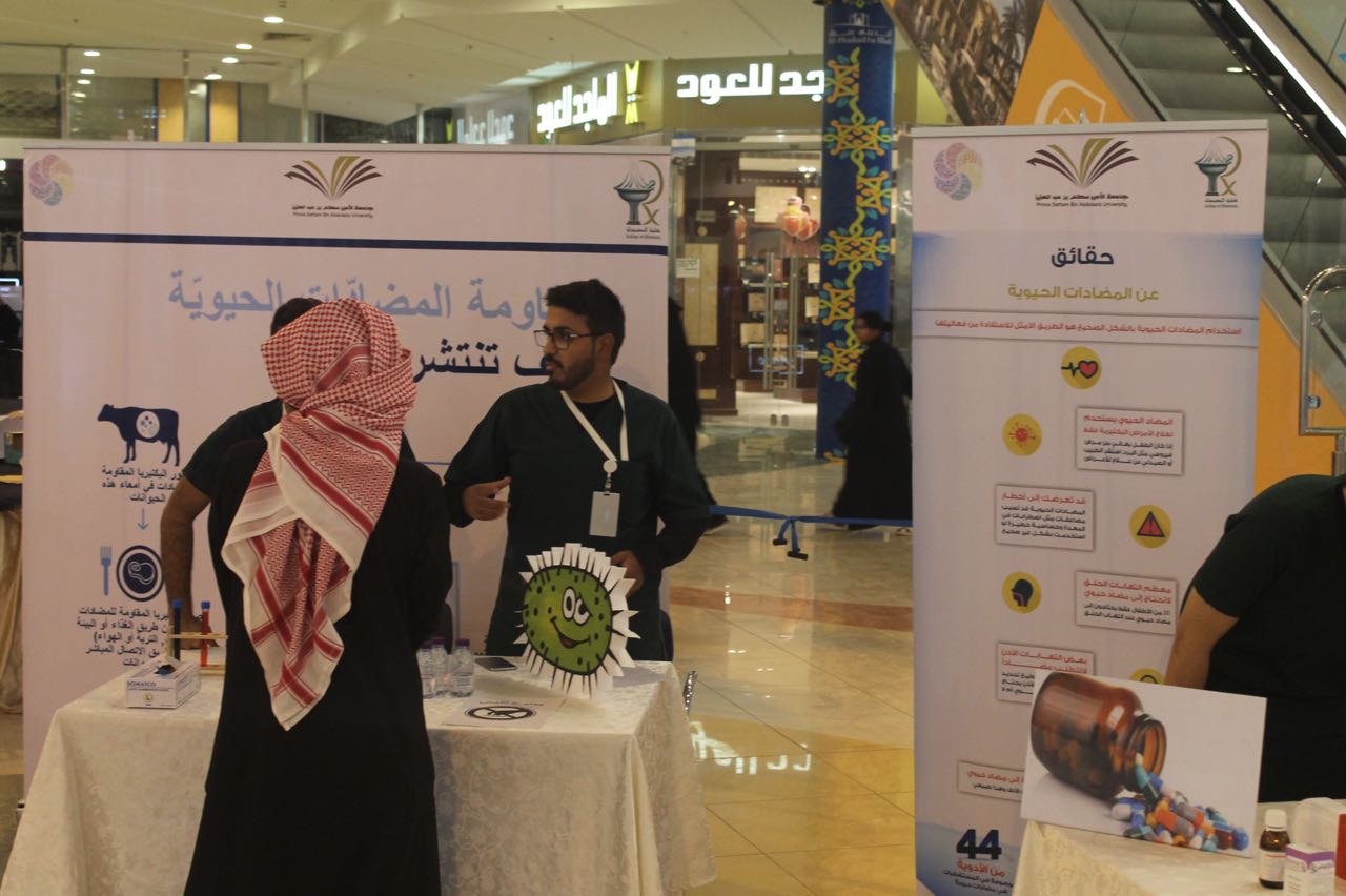 تحت رعاية عميد الكلية الدكتور فهد بن ابراهيم الصيخان أقامت وحدة الأنشطة الطلابية برئاسة الدكتور احمد فودة وكيل الكلية للشؤن الأكاديمية والتعليمية وعضوية كل من الدكتور أحمد العليوي مشرف نادى جرعة والدكتور منشاوي محمد مشرف الأنشطة الطلابية بالتعاون مع لجنة خدمة المجتمع برئاسة الدكتور عبدالله الفيفي وتمثيل المحاضر نهاد جاسر فعالية المضادات الحيوية بالحديثي مول في يوم السبت الموافق 21/3/1439هـ  وذلك ايمانا منها بأهمية دور طلاب الصيدلة في خدمة مجتمعهم حيث اقام طلاب المجلس الطلابي الفعالية    حيث قام الطلبة  بشرح الفرق بين الألتهاب الفيروسي والبكتيري لتعريف الزائرين الفرق بينهما وكيفية التعامل مع كل منهما والأستخدام الأمثل للمضادات الحيوية حتى لا تحدث المقاومة البكتيرية  واعتمد الطلاب فى توصيل المعلومة على الفيديوهات والصور بالإضافة الى المجسمات الحية وحرصوا على وجود ركن خاص بالطفل داخل المعرض وشارك في الفعالية العديد من الطلاب وهم: خالد العتيبي – عبدالرحمن الشهيل- زياد الدعجاني- مشاري عواض الرشيدي- خالد ناصر الشهراني- محمد خالد الغزواني- عبد الحكيم محمد الطاسان- مشاري ناصر الجعيدي- عبدالإله محمد الشهراني