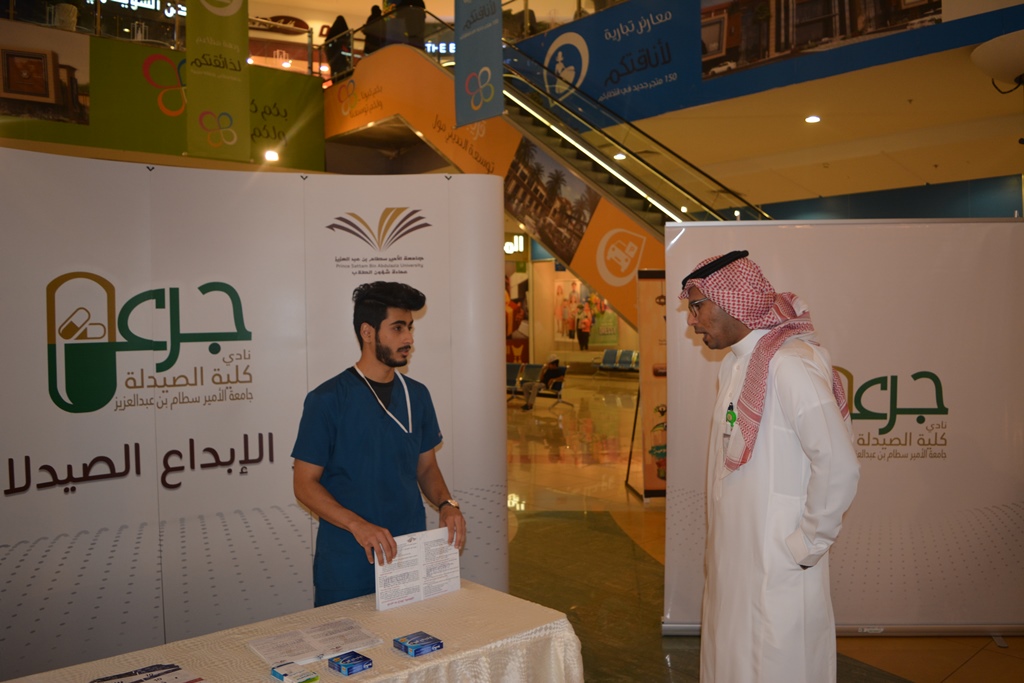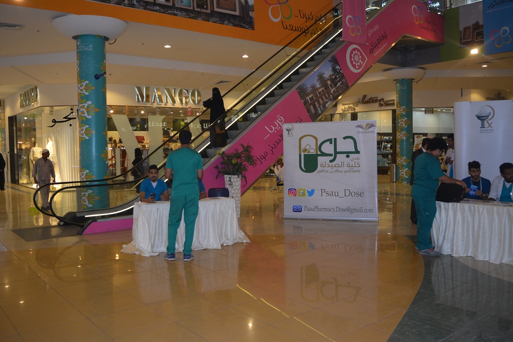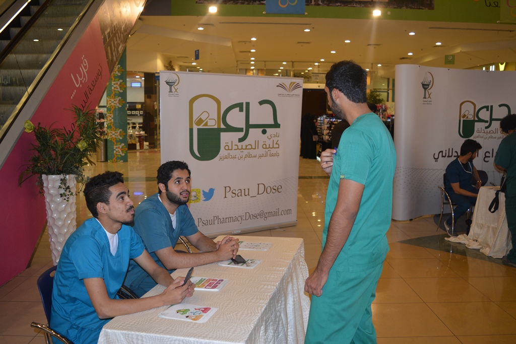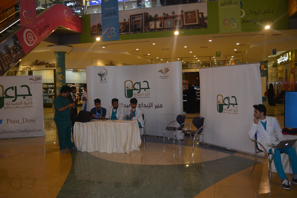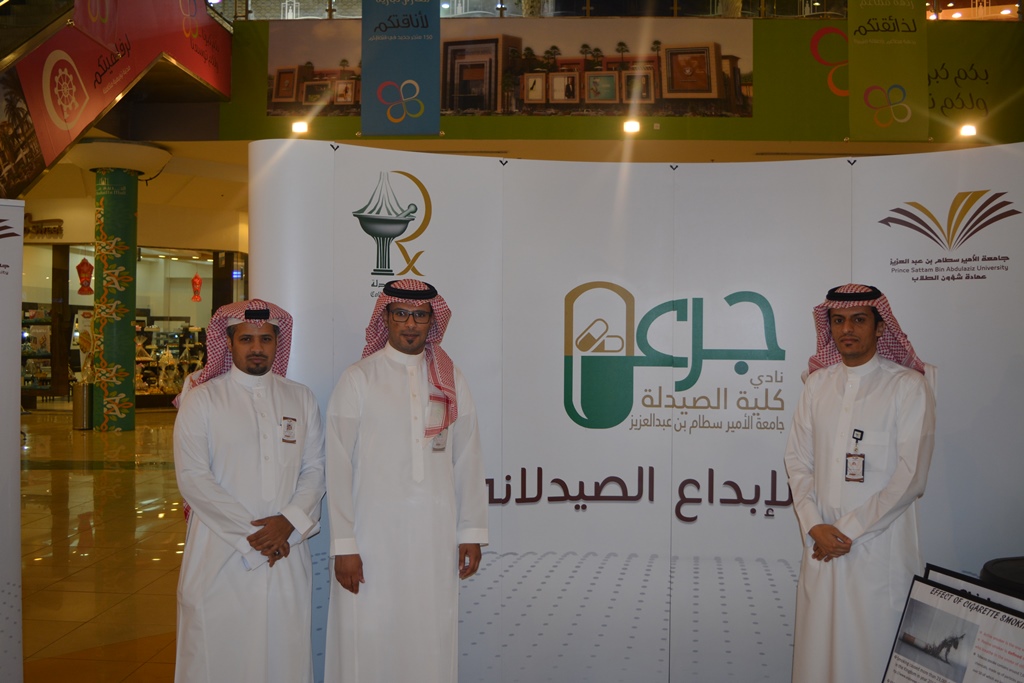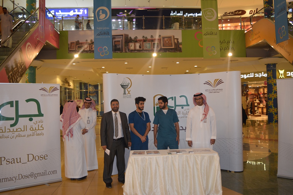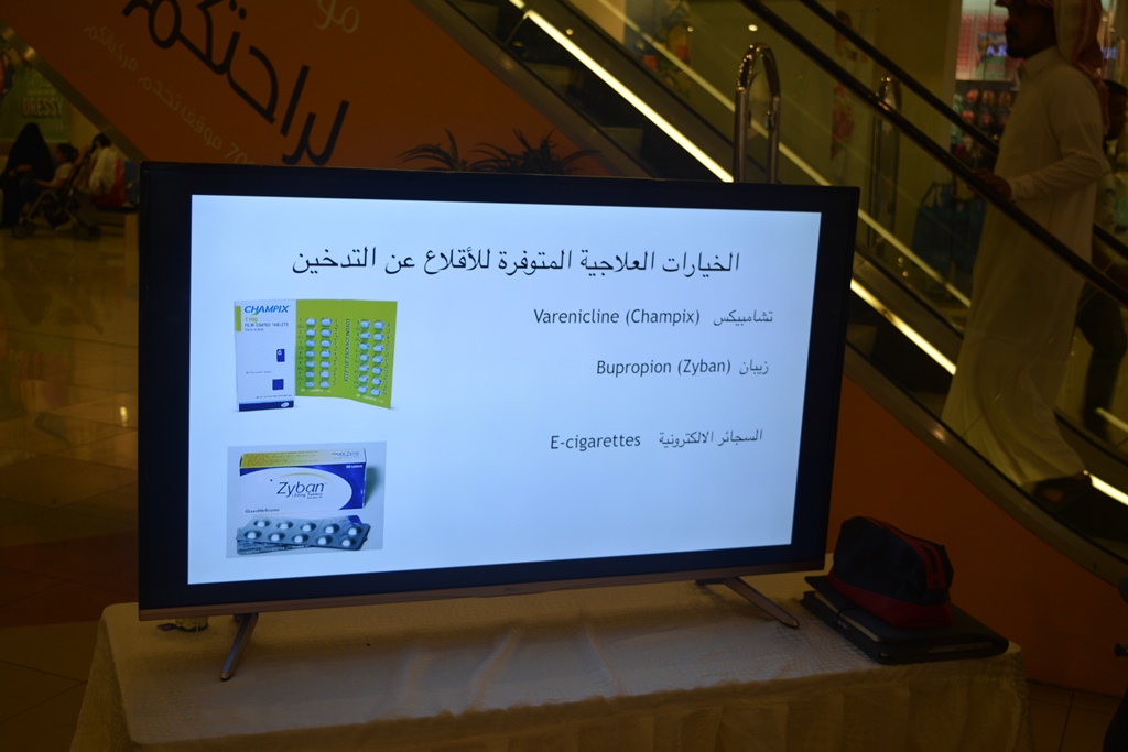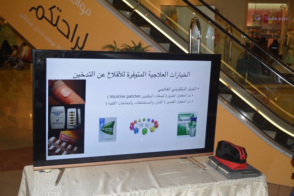نظمت لجنة خدمة المجتمع في كلية الصيدلة بالتعاون مع نادي جرعة فعالية اليوم العالمي لا للتبغ في مجمع الحديثي مول التجاري بالخرج يوم الأربعاء 5/9/1438هـ الموافق 31/5/2017م. تضمنت هذه الفعالية معرضا توعويا تم توزيع مطويات علمية وتقديم عرض مبسط من شأنه زيادة الوعي عن اضرار التبغ والطرق العلاجية للإقلاع عن تعاطيه بشتى انواعه. وتناولت أحدى زوايا المعرض مرض الربو كأحد اضرار تعاطي التبغ والطرق العلاجية المتاحة للتقليل من أزماته. أرتاد المعرض العديد من زوار المجمع التجاري وعددا من أعضاء هيئة تدريس وموظفي جامعة الأمير سطام بالخرج. الشكر موصول لجميع اعضاء لجنة خدمة المجتمع في كلية الصيدلة ونادي جرعة لما قدموه لإنجاح إقامة هذه الفعالية التوعوية وتقديمها لمجتمع محافظة الخرج.