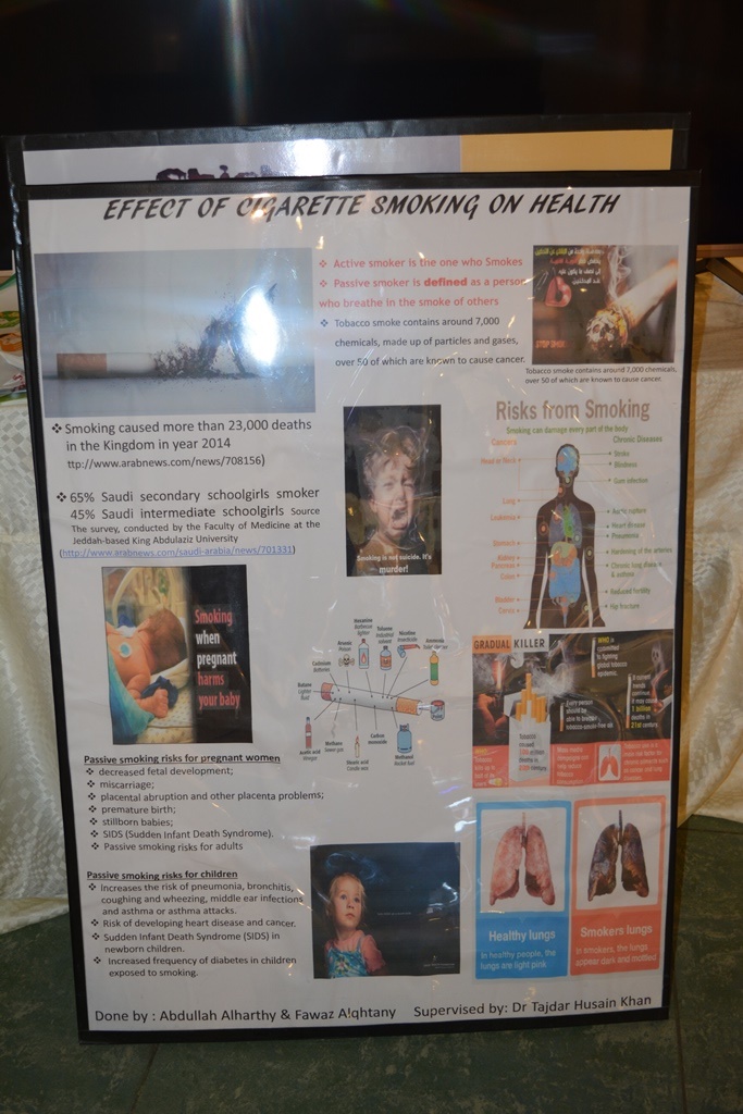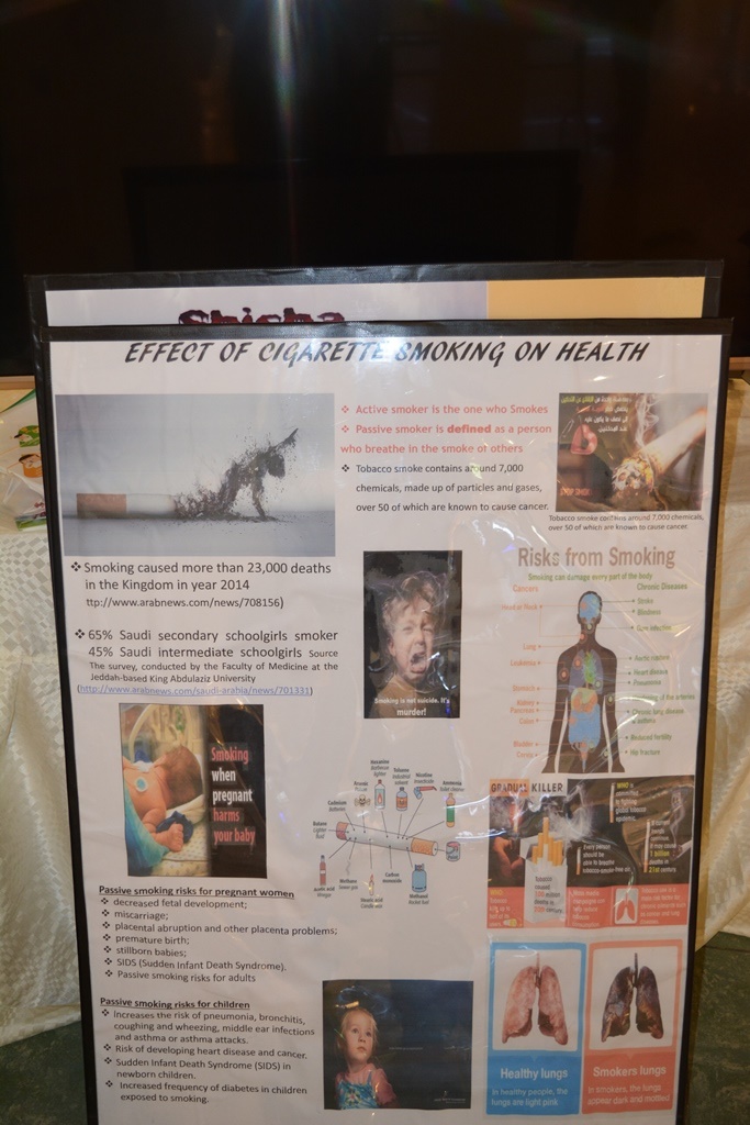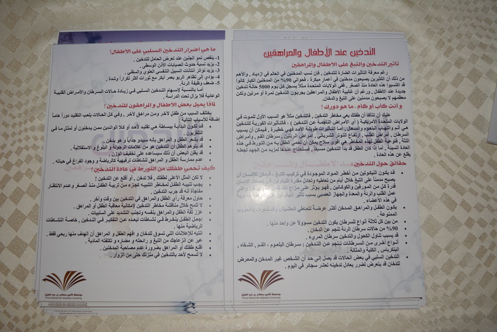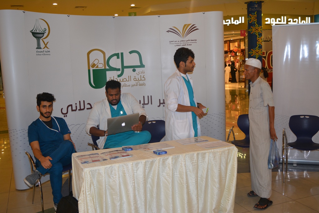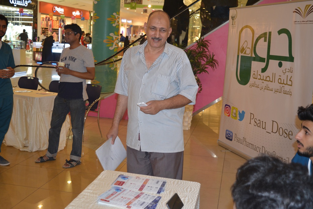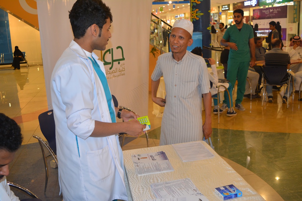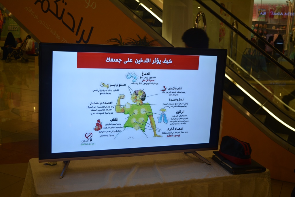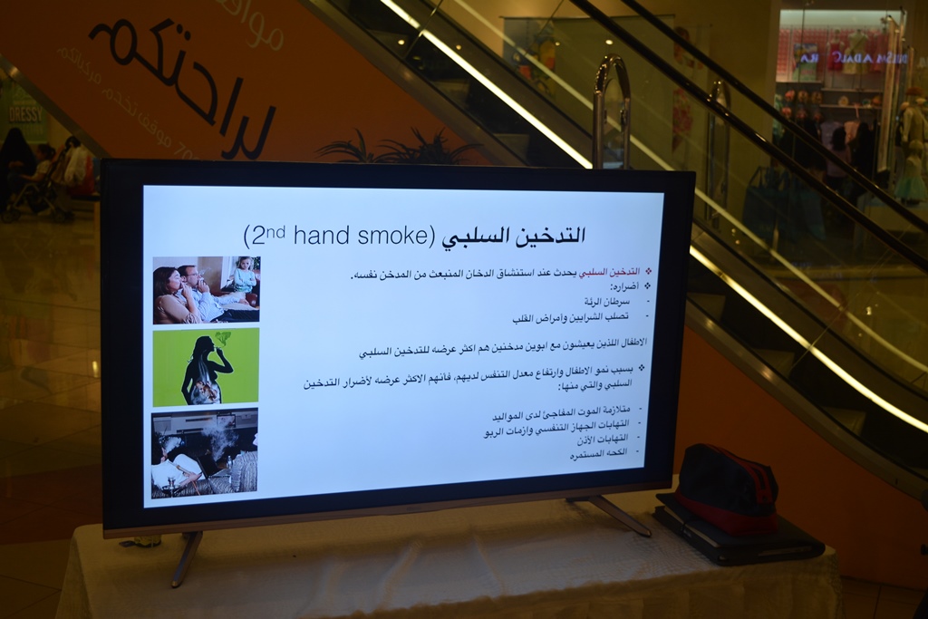 نظمت لجنة خدمة المجتمع في كلية الصيدلة بالتعاون مع نادي جرعة فعالية اليوم العالمي لا للتبغ في مجمع الحديثي مول التجاري بالخرج يوم الأربعاء 5/9/1438هـ الموافق 31/5/2017م. تضمنت هذه الفعالية معرضا توعويا تم توزيع مطويات علمية وتقديم عرض مبسط من شأنه زيادة الوعي عن اضرار التبغ والطرق العلاجية للإقلاع عن تعاطيه بشتى انواعه. وتناولت أحدى زوايا المعرض مرض الربو كأحد اضرار تعاطي التبغ والطرق العلاجية المتاحة للتقليل من أزماته. أرتاد المعرض العديد من زوار المجمع التجاري وعددا من أعضاء هيئة تدريس وموظفي جامعة الأمير سطام بالخرج. الشكر موصول لجميع اعضاء لجنة خدمة المجتمع في كلية الصيدلة ونادي جرعة لما قدموه لإنجاح إقامة هذه الفعالية التوعوية وتقديمها لمجتمع محافظة الخرج.