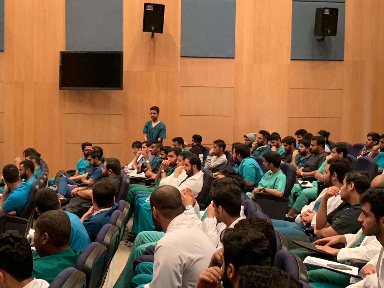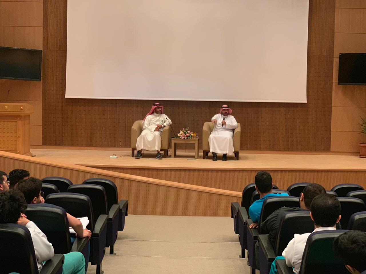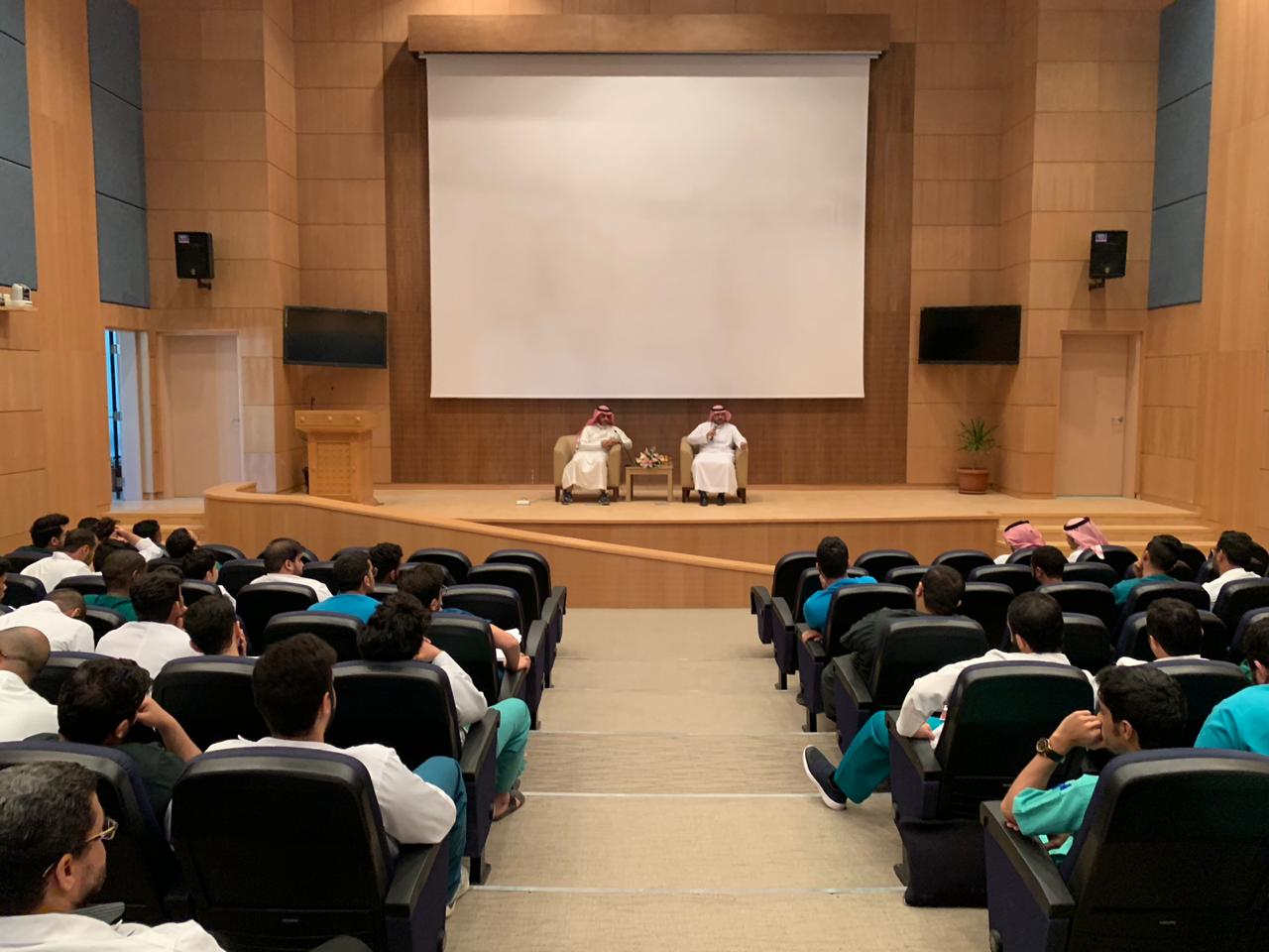 لقاء عميد الكلية مع الطلاب ألتقى سعادة عميد الكلية الدكتور أحمد بن سليمان العليوى وبحضور وكيل الكلية للشؤون التعليمية والأكاديمية الدكتور أحمد بن إبراهيم فودة طلاب كلية الصيدلة بجامعة الأمير سطام بن عبدالعزيز بالخرج وذلك يوم الأربعاء 5/7/1440هـ الموافق 13/ 3/ 2019 م وذلك في تمام الساعة الثانية عشر صباحاً بمسرح كلية العلوم الطبية التطبيقية .وخلال اللقاء رحب سعادة عميد الكلية بالطلاب المستجدين ثم تحدث عن رؤية ورسالة وأهداف الكلية كما حثهم على التحصيل العلمي والاجتهاد والمثابرة في طلب العلم والالتزام والتقيد بحضور المحاضرات بالزي الرسمي المحدد من بداية العام الدراسي متمنياً لهم التوفيق والنجاح وتحقيق أمنياتهم.ثم تحدث استقبل سعادة العميد اسئلة الطلاب والتى كانت متنوعة وشملت كل مايهم الطلاب حاليا ومستقبليا وبالصيف كل في حينه ووعد سعادته بالعمل على تحقيق كل ما يحقق الراحة للطلاب ويساعدهم على الأجتهاد بأسرع ما يكون وكذلك سعادة وكيل الكلية للشؤون التعليمية والأكاديمية الدكتور أحمد فودة حث الطلاب على الأجتهاد ورد على اسئلتهم لأيضاح كافة الأمور المتعلقة بالأمتحانات والجداول.وفي نهاية اللقاء تمنى سعادة العميد التوفيق للطلاب وحثهم على التفوق ووعدهم بعمل مثل هذه اللقاءات باستمرار طالما انها مفيدة للطالب وتصب دائما في مصلحة الطلاب