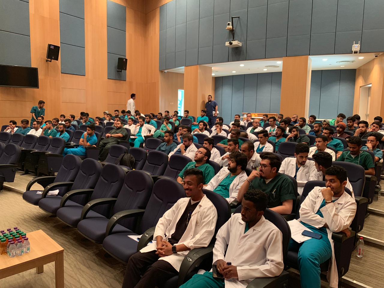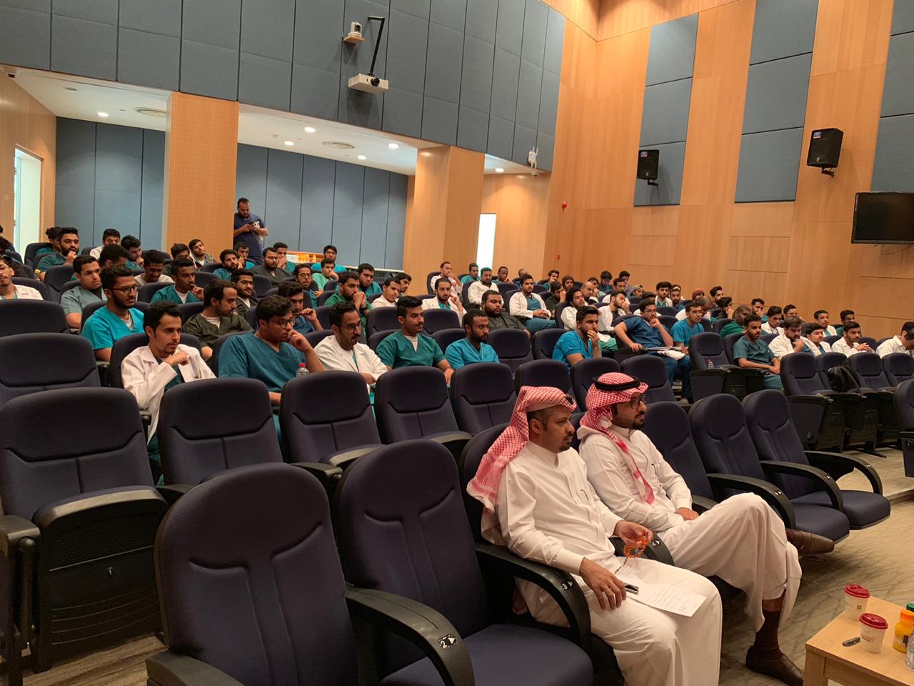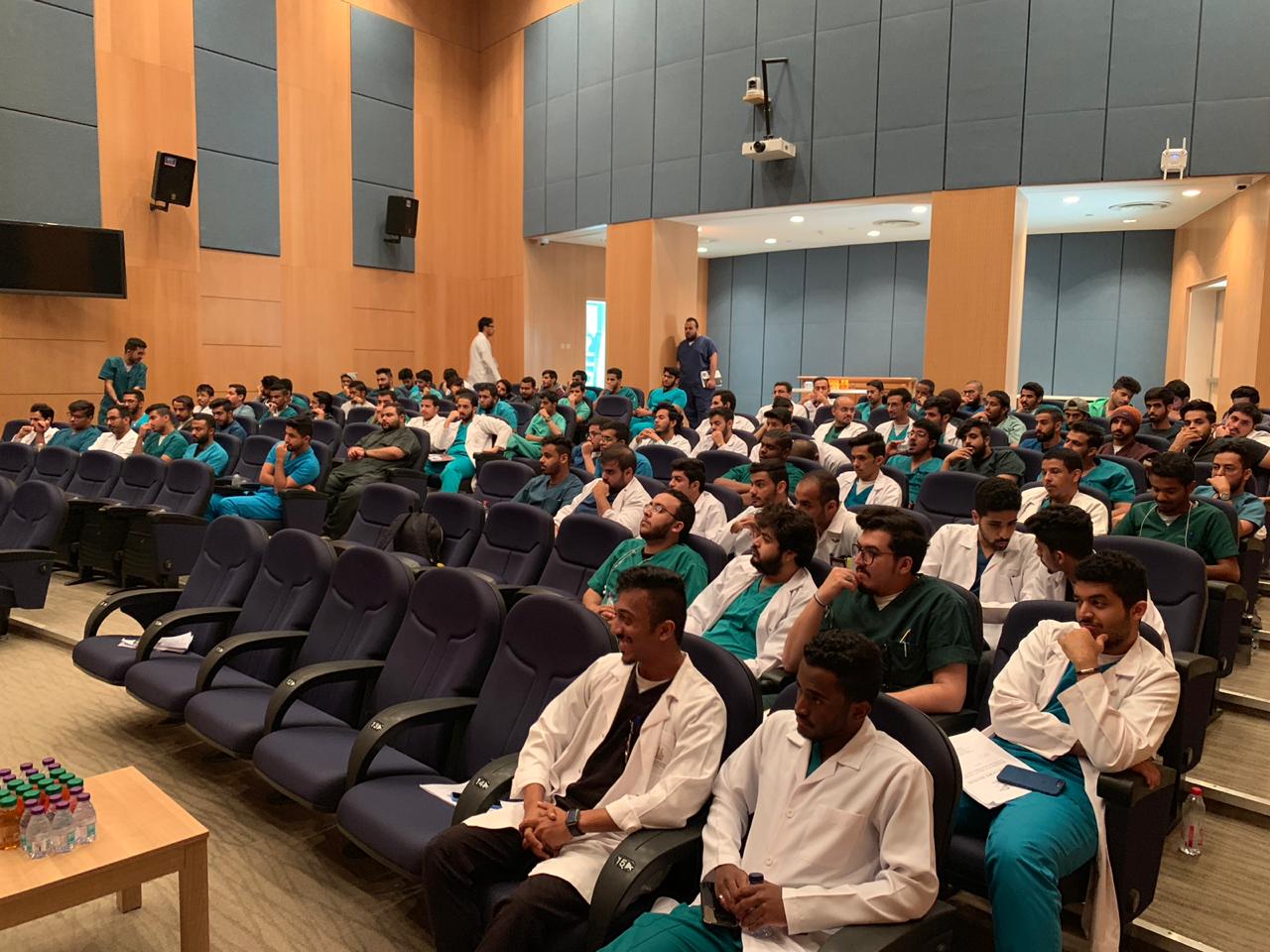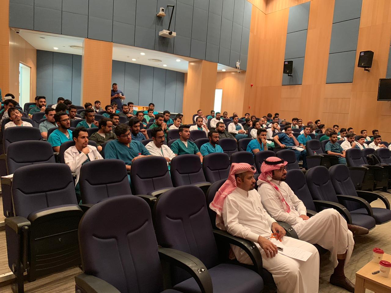 لقاء عميد الكلية مع الطلاب ألتقى سعادة عميد الكلية الدكتور أحمد بن سليمان العليوى وبحضور وكيل الكلية للشؤون التعليمية والأكاديمية الدكتور أحمد بن إبراهيم فودة طلاب كلية الصيدلة بجامعة الأمير سطام بن عبدالعزيز بالخرج وذلك يوم الأربعاء 5/7/1440هـ الموافق 13/ 3/ 2019 م وذلك في تمام الساعة الثانية عشر صباحاً بمسرح كلية العلوم الطبية التطبيقية .وخلال اللقاء رحب سعادة عميد الكلية بالطلاب المستجدين ثم تحدث عن رؤية ورسالة وأهداف الكلية كما حثهم على التحصيل العلمي والاجتهاد والمثابرة في طلب العلم والالتزام والتقيد بحضور المحاضرات بالزي الرسمي المحدد من بداية العام الدراسي متمنياً لهم التوفيق والنجاح وتحقيق أمنياتهم.ثم تحدث استقبل سعادة العميد اسئلة الطلاب والتى كانت متنوعة وشملت كل مايهم الطلاب حاليا ومستقبليا وبالصيف كل في حينه ووعد سعادته بالعمل على تحقيق كل ما يحقق الراحة للطلاب ويساعدهم على الأجتهاد بأسرع ما يكون وكذلك سعادة وكيل الكلية للشؤون التعليمية والأكاديمية الدكتور أحمد فودة حث الطلاب على الأجتهاد ورد على اسئلتهم لأيضاح كافة الأمور المتعلقة بالأمتحانات والجداول.وفي نهاية اللقاء تمنى سعادة العميد التوفيق للطلاب وحثهم على التفوق ووعدهم بعمل مثل هذه اللقاءات باستمرار طالما انها مفيدة للطالب وتصب دائما في مصلحة الطلاب