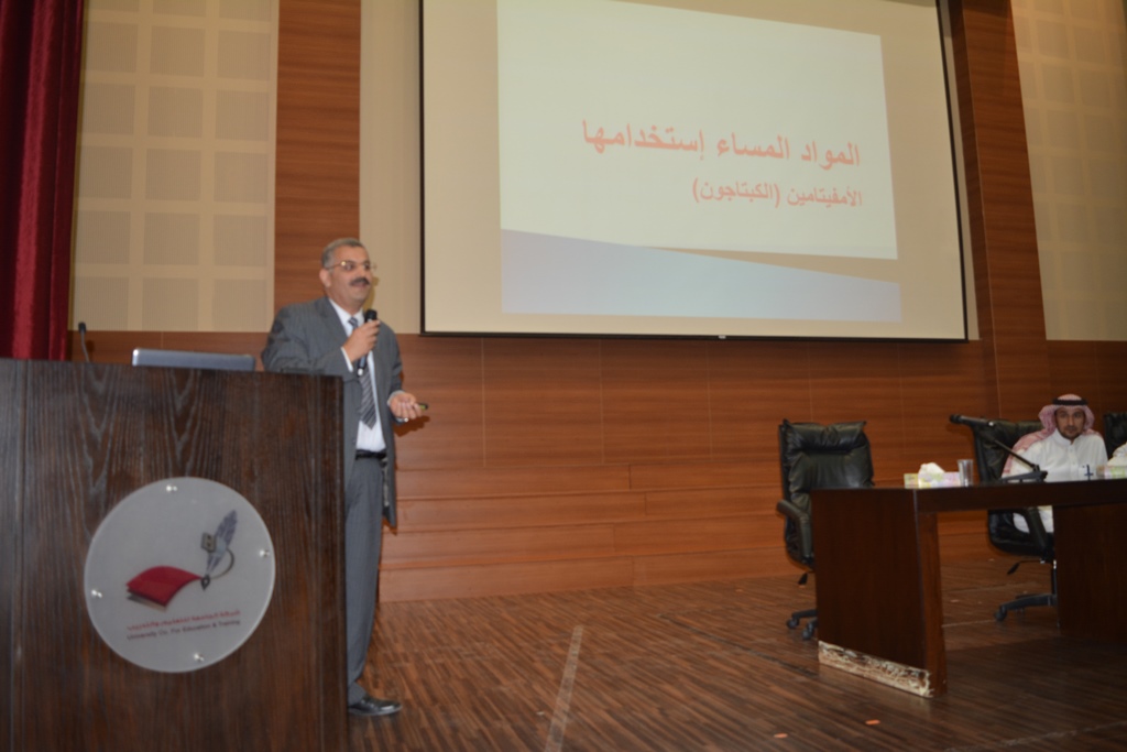 ضمن سلسة المحاضرات التثقيفية والخدمة المجتمعية التي تقدمها كلية الصيدلة جامعة الأمير سطام بن عبدالعزيز ممثلا بلجنة خدمة المجتمع في كلية الصيدلة، تم في هذا اليوم الثلاثاء 11/6/1436هـ القاء محاضرة ، وكان موضوع اللقاء التعريف بكلية الصيدلة جامعة الأمير سطام بن عبدالعزيز وتم عقد محاضرة بعنوان مضار المخدرات على الطالب والمجتمع، وحضر اللقاء إدارة المدارس وعدد كبير من الطلاب في المراحل المختلفة. ومثّل كلية الصيدلة في هذا اللقاء سعادة الدكتور فهد الصيخان وكيل الكلية للشؤون الأكاديمية وسعادة الدكتور حسن اوغلو المشرف على قسم العقاقير حيث القى المحاضر الخاصة عن الكبتاجون كمادة مخدرة والطالب سليمان الهويشل منسق اللقاء. كما تم عمل حلقات مناقشة مع الحاضرين وممثلي الكلية تناولت جميع محاور اللقاء. وتم توزيع بعض الهدايا التذكارية من الكلية ونبذه تعريفية عن كلية الصيدلة على الحضور.