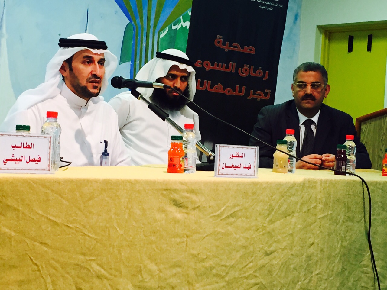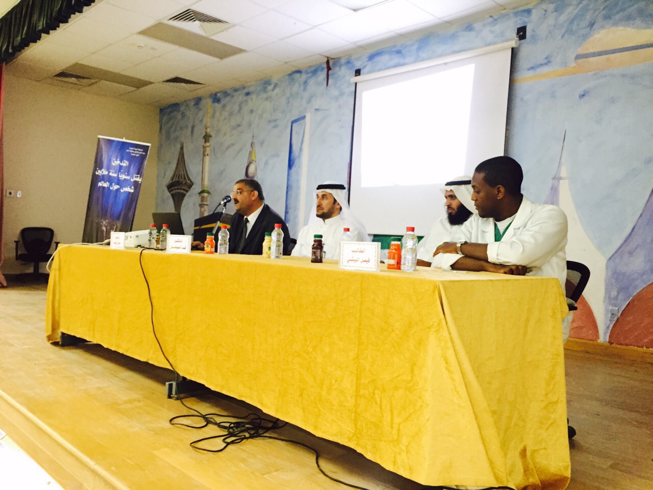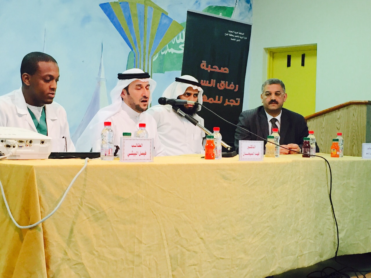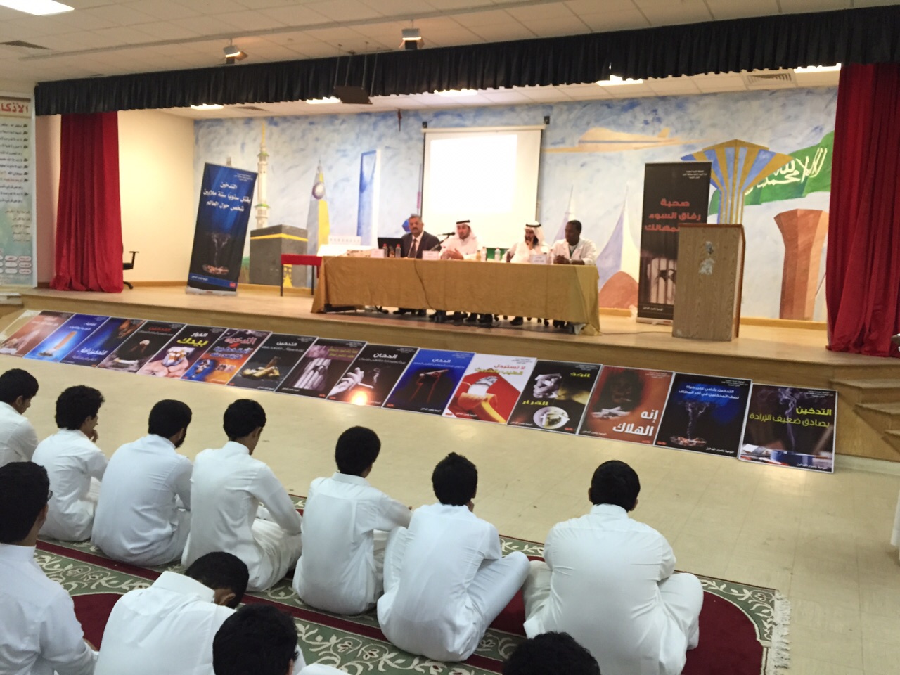 ضمن سلسة المحاضرات التثقيفية والخدمة المجتمعية التي تقدمها كلية الصيدلة جامعة الأمير سطام بن عبدالعزيز ممثلا بلجنة خدمة المجتمع في كلية الصيدلة، تم في هذا اليوم الخميس 11/7/1436هـ، وكان موضوع اللقاء التعريف بكلية الصيدلة جامعة الأمير سطام بن عبدالعزيز وتم عقد محاضرة بعنوان مضار المخدرات على الطالب والمجتمع، وحضر اللقاء إدارة المدرسة وعدد كبير من الطلاب. ومثّل كلية الصيدلة في هذا اللقاء سعادة الدكتور فهد بن إبراهيم الصيخان وكيل الكلية للشؤون الأكاديمية وسعادة الدكتور حسن سليمان يوسف اوغلو المشرف على قسم العقاقير حيث القى المحاضرة الخاصة عن الأمفاتمين كمادة مخدرة وطالب الكلية فيصل البيشي. كما تم عمل حلقات مناقشة مع الحاضرين وممثلي الكلية تناولت جميع محاور اللقاء. وتم توزيع بعض الهدايا التذكارية من الكلية ونبذه تعريفية عن كلية الصيدلة على الحضور وتم توزيع شهادة شكر وتقدير من إدارة المدرسة لممثلي الكلية.
