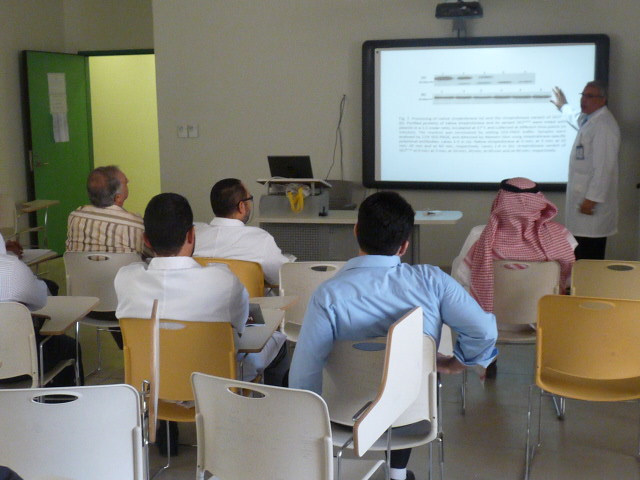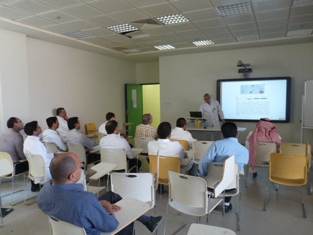 ( استخدام تقنية توليف الحامض النووي في رفع كفاءة انزيم الستربتوكيناز ) والتي ألقاها الدكتور/ مجدي محمد السيد محرم الأستاذ المشارك بقسم العقاقير، وذلك يوم الأربعاء 25/12/1434هـ الموافق 30/10/2013م ، حيث تناولت المحاضرة موضوع أنزيم الستربتوكيناز المستخدم فى تذويب تجلط الدم عن طريق تحفيز البلازمازيموجين إلى بلازمين. وركزت المحاضرة على طريقة رفع كفاءة هذا الإنزيم عن طريق تغيير بعض الأحماض الأمينية في تسلسل البروتين الخاص به بالتشفير الوراثي وتقنية توليف الحامض النووى Recombinant DNA technology ، وكان ذلك في إطار أنشطة وحدة التطوير والجودة للكلية برئاسة وكيل الكلية للتطوير والجودة الدكتور عبدالله بن علي القحطاني في الفصل الدراسي الأول للعام الجامعي 1434/1435هـ.