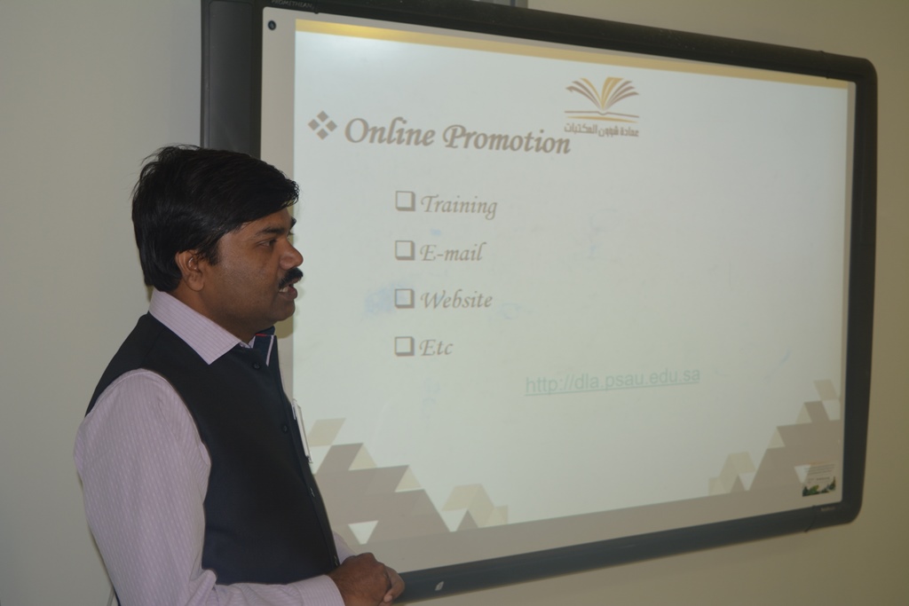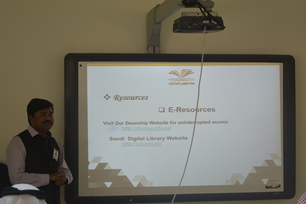 (Orientation Program on Services of Deanship of Library Affairs ) والتي ألقاها سعادة المحاضر/ محمد شاكر ازاد، وذلك يوم الاثنين 26/5/1439هـ الموافق 12/2/2018م الساعة الثانية عشر ظهراً بالقاعة التدريسية رقم ( 3 – ج - 7 ) بالكلية ، والمحاضرة تتحدث عن وصف البرنامج التعريفي للمكتبات بمقدمة لعمادة شؤون المكتبات والموارد منها المادية والالكترونية وخدمات المكتبة والمرافق من المكتبة الرقمية السعودية وخدمات أخرى، وكان ذلك من ضمن أنشطه الفصل الدراسي الثاني للعام الجامعي 1438/1439هـ.