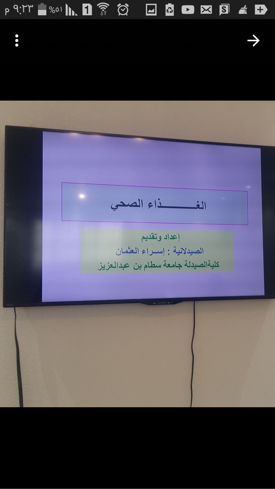 في إطار الشراكة المجتمعية ونشر الوعي الصحي والتعاون بين كلية الصيدلة ومؤسسات المجتمع المحلية ألقت الصيدلانية إسراء العثمان محاضرتان الأولى عن الغذاء الصحي في مركز الارجوان للفتيات بمحافظة بالدلم والتابع للجنة التنمية الإجتماعية الأهلية في يوم الأثنين الموافق 15/2/1440هـ والثانية يوم الأربعاء الموافق 6/3/1440ه،في متوسطة وثانوية البنات بنعجان بهدف توعية الفتيات عن كيفية الوقاية من الأمراض وكثير من الأمراض الصحية عن طريق اختيارالغذاء الصحي الذي يقوي مناعة الفرد ويزيدمن مقاومته للأمراض حيث تم تسليط الضوء على الأغذية الصحية في فترة الدورة الشهرية والأغذية التي تفيد الصحة والشعر والأغذية المقاومة للسرطان والأغذية الطاردة للشوارد الحرة ونواتج عمليات الهدم وبيان أضرار الوجبات السريعة والمشروبات الغازية على الصحة العامة وفي نهاية المحاضرة تم لإجابة على استفسارات الحاضرات اللاتي عبرن عن إعجابهن بمثل هذه الفعاليات التي تزيد من وعيهن الصحي .