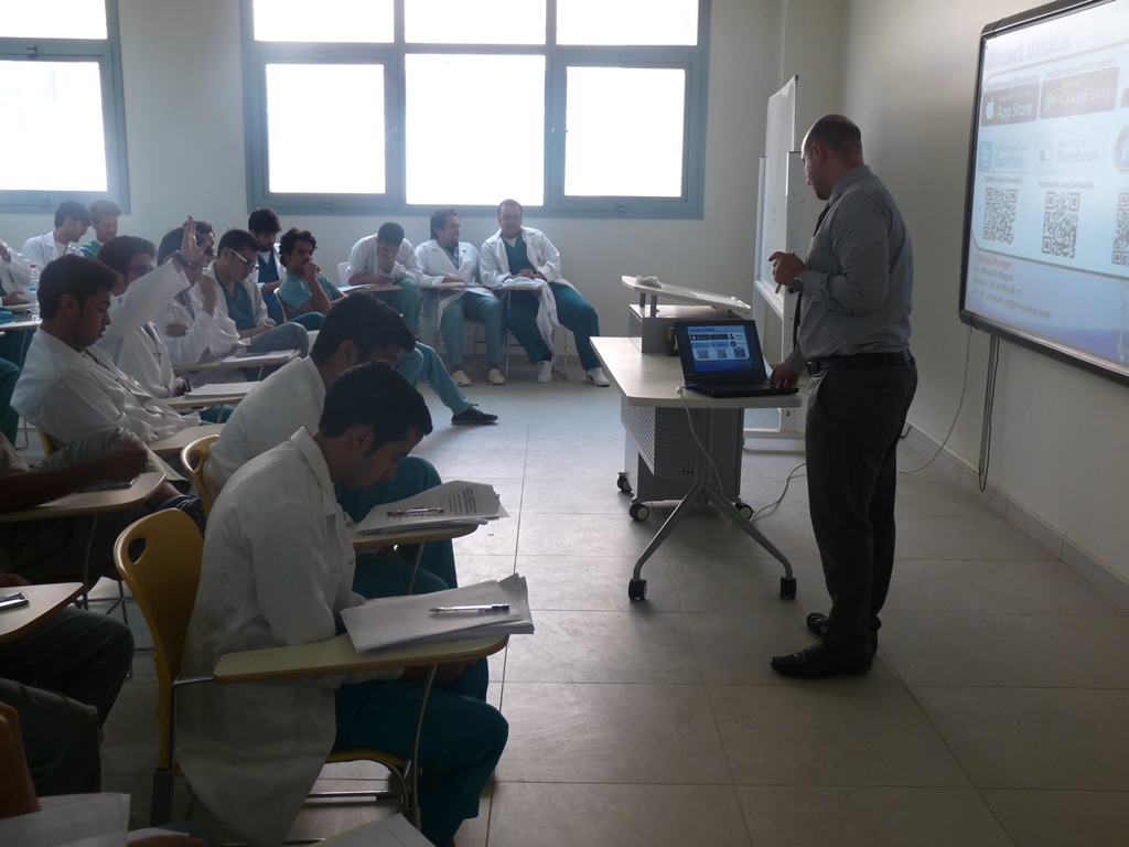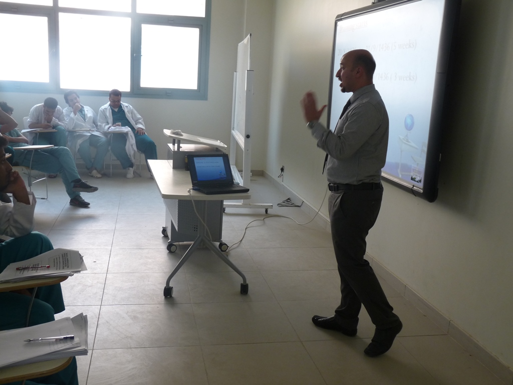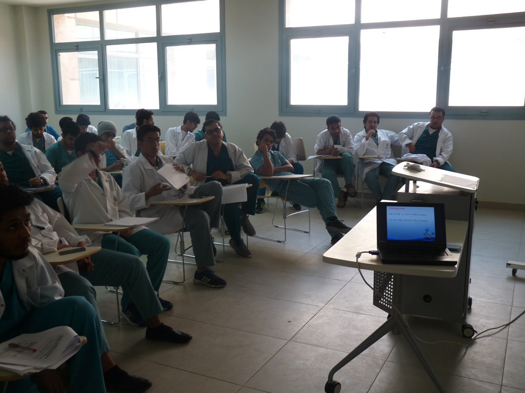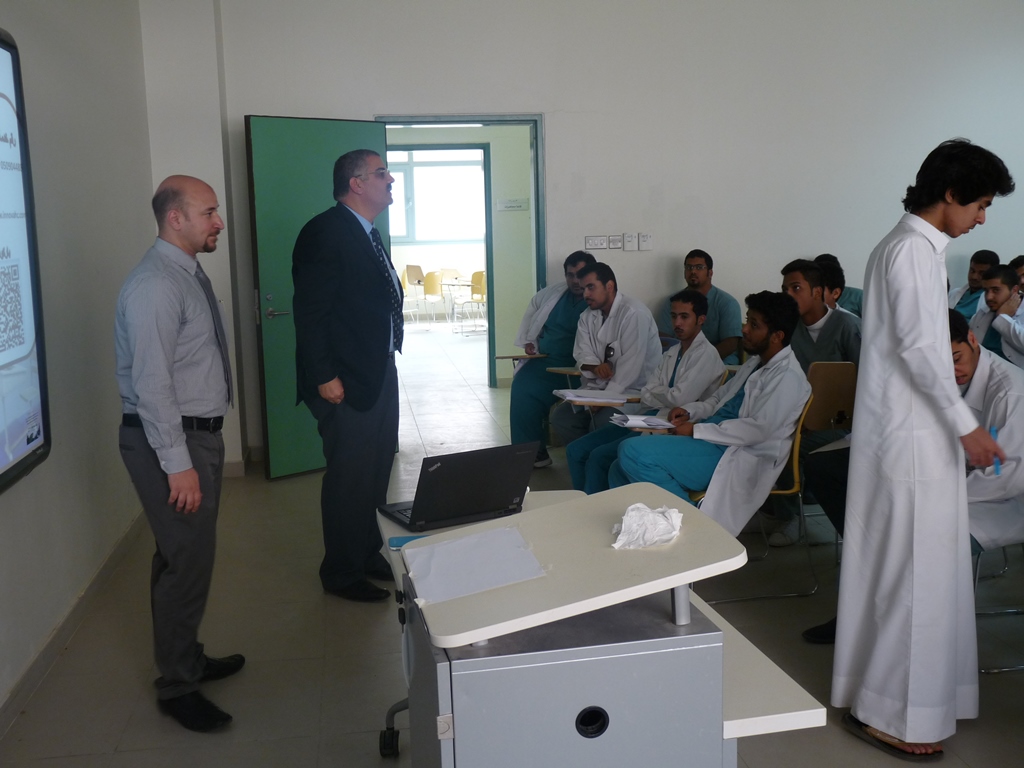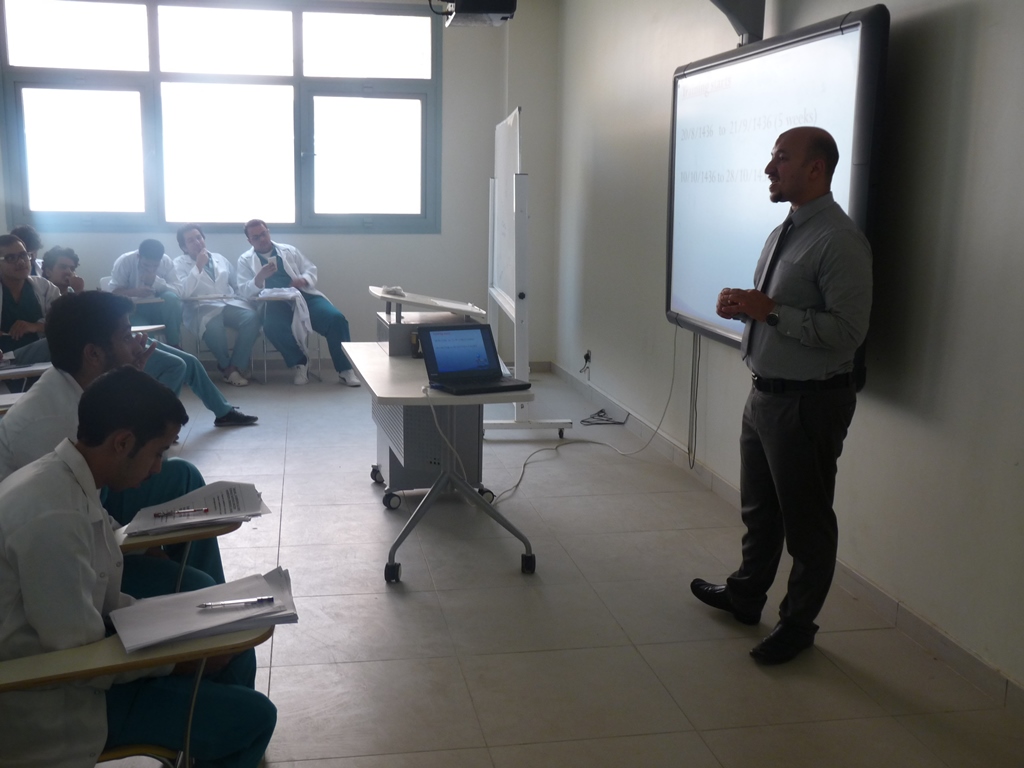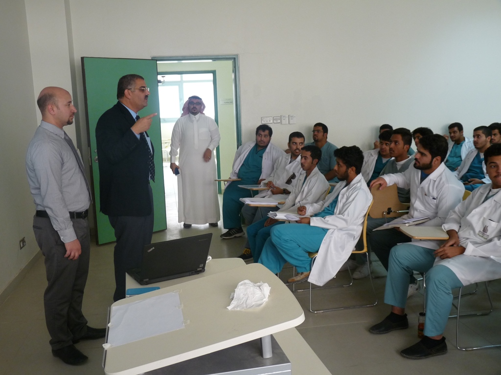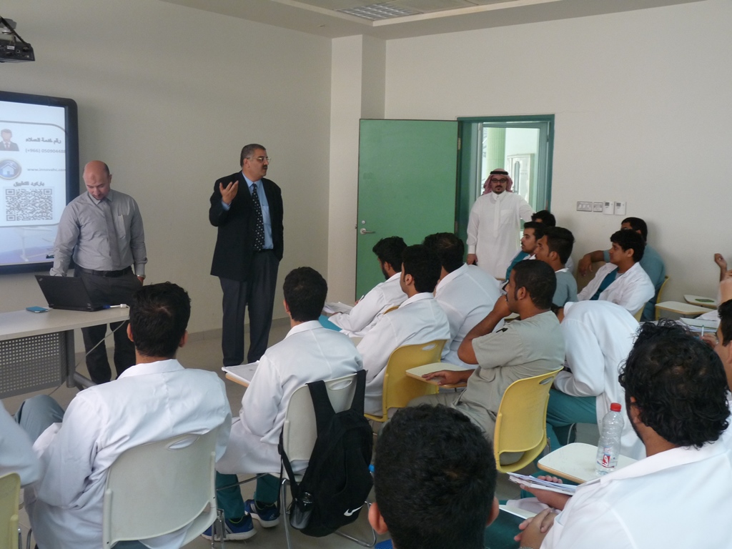 تحت إشراف د. حسن سليمان يوسف أوغلو وبالتعاون مع شركة انوفا السعودية للرعاية الصحية حيث ألقى الدكتور مصطفى ماجد المشرف عن الصيدليات والمشرف على التدريب الميداني محاضرة لطلاب المستوى السادس بالكلية عن التدريب الصيدلي الميداني الأول ( 301 تدص ) قارب عدد المتدربين (60) طالب على صيدليات الشركة ( بيت الصحة – مملكة الصحة – لؤلؤة الصحة ) وهي موزعة على مدينتي الرياض والخرج، وقد نُوقش المشاكل التي تواجه الطلاب خلال فترة التدريب والعمل على حلها، كما تم عمل بصمة للطلاب من قبل الشركة لإثبات الحضور والانصراف عن طريق البصمة الإلكترونية خلال فترة التدريب.