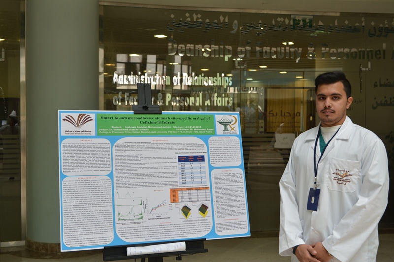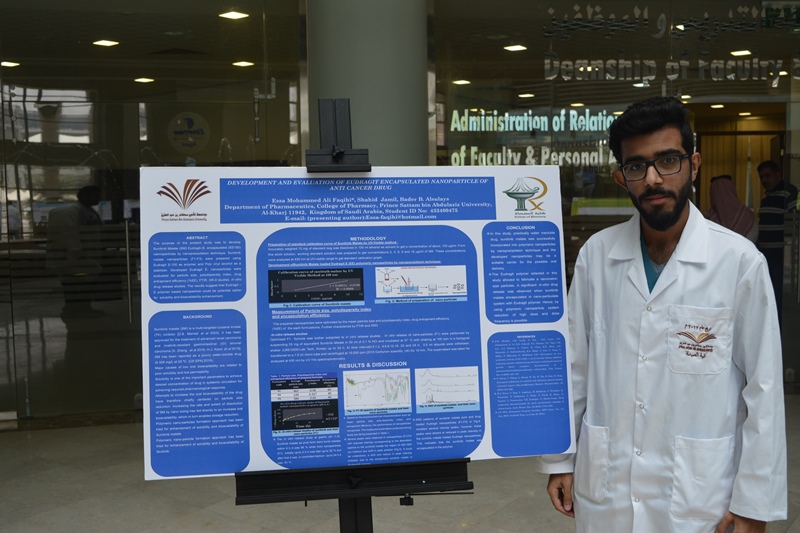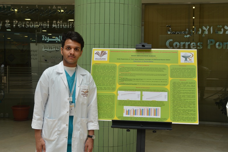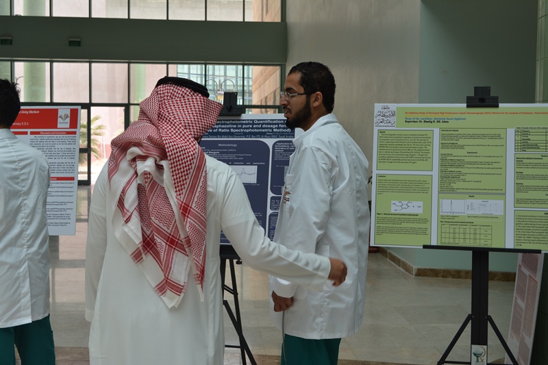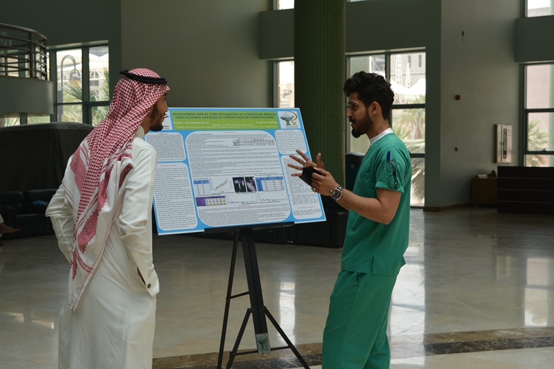 تحت رعاية عميد كلية الصيدلة الدكتور فهد بن إبراهيم الصيخان قام وكيل الكلية للشؤون التعليمية والأكاديمية الدكتور أحمد بن إبراهيم فوده بمناقشة مشاريع التخرج لطلبة الكلية بمشاركة رؤساء ومشرفي الأقسام سعادة الأستاذ الدكتور حسن سليمان يوسف اوغلو وسعادة الدكتور رمضان إبراهيم الشديفات وسعادة الدكتور خالد بن مفلح الحارثي وسعادة الدكتور عبدالله بن عثمان الثميري وكذلك سعادة الأستاذ الدكتور جمال عبدالحكيم سليمان وسعادة الأستاذ الدكتور سامي جابر عبدالحميد للعام الجامعي 1437-1438هـ يوم الأربعاء 28/8/1438هـ وكان ذلك في بهو الجامعة.