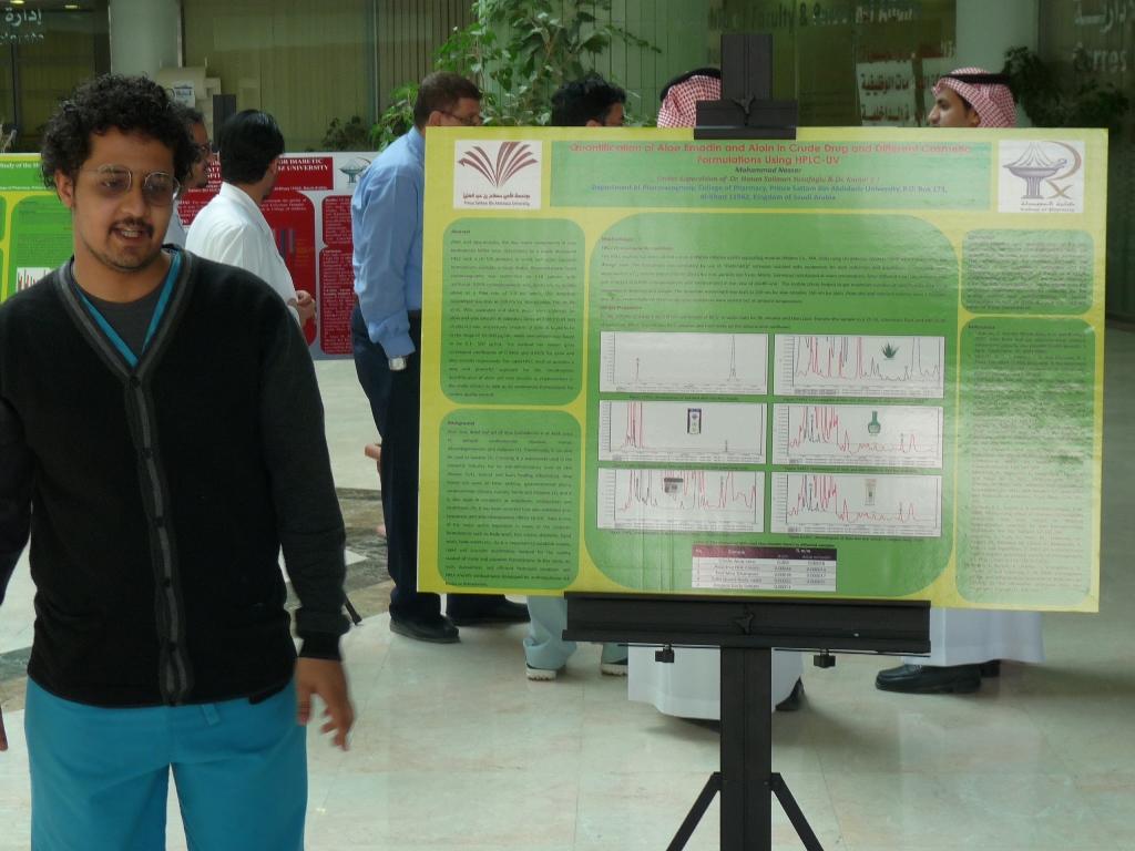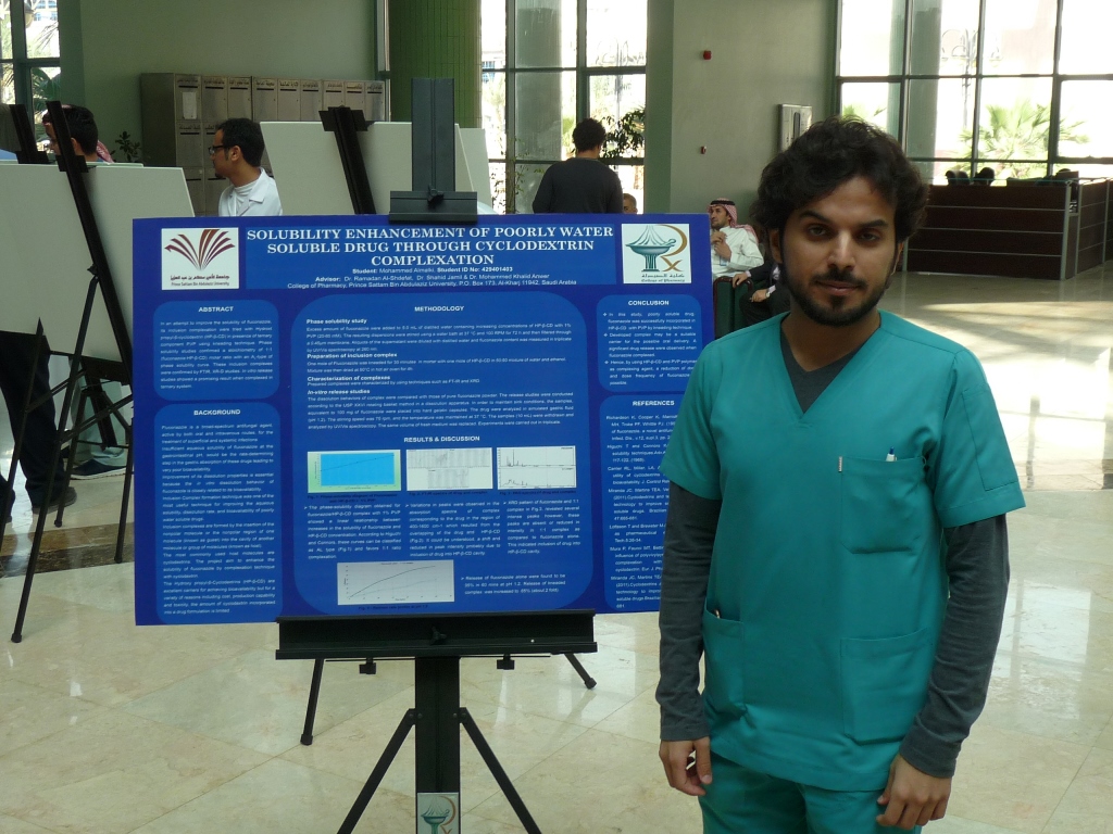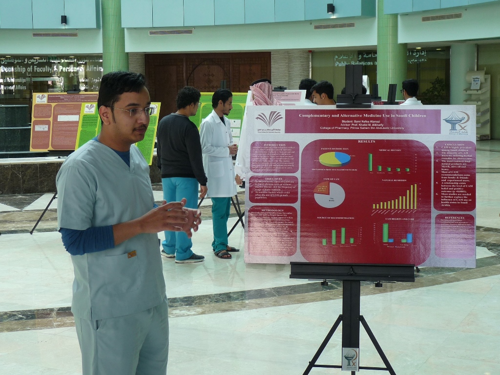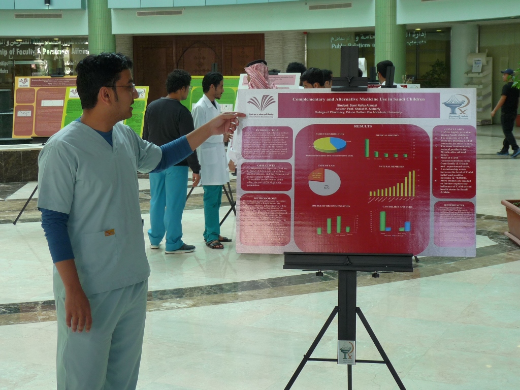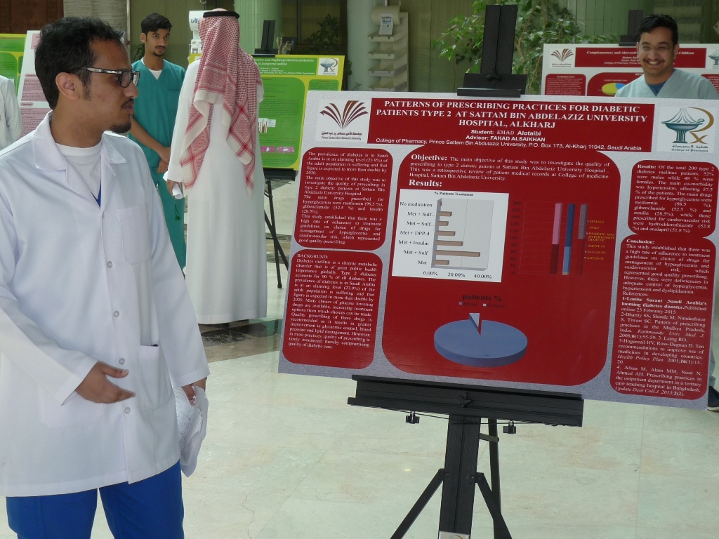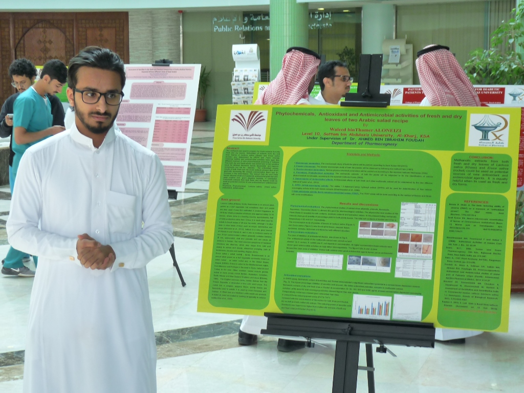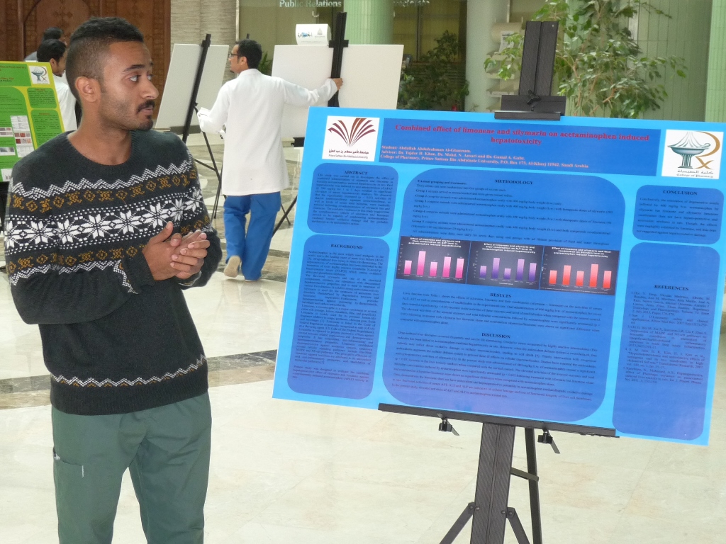 تحت رعاية عميد كلية الصيدلة الأستاذ الدكتور خالد بن محمد الخرفي قام وكيل الكلية للدراسات العليا والتعليم الصيدلي المستمر الدكتور فهد بن إبراهيم الصيخان ووكيل الكلية للشؤون التعليمية والأكاديمية الدكتور أحمد بن إبراهيم فوده ومشرفي الأقسام  الأستاذ الدكتور محمد عبدالغني عبدالمتعال المشرف على قسم الصيدلة الإكلينيكية والاستاذ الدكتور سامي جابر عبدالحميد المشرف على قسم الكيمياء الصيدلية والأستاذ الدكتور جمال عبدالحكيم سليمان المشرف على قسم علم الأدوية  والدكتور حسن سليمان يوسف اوغلو المشرف على قسم العقاقير والدكتور بهاء الدين السيد محمد قسم الصيدلانيات بمناقشة مشاريع التخرج لطلاب الكلية للعام الجامعي 1436-1437هـ يوم الأربعاء 12/3/1437هـ وكان ذلك في بهو الجامعة.