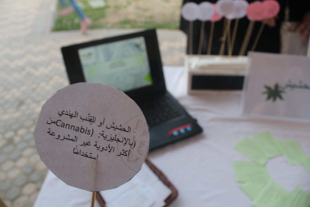 ضمن الأنشطة الطلابية بكلية الصيدلة شطر الطالبات نظم مجموعة من الطالبات معرض توعوي عن مادة الحشيش و ذلك يوم الخميس الموافق 5/3/1439هـ في حديقة مصلى العيد بهدف  التعريف بأضرار مادة الحشيش على الحالة الذهنية والنفسية والجسدية للمتعاطي بالإضافة الى شرح وافي عن طرق ترويجها لزيادة الوعي بأهمية مكافحتها صاحب ذلك توزيع عدد من المنشورات الموضحة لهذه المادة وقد تفاعل الحاضرين بشكل لافت مع الركن عن طريق توجيه الاسئلة والاستفسارات للمنظمات لهذا الركن  يذكر أن النشاط عمل كل من الطالبات عبير الزهراني , فاطمة عويص , رحاب العنزي.