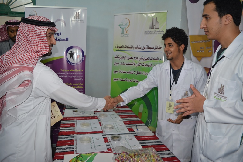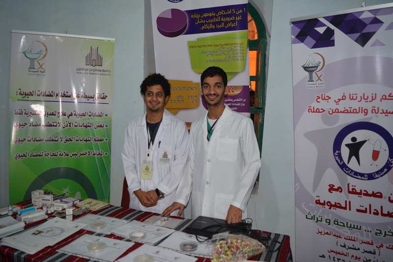 قامت كلية الصيدلة- جامعة سلمان بن عبد العزيز بالمشاركة في مهرجان الخرج للسياحة والتراث النسخة الثالثة لعام 1436 ھ وذلك بجناح عن الكلية وانشطتها وكذلك النشاط المصاحب بعنوان "كن صديقا مع المضادات الحيوية " والذى نظمه طلاب الكلية. وشمل جناح الكلية توزيع بعض المطبوعات التعريفية بالكلية وانشطتها واقسامها المختلفة وعرض لبعض الاساليب البحثية المتبعة في البحث العلمي بالكلية. وشمل الجناح ايضا مطبوعات توعوية عن المضادات الحيوية والاستخدام الامثل لها للمحافظة على فاعليتها كما قام الطلاب بعرض افلام فيديو معربة عن المضادات الحيوية. ومن ضمن المعروضات بعض المشروعات البحثية للطلاب والتي حازت على جوائز على مستوى المملكة في الاعوام السابقة. وقد قام بافتتاح المهرجان سعادة مدير الغرفة التجارية الراعية والمنظمة للمهرجان وكذلك سعادة مدير شركة تانيا للمياه الصحية. وقد حظى جناح الكلية بالعديد من الزيارات الرسمية والشعبية حيث تجاوز عدد الزوار 400 زائر في الايام الماضية.