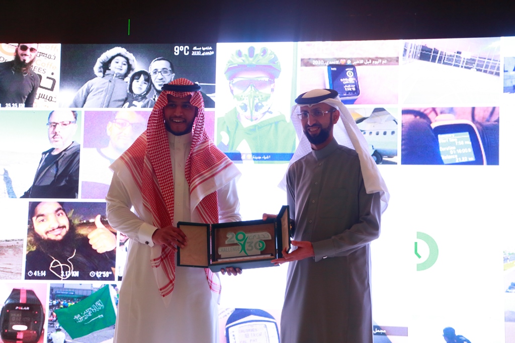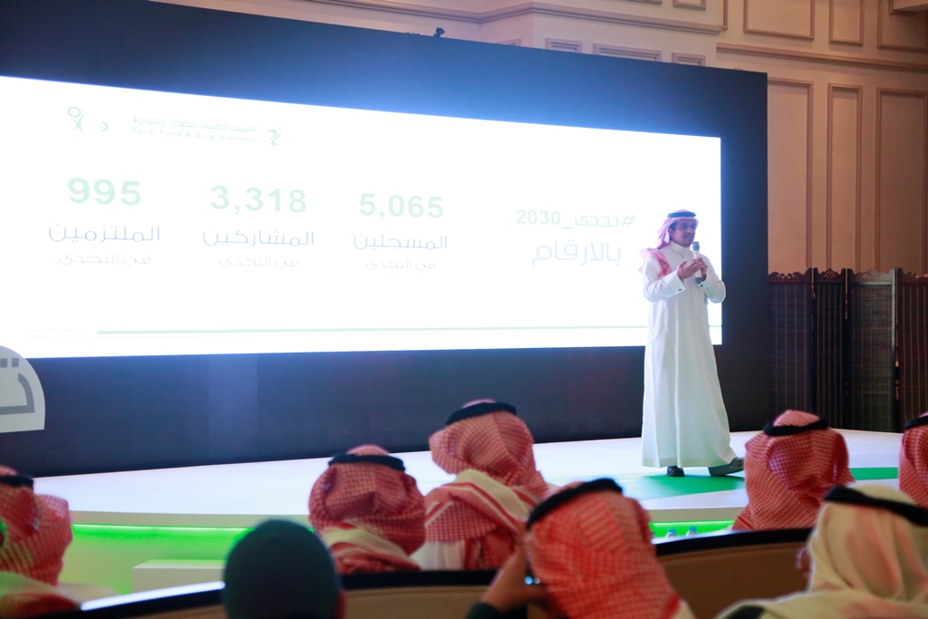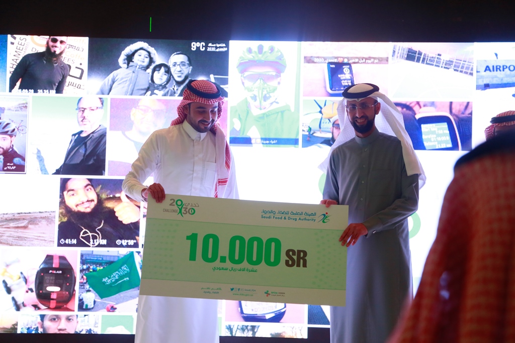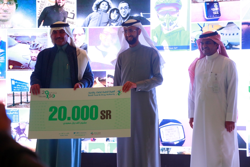 بحضور رئيس هيئة الغذاء والدواء الأستاذ الدكتور هشام الجضعي، واشتمل الحفل على كلمة معالي الرئيس وإعلان أرقام الدراسات التي اجريت أثناء تحدي 2030 إضافة إلى توزيع الجوائز، كما شاهد الحفل تجربة الرحالة عمر العمير في رحلة بالدراجة إلى اليابان.