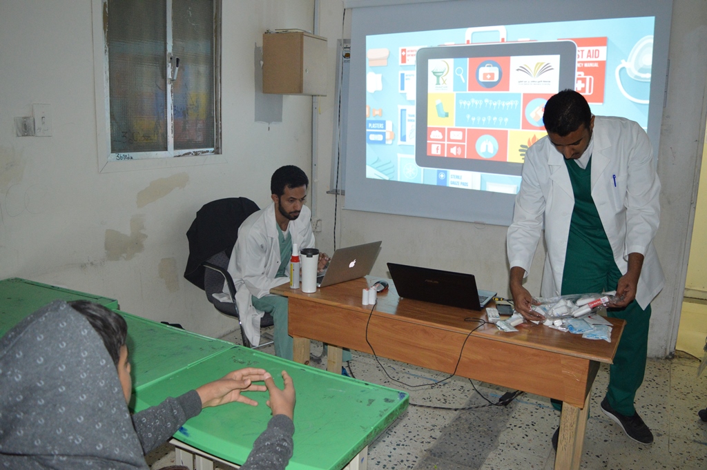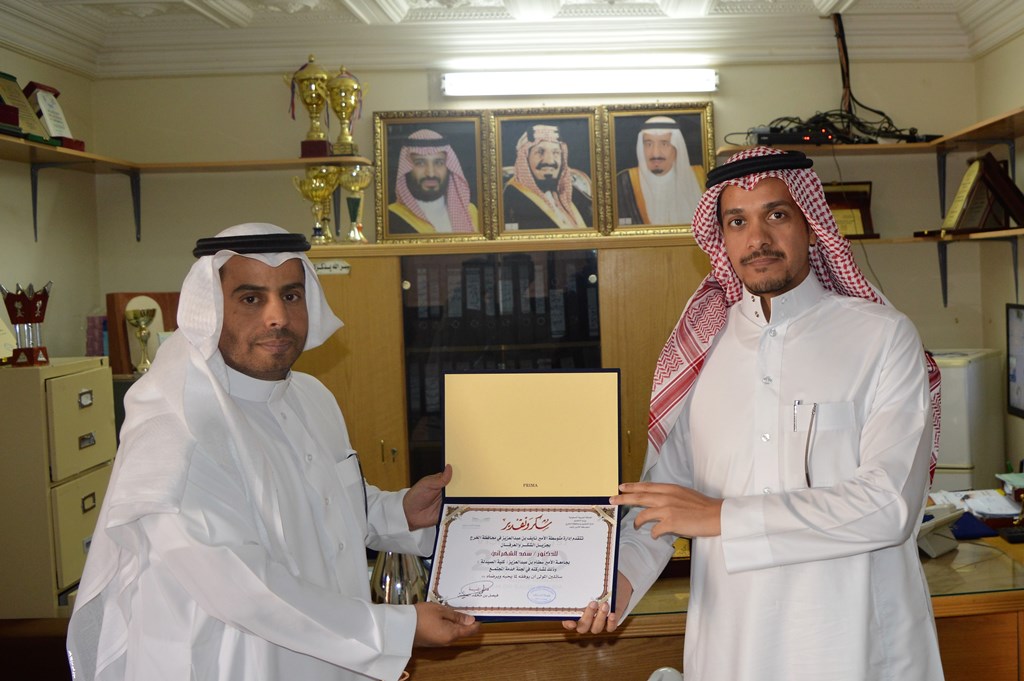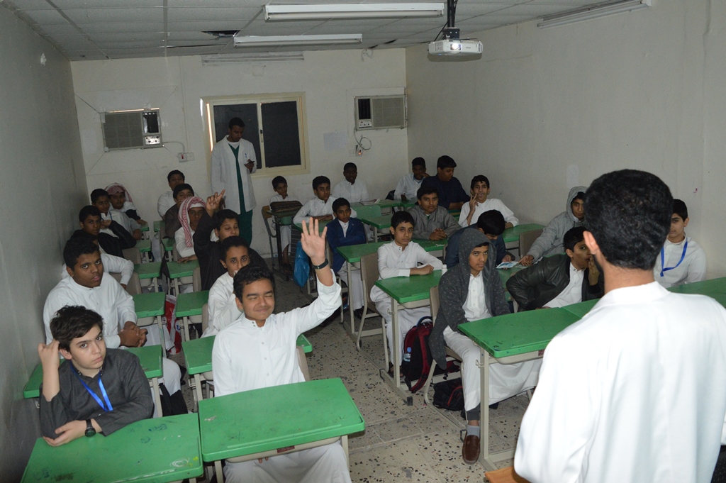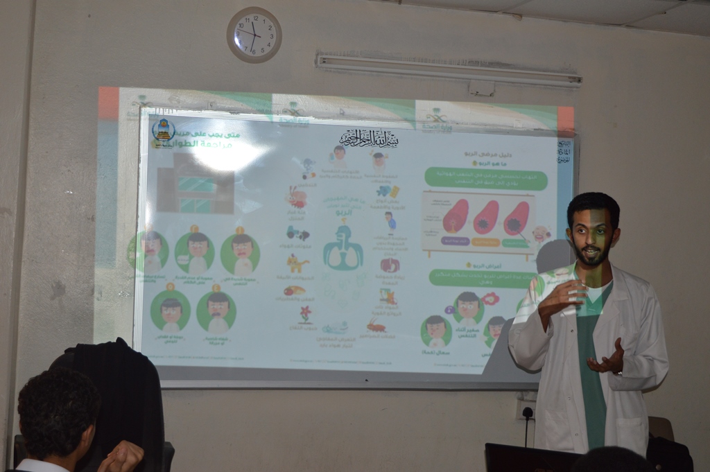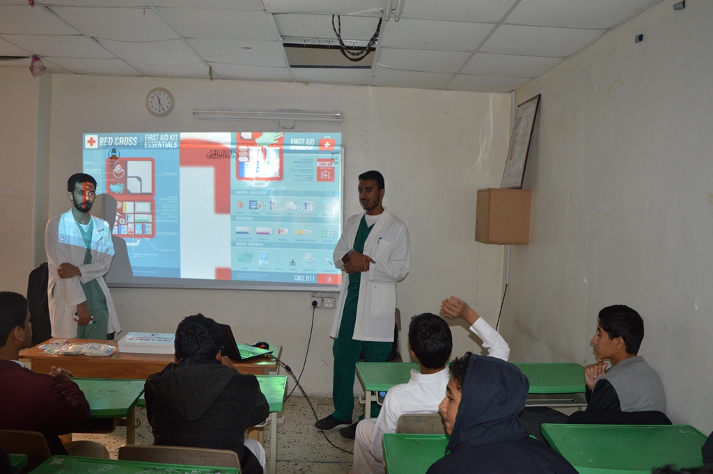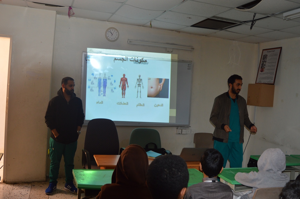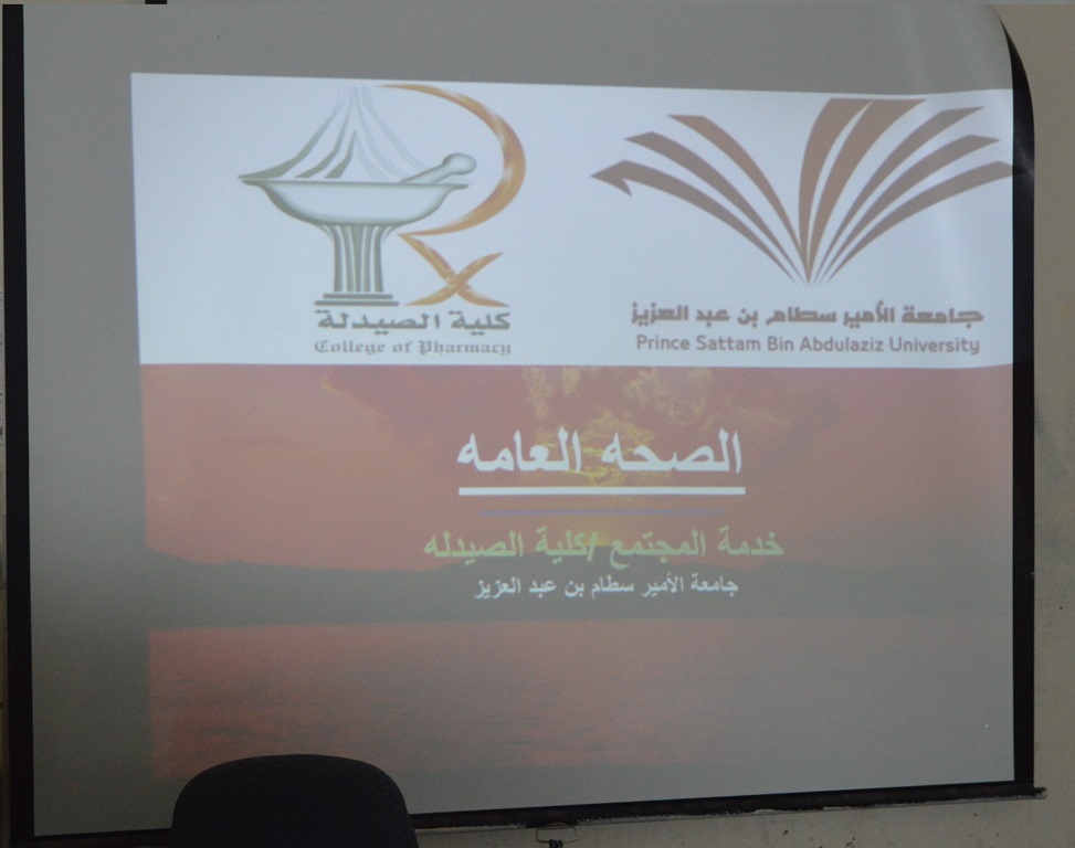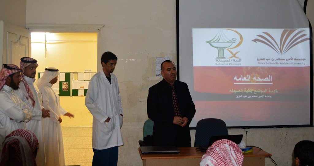 ضمن أنشطة قسم الصيدلانيات بكلية الصيدلة تم عقد فعالية توعوية لطلاب متوسطة الأمير نايف  بن عبدالعزيز في الخرج وترأس الزيارة سعادة رئيس قسم الصيدلانيات الدكتور سعد بن مريع الشهراني وممثلي القسم الدكتور خليل أبو جحيشة والدكتور محمد مقتدر وذلك يوم الثلاثاء 17/3/1439هـ الموافق 5/12/2017م وتم طرح ثلاث فعاليات توعية للطلاب الأولى بعنوان الصحة العامة والثانية شنطة الإسعافات الأولية والثالثة بعنوان الغذاء والصحة وقد شارك في الفعالية كل من الطلاب منصور سليمان النفيسة وابراهيم عبدالعزيز المقحم وأحمد عبدالله الزاحم وعلي عبدالرحمن القيشان و علي حسن عسيري وقد تفاعل الحضور من الطلاب مع الفعاليات وذلك من ضمن أسألتهم الموضوعية عن الأطعمة والنظافة الشخصية والاسعافات الأولية وتأتي هذه الفعالية من ضمن أنشطة خدمة المجتمع حيث تولي كلية الصيدلة منذ تأسيسها اهتماما بالمواضيع المتعلقة بالمجتمع كجزء من دورها البناء في العملية التعليمية والصحية. وفي اخر المحاضرة تم تكريم أعضاء اللجنة من قبل وكيل المدرسة الأستاذ مناور سعد الحربي.