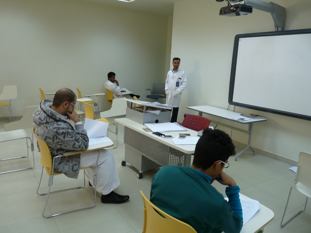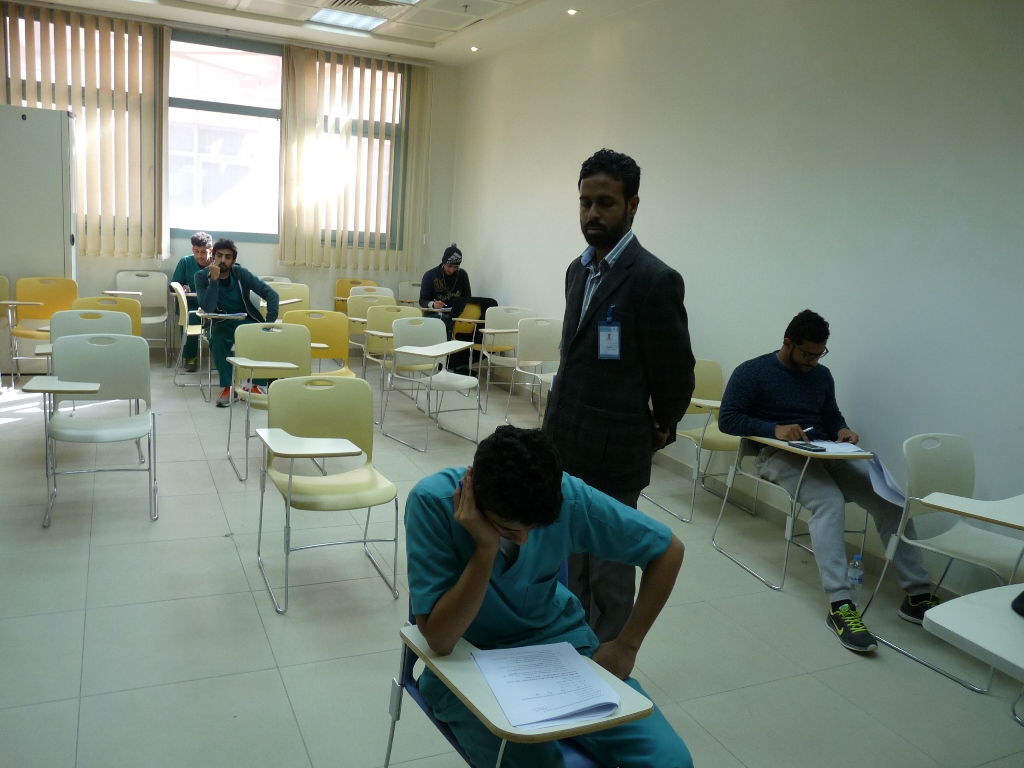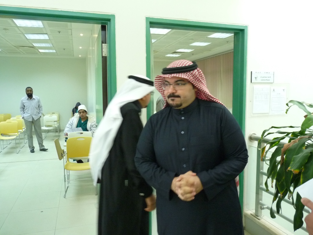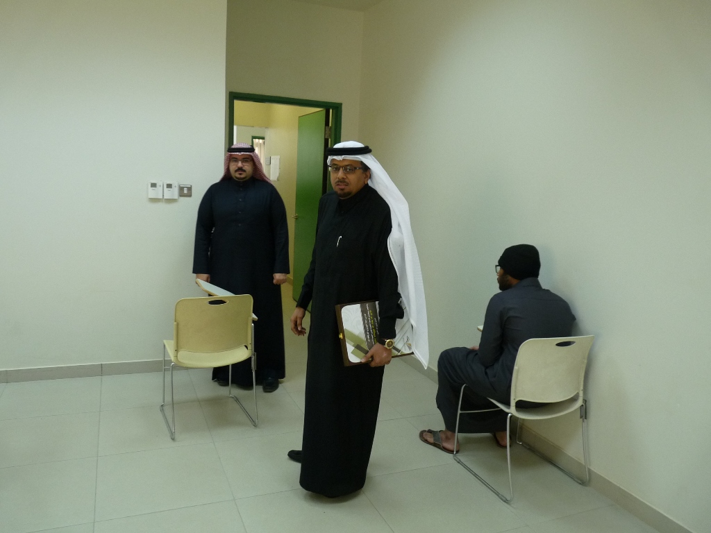 مرور تفقدي من سعادة الأستاذ الدكتور خالد بن محمد الخرفي عميد الكلية على سير الاختبارات وبعدم وجود أي مشاكل تعترض أبنائه الطلاب للفصل الدراسي الأول للعام الجامعي 1436/1437هـ وبحضور سعادة وكيل الكلية للشؤون التعليمية والأكاديمية الدكتور أحمد بن إبراهيم فوده وكان ذلك يوم الأحد 16/3/1437هـ.