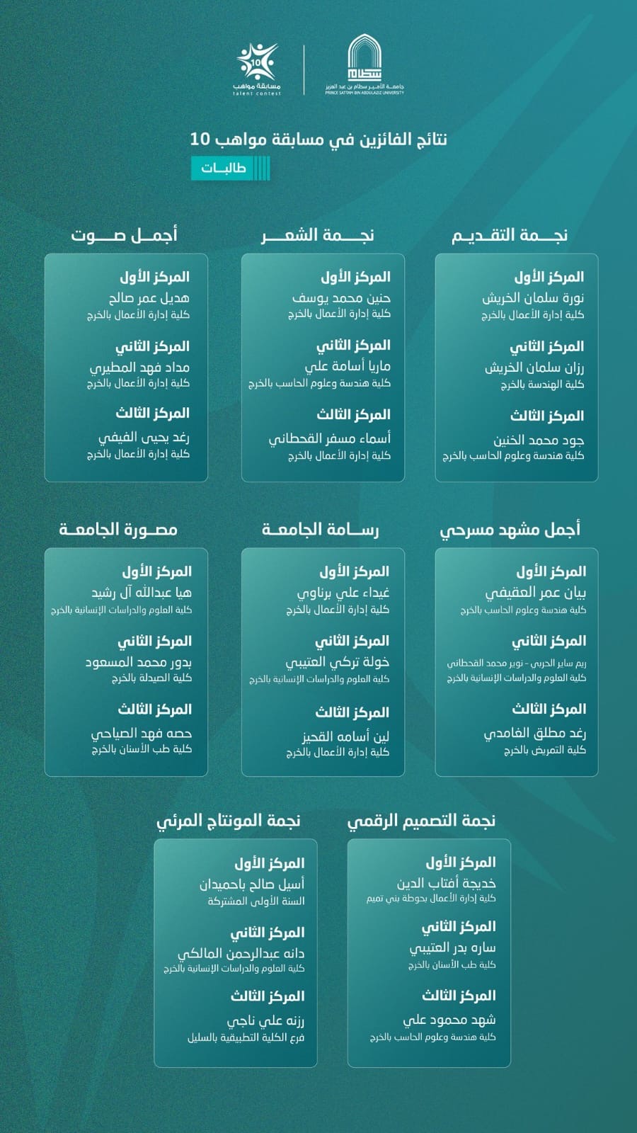 وجاء هذا التتويج خلال الحفل الختامي للمسابقة، الذي أُقيم احتفاءً بإبداعات الطلبة الموهوبين، وتجسيدًا لحرص الجامعة على توفير بيئة جامعية محفزة تحتضن الإبداع وتسهم في صقل المواهب وتنميتها في مختلف المجالات.