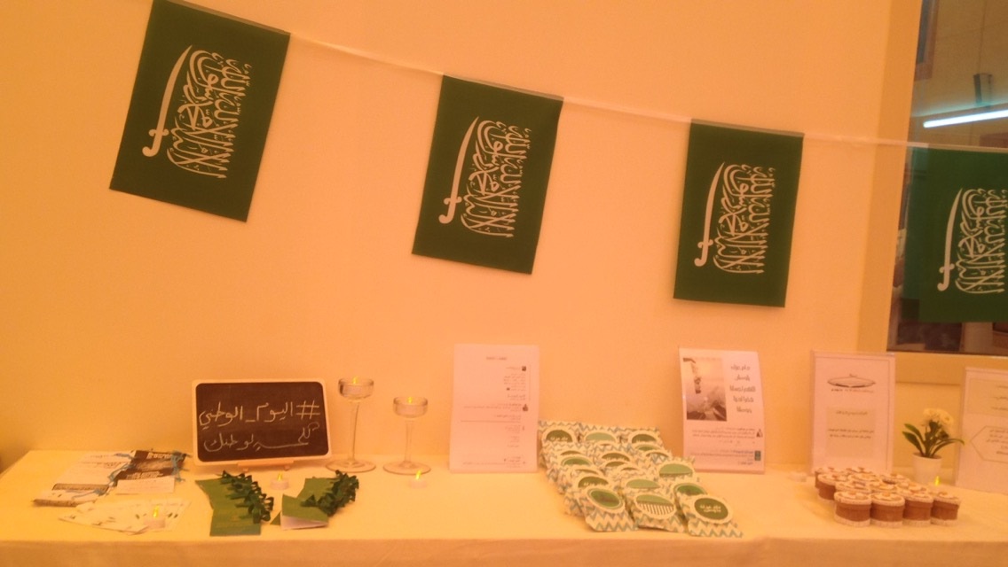 وفي يوم الأحد الموافق ٢4-١٢-١٤٣٧ قام نادي مشكاة نور بالتعاون مع المجلس الطلابي بعمل أركان في بهو الكلية تحت عنوان ( ذكرى وطن ) لمدة أربعة أيام إشتملت على العديد من النشرات والتوزيعات التي تتحدث عن تاريخ هذا الوطن العريق ونبذة عن قادته الأوفياء والإنجازات التي تمت بعهدهم كما تم توزيع عدد كبير من الهدايا التي تحوي على تذكارات وطنية ، وفي يوم الخميس الموافق ٢٨-١٢-١٤٣٧ قام كل مجموعة من عضوات المجلس الطلابي ونادي مشكاة نور بعمل احتفالية "فرحة وطن" وذلك في الثانوية الخامسة بالخرج إشتملت الإحتفالية على كلمة وطنية قدمتها الطالبة رنا العنزي و مشهد تمثيلي مقدم من طالبات الثانوية إلى جنودنا الأبطال ثم عرض مرئي عن إنجازات الوطن و كلمة شكر إلى جنودنا البواسل على الحد الجنوبي ألقتها الطالبة: مرام آل ثابت.