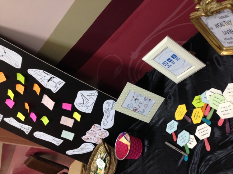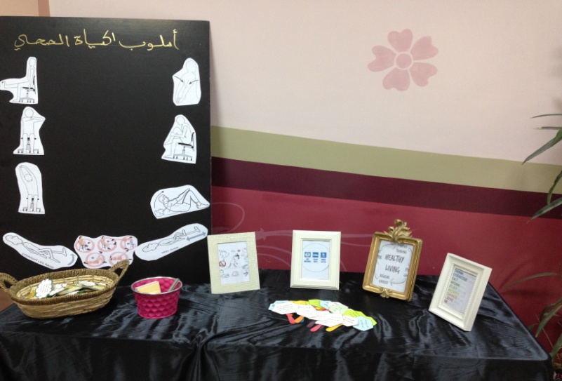 وتمت مشاركة طالبات الكلية معنا في لوحة الركن من خلال طرح لقراراتهن المستقبلية للمحافظة على الصحة والبدء بأسلوب حياة صحي وناجح