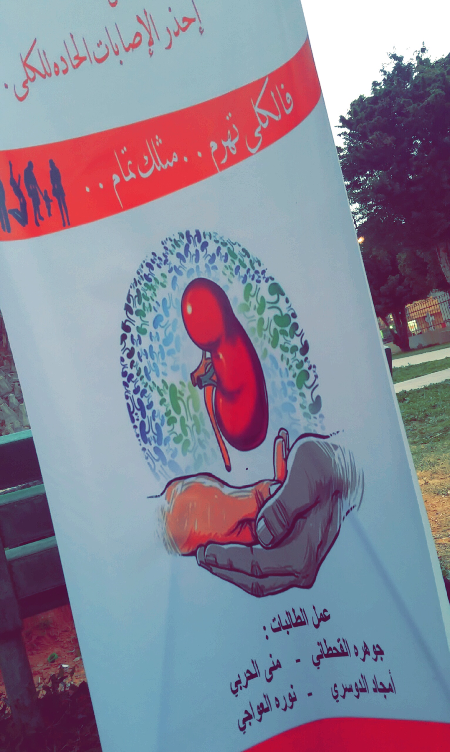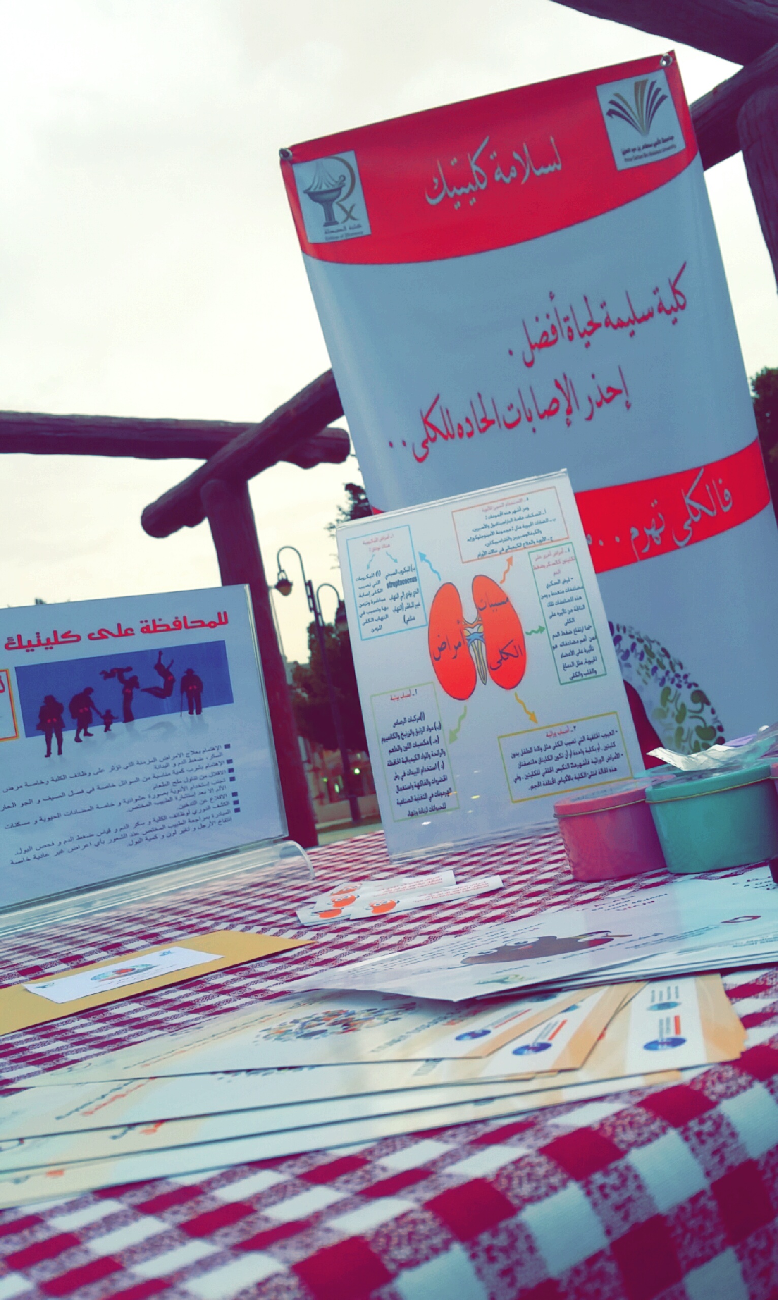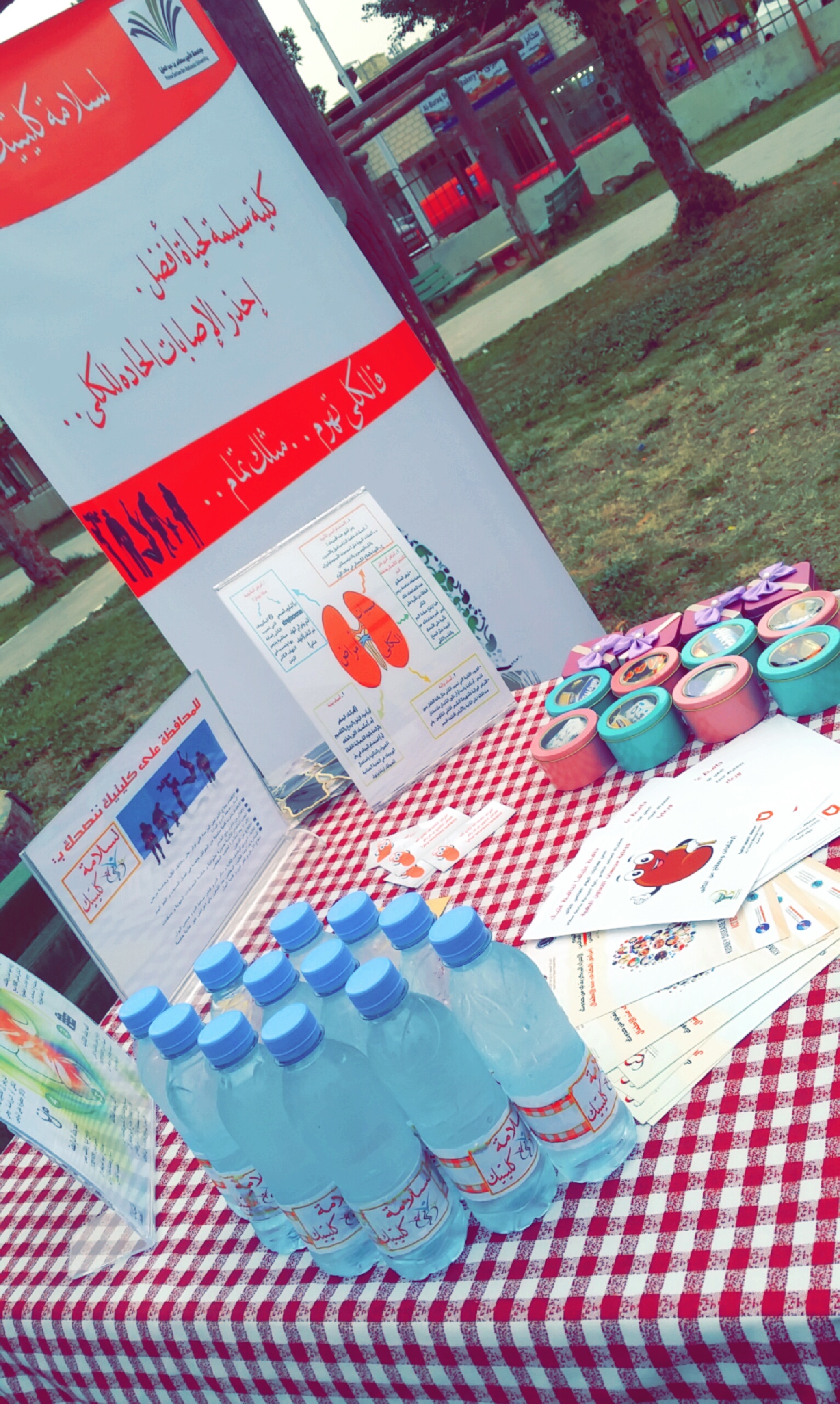 نظمت مجموعة طالبات بكلية الصيدلة شطر الطالبات يوم الاثنين الموافق13/6/1437 نشاط بعنوان:لسلامة كليتيك  والكائن في حديقه الملك عبدالعزيز  حيث تم التوضيح مجملا وتفصيلا عن موضوع الكلى ومن ابرز ماتم مناقشته بالنشاط تعريف الكلى ووظائفها والوقاية من مرض الكلى واخيرا وليس اخرا العلاج  حيث شرح للماره كل من ما ذكر اعلاه ولاقى استحسان الجميع الطالبات : منى الحربي              نورة عواجي جوهرة القحطاني        أمجاد الدوسري
