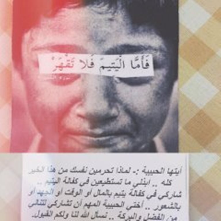 قدمت طالبات الصيدلة المستوى الرابع نشاط بعنوان : ( اليتيم )