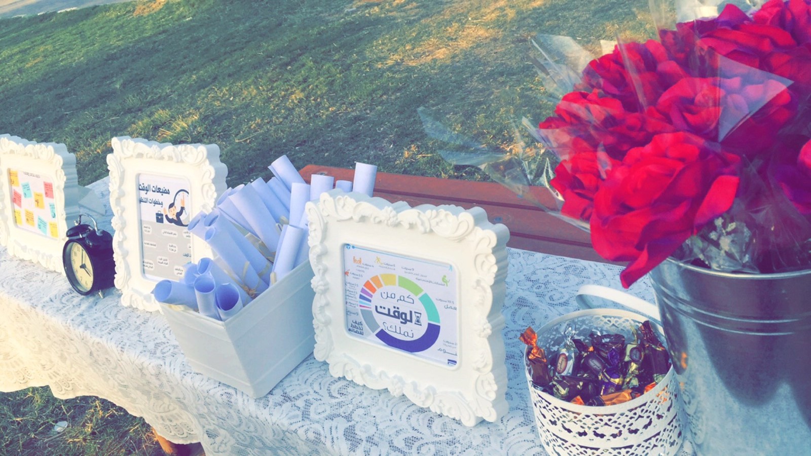 حيث تم فيه توعية الزوار حول أهمية الوقت وكيفية تنظيمة من خلال تقديم بعض النصائح التي تساعدهم في محاولة التغلب على مشكلة عدم توفر الوقت أو صعوبة إدارتة فقد وجد أن من هذه الأسباب هو القيام بالكثير من الأعمال التي لا تساعد على الإستفادة من أوقات الفراغ بل العكس وهي ما وصفت بمضيعات الوقت حيث تم شرحها وتوضيحها