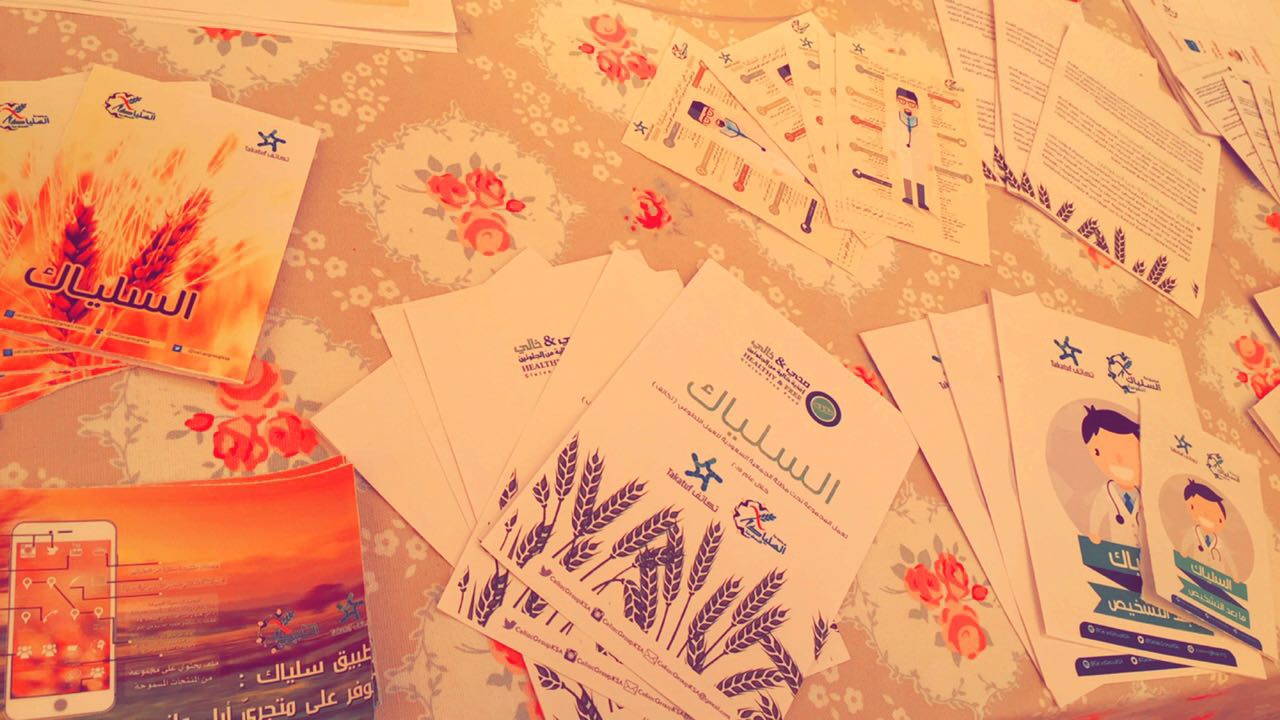بالتعاون مع مجموعة السلياك التطوعيه في نشر التوعيه لمرض السلياك ، وذلك في يوم الاربعاء الموافق ٦ / ٧ / ١٤٣٧ هـ
