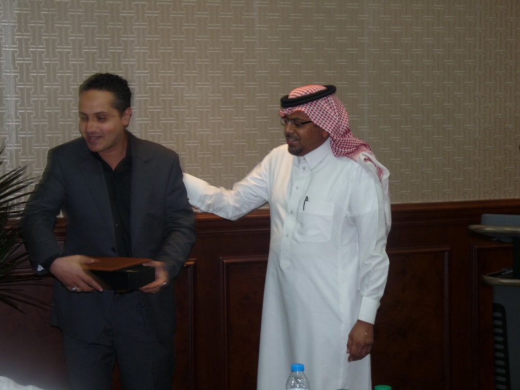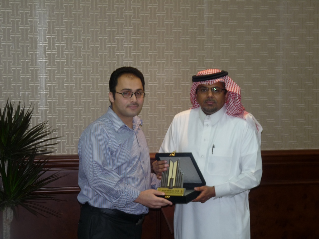 كرم سعادة عميد الكلية الأستاذ الدكتور خالد بن محمد الخرفي كلا من الدكتور محمد داود زكريا والمحاضر سيف الاسلام خالد الهزايمة لانتهاء فترة خدمتهم بالكلية وقدم سعادة عميد الكلية درع وشهادة تقدير لكلا منهم تقديراً لأدائهم المتميز في العمل وجهودهم الطيبة والتي تسهم في ازدهار ورقي كلية الصيدلة وعلى ما قدموه خلال خدمتهم بالكلية سائلين المولى عز وجل أن يسدد خطاهم وذلك في يوم الاربعاء 22/7/1435هـ الساعة الحادية عشر بقاعة كبار الزوار بالجامعة.