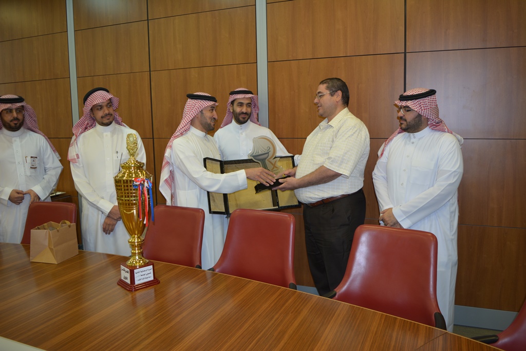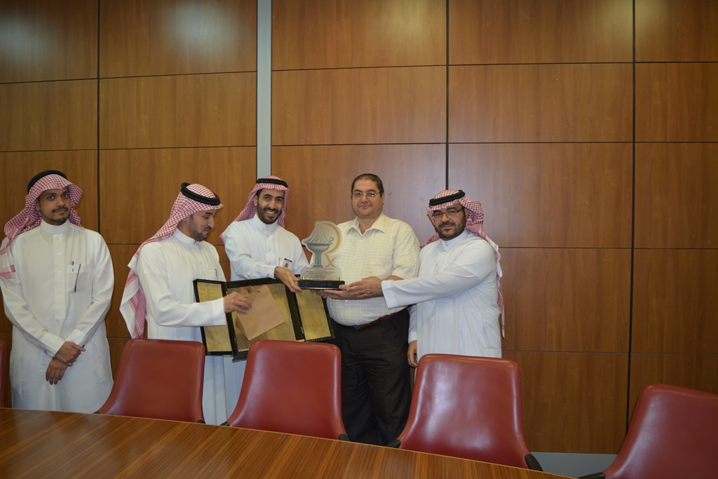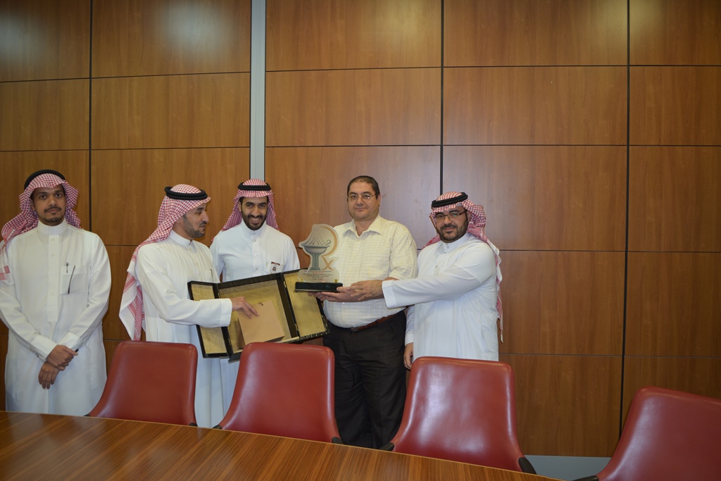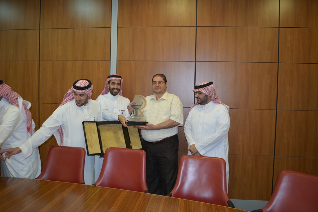 تحت رعاية عميد الكلية د. فهد بن إبراهيم الصيخان وبقاعة اجتماعات كلية الصيدلة الرئيسية تم تكريم وتوديع الباحث أحمد مصطفى فرغل بما قدمه من مجهوداته وإنجازاته للكلية خلال فترة تواجده في الكلية حيث تم اهداء درع تذكاري وهدية له من قبل عميد الكلية وبحضور وكيل الكلية للشؤون التعليمية والأكاديمية د. أحمد بن إبراهيم فوده ووكيل الكلية للتطوير والجودة الدكتور أحمد بن عبدالرحمن البسام  ورؤساء الأقسام الأكاديمية بالكلية حيث شكره عميد الكلية على مجهوداته خلال السنوات الماضية والعمل على تميز الكلية ورفع شأنها ثم شكر الباحث أحمد فرغل وعبر عن سعادته وشكره وامتنانه لكل الكلية بداية من عميد الكلية وزملاءه من أعضاء هيئة التدريس والموظفين وايضا العمداء السابقين وكان ذلك يوم الأربعاء 15/9/1439هـ الموافق 30/5/2018م.