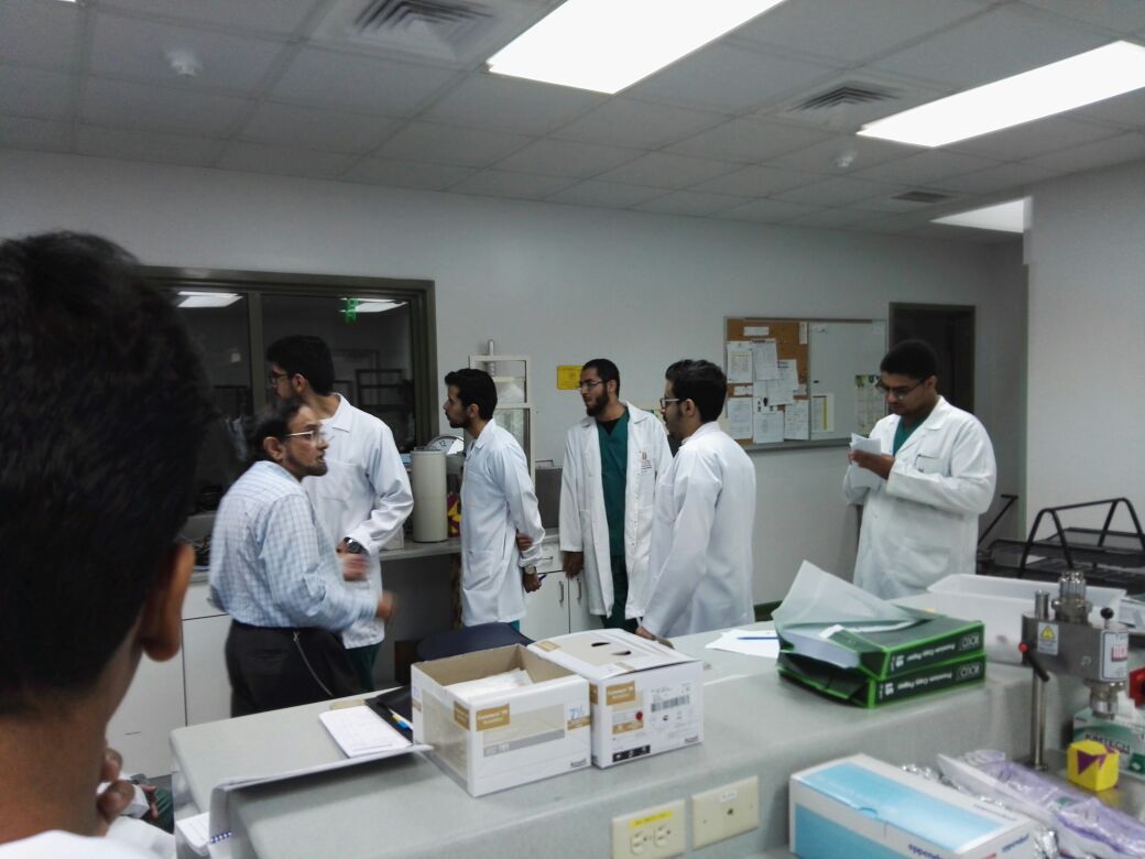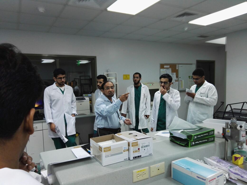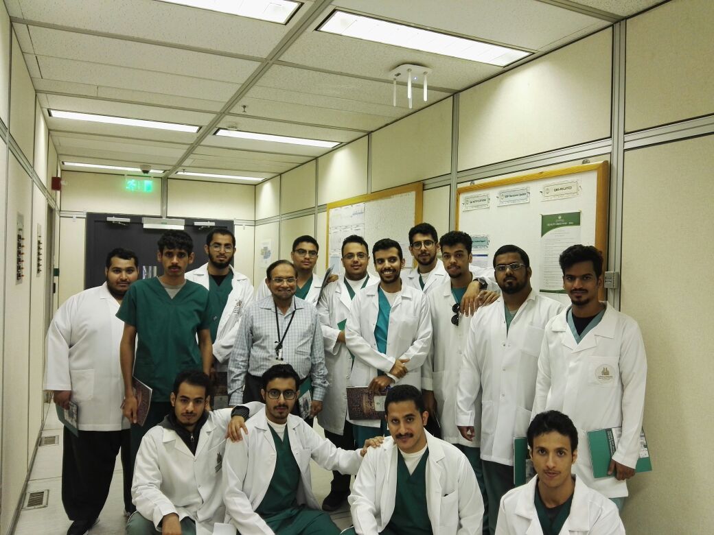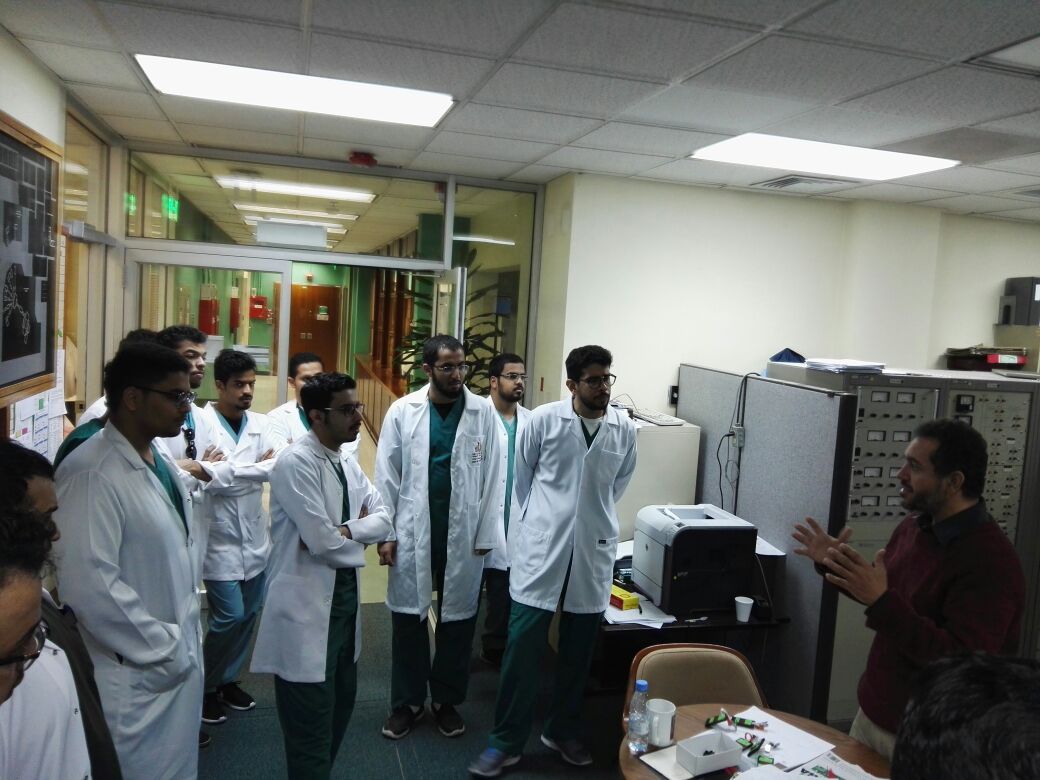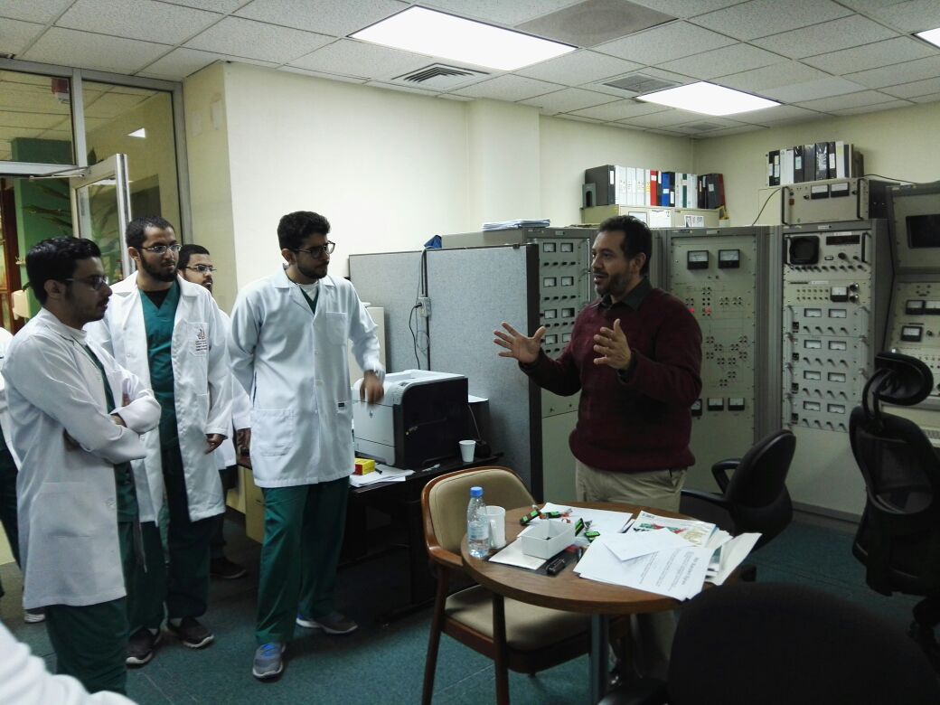 بتوجيهات من سعادة عميد كلية الصيدلة الدكتور فهد بن إبراهيم الصيخان قام قسم الصيدلانيات بعمل زيارة الى مركز الابحاث (قسم السايكلترون والمستحضرات الصيدلانية المشعة والاقسام الرئيسية الاخرى) في مستشفى الملك فيصل التخصصي، وذلك لطلاب المستوى التاسع المسجلين في مادة الصيدلة النووية لتحقيق اكبر قدر من الاستفادة لصالح الطلاب، وقد تلقى الطلاب معلومات نظرية وعملية قيمة ومفيدة جدا عن الادوية المشعة وطريقة تحضيرها وآلية صرفها والأجهزة المستخدمة في تحضير هذه المواد. كما وقد شرح للطلاب آخر التطورات العلمية المتبعة في هذا المجال. وقد كان برفقة الطلاب خلال هذه الزيارة منسق الزيارة د. محمد مقتدر احمد وتحت إشراف المشرف على قسم الصيدلانيات د. رمضان إبراهيم الشديفات وكان ذلك يوم الأربعاء 8/3/1438هـ الموافق 7/12/2016م.