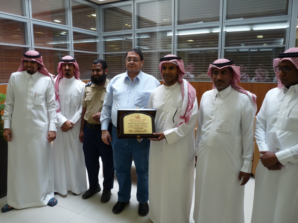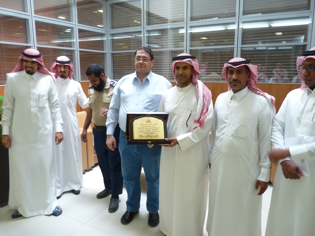 ودعت الكلية الزميل/ ناصر بن عبدالله الموسى مدير إدارة الكلية لانتقاله للعمل ببلدية الدلم وقد تقدم سعادة عميد الكلية الأستاذ الدكتور/ خالد بن محمد الخرفي بشكره لما قدمه من جهد خلال فترة تواجده بالكلية وتقديم درع تذكاري له كما ودعه وكلاء الكلية سعادة الدكتور عبدالله القحطاني وسعادة الدكتور فهد الصيخان وسعادة الدكتور أحمد فوده، وقد تقدم الأستاذ/ ناصر بن عبدالله الموسى بكلمة وداع حيث عبرا عن حزنه لترك الكلية وزملائه وامتنان واعتزاز بانتسابه للكلية والجامعة خلال السنوات السابقة وسعادته بالعمل بالكلية مع زملاءه من الموظفين وأعضاء هيئة التدريس وشكره للجميع على حسن تعاملهم معه وعلى التكريم وتمنوا الزملاء ودعوا له بالتوفيق في عمله الجديد.